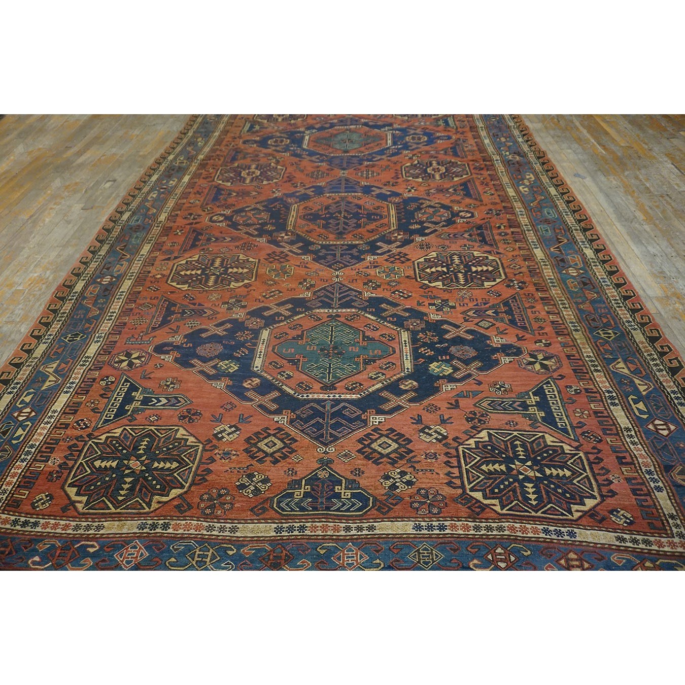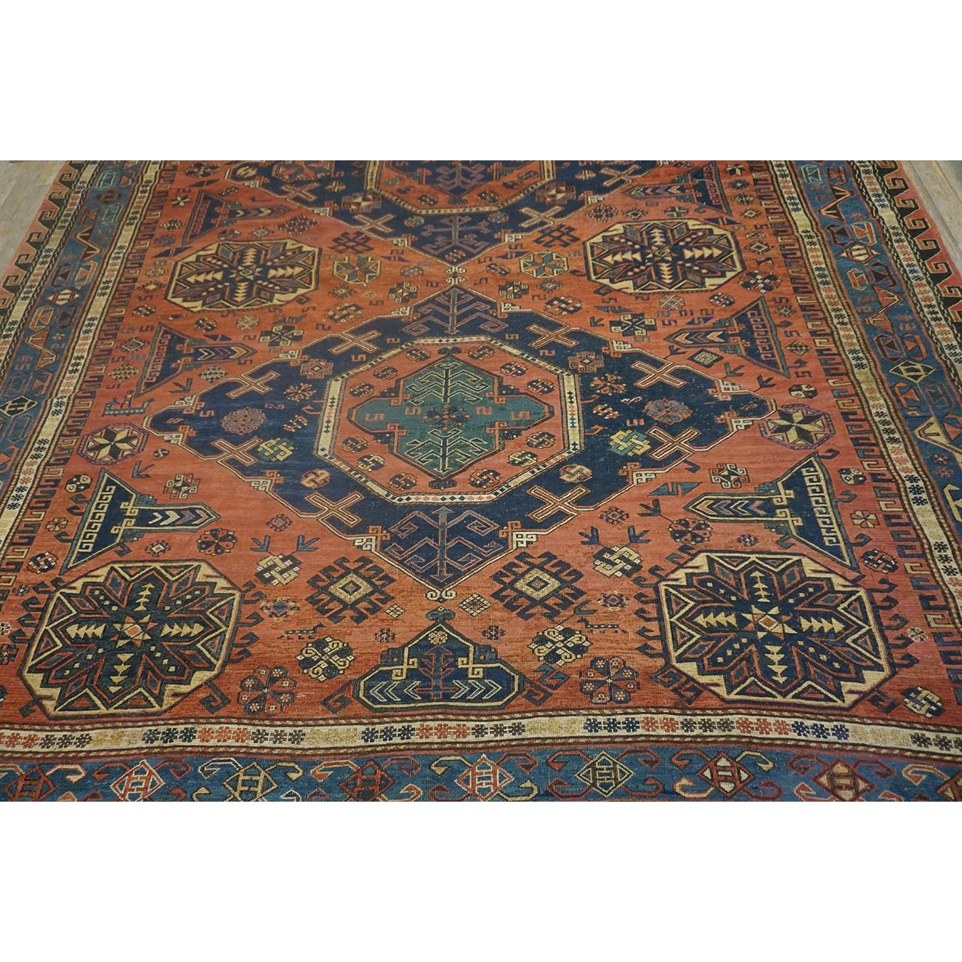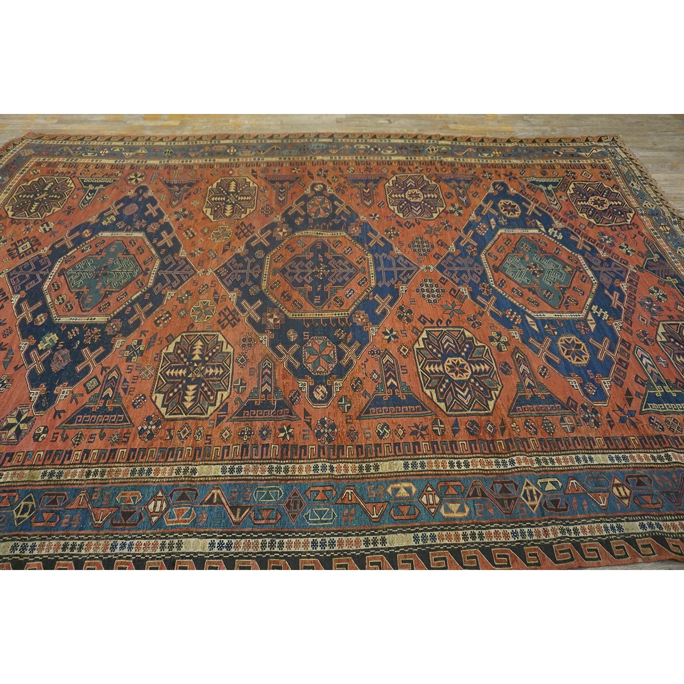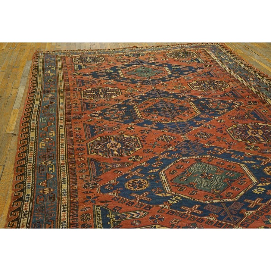 DescriptionCaucasianThis is the general heading for all rugs made in the Caucasus mountains and in the trans-Caucasus areas, north of the Arax River, and between the Black and Caspian Seas. This includes rugs from the Kazak, Karabagh, Gendje, Koghan, Talish, Akstafa, Shirvan, Baku, Kuba and hesghi districts and the variants and subtypes thereof. The rugs are usually in scatter sizes and of all wool construction, with bold colors and geometric patterns, from the 18th through 20th centuries. Prices range widely depending on rarity, color, design and condition. A strong collector market exists for the better examples. | |