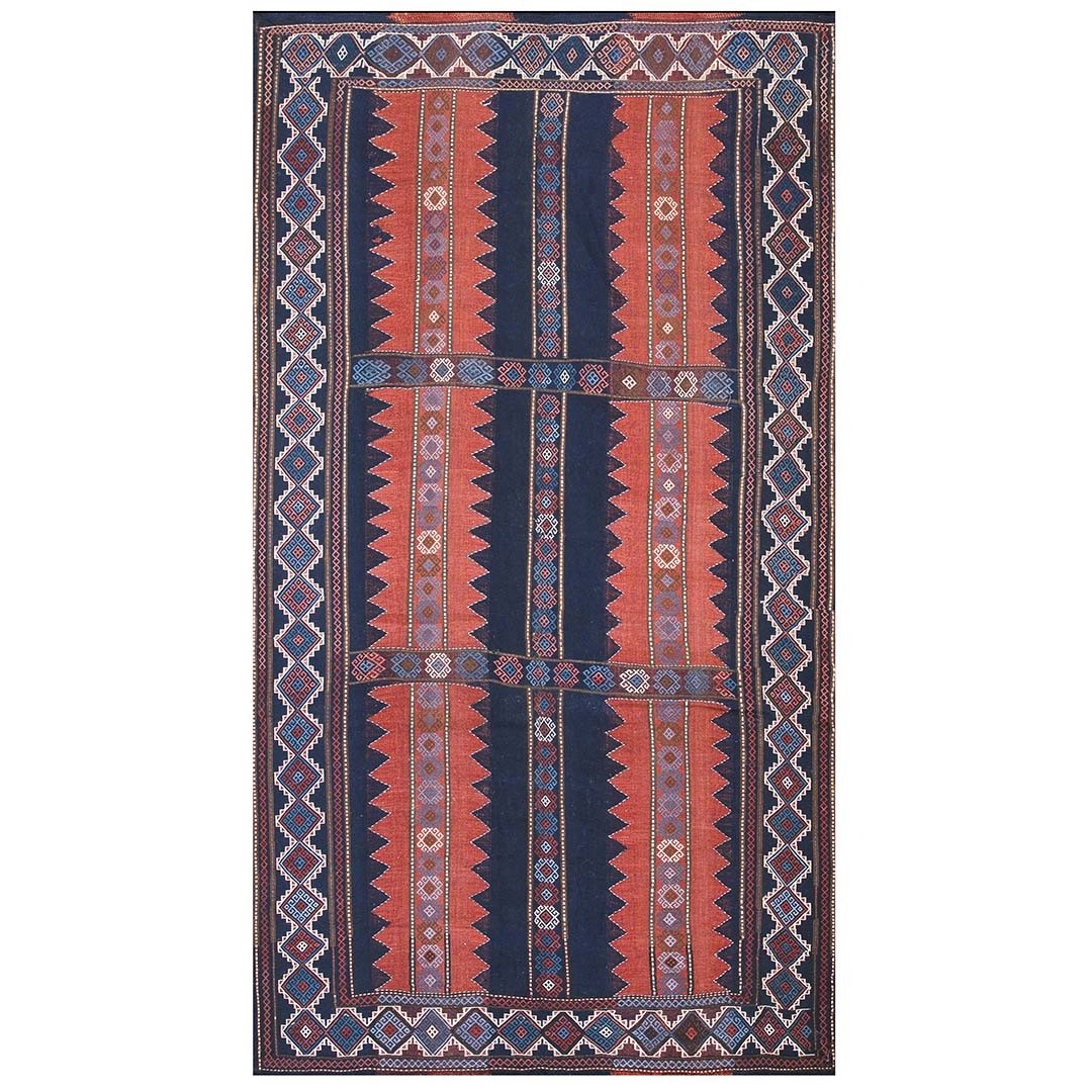 DescriptionCaucasianThis is the general heading for all rugs made in the Caucasus mountains and in the trans-Caucasus areas, north of the Arax River, and between the Black and Caspian Seas. This includes rugs from the Kazak, Karabagh, Gendje, Koghan, Talish, Akstafa, Shirvan, Baku, Kuba and hesghi districts and the variants and subtypes thereof. The rugs are usually in scatter sizes and of all wool construction, with bold colors and geometric patterns, from the 18th through 20th centuries. Prices range widely depending on rarity, color, design and condition. A strong collector market exists for the better examples. | |