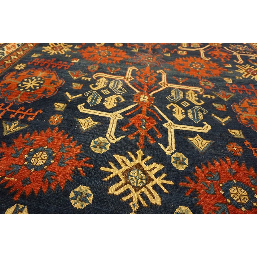 DescriptionCaucasianThis is the general heading for all rugs made in the Caucasus mountains and in the trans-Caucasus areas, north of the Arax River, and between the Black and Caspian Seas. This includes rugs from the Kazak, Karabagh, Gendje, Koghan, Talish, Akstafa, Shirvan, Baku, Kuba and hesghi districts and the variants and subtypes thereof. The rugs are usually in scatter sizes and of all wool construction, with bold colors and geometric patterns, from the 18th through 20th centuries. Prices range widely depending on rarity, color, design and condition. A strong collector market exists for the better examples. | |
