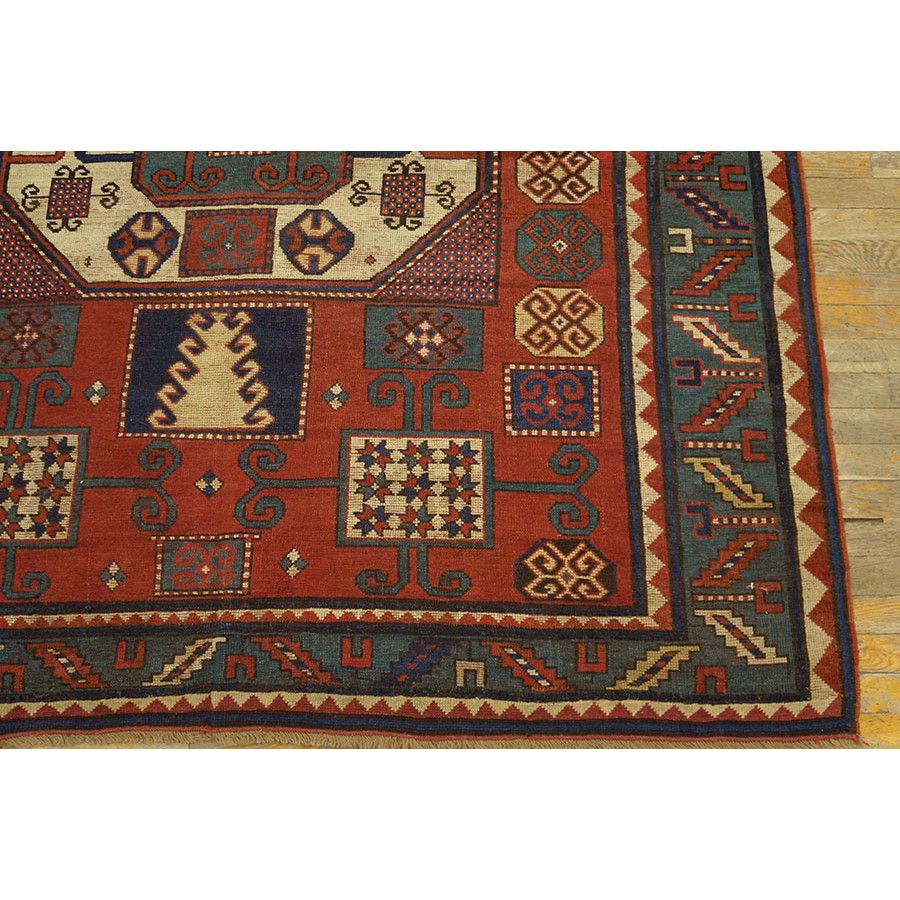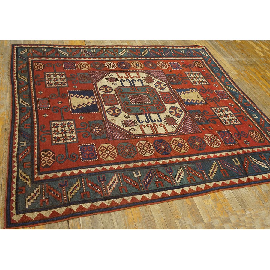 DescriptionCaucasianThis is the general heading for all rugs made in the Caucasus mountains and in the trans-Caucasus areas, north of the Arax River, and between the Black and Caspian Seas. This includes rugs from the Kazak, Karabagh, Gendje, Koghan, Talish, Akstafa, Shirvan, Baku, Kuba and hesghi districts and the variants and subtypes thereof. The rugs are usually in scatter sizes and of all wool construction, with bold colors and geometric patterns, from the 18th through 20th centuries. Prices range widely depending on rarity, color, design and condition. A strong collector market exists for the better examples. CaucasianThis is the general heading for all rugs made in the Caucasus mountains and in the trans-Caucasus areas, north of the Arax River, and between the Black and Caspian Seas. This includes rugs from the Kazak, Karabagh, Gendje, Koghan, Talish, Akstafa, Shirvan, Baku, Kuba and hesghi districts and the variants and subtypes thereof. The rugs are usually in scatter sizes and of all wool construction, with bold colors and geometric patterns, from the 18th through 20th centuries. Prices range widely depending on rarity, color, design and condition. A strong collector market exists for the better examples. | |