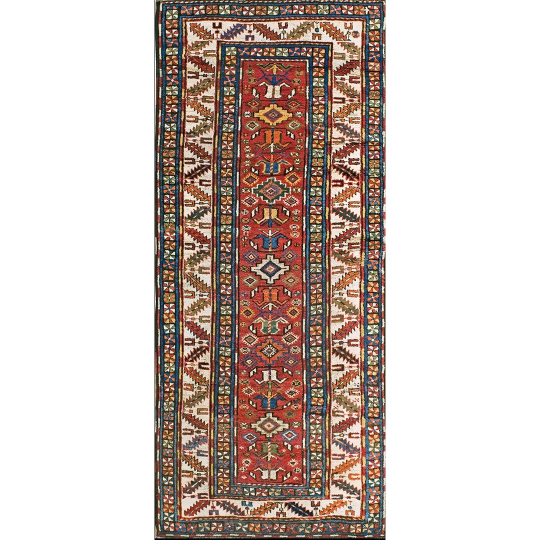 DescriptionCaucasianThis is the general heading for all rugs made in the Caucasus mountains and in the trans-Caucasus areas, north of the Arax River, and between the Black and Caspian Seas. This includes rugs from the Kazak, Karabagh, Gendje, Koghan, Talish, Akstafa, Shirvan, Baku, Kuba and hesghi districts and the variants and subtypes thereof. The rugs are usually in scatter sizes and of all wool construction, with bold colors and geometric patterns, from the 18th through 20th centuries. Prices range widely depending on rarity, color, design and condition. A strong collector market exists for the better examples. CaucasianThis is the general heading for all rugs made in the Caucasus mountains and in the trans-Caucasus areas, north of the Arax River, and between the Black and Caspian Seas. This includes rugs from the Kazak, Karabagh, Gendje, Koghan, Talish, Akstafa, Shirvan, Baku, Kuba and hesghi districts and the variants and subtypes thereof. The rugs are usually in scatter sizes and of all wool construction, with bold colors and geometric patterns, from the 18th through 20th centuries. Prices range widely depending on rarity, color, design and condition. A strong collector market exists for the better examples. | |