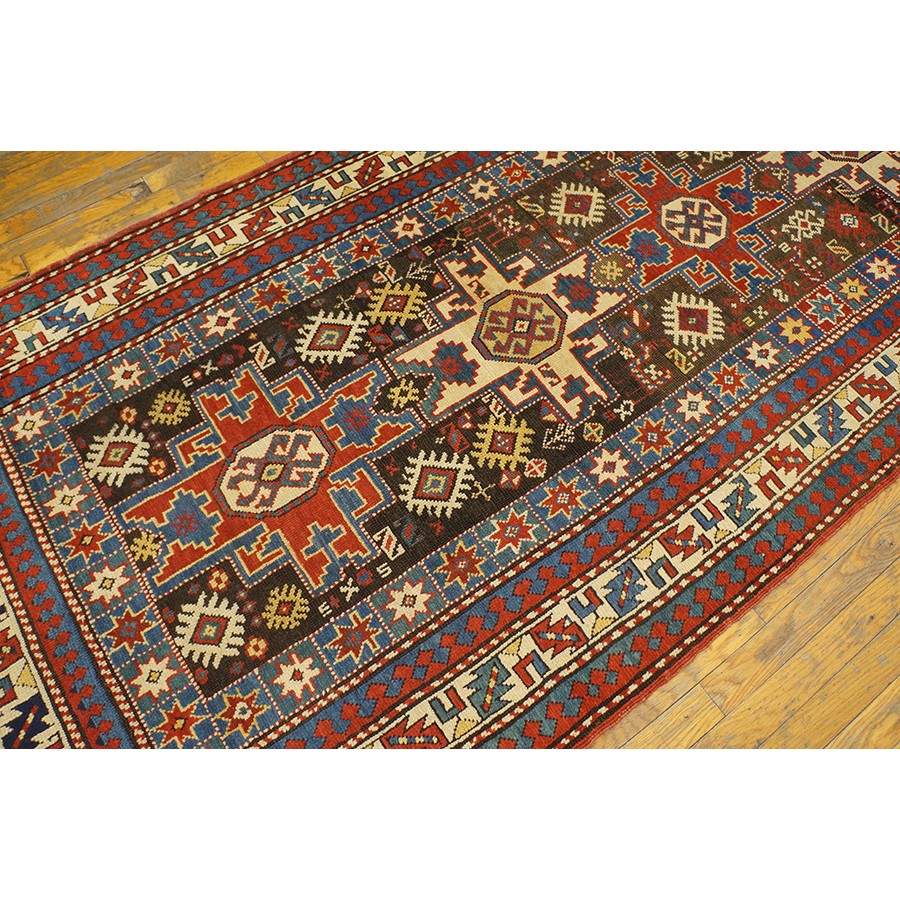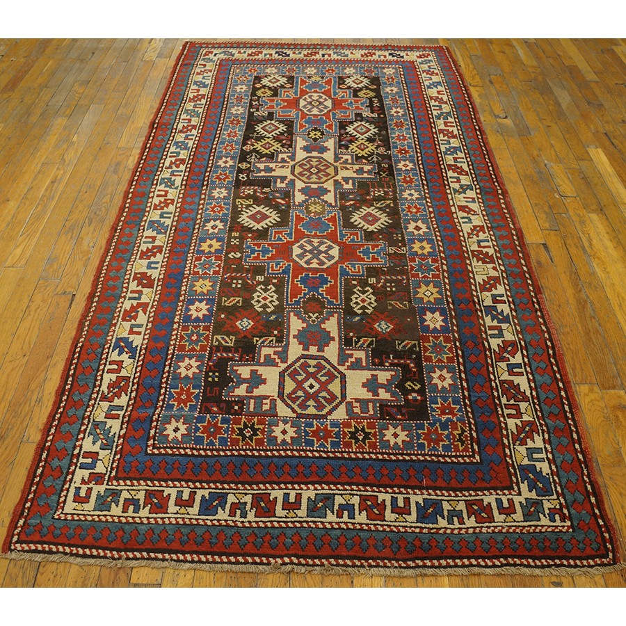 DescriptionCaucasianThis is the general heading for all rugs made in the Caucasus mountains and in the trans-Caucasus areas, north of the Arax River, and between the Black and Caspian Seas. This includes rugs from the Kazak, Karabagh, Gendje, Koghan, Talish, Akstafa, Shirvan, Baku, Kuba and hesghi districts and the variants and subtypes thereof. The rugs are usually in scatter sizes and of all wool construction, with bold colors and geometric patterns, from the 18th through 20th centuries. Prices range widely depending on rarity, color, design and condition. A strong collector market exists for the better examples. CaucasianThis is the general heading for all rugs made in the Caucasus mountains and in the trans-Caucasus areas, north of the Arax River, and between the Black and Caspian Seas. This includes rugs from the Kazak, Karabagh, Gendje, Koghan, Talish, Akstafa, Shirvan, Baku, Kuba and hesghi districts and the variants and subtypes thereof. The rugs are usually in scatter sizes and of all wool construction, with bold colors and geometric patterns, from the 18th through 20th centuries. Prices range widely depending on rarity, color, design and condition. A strong collector market exists for the better examples. | |