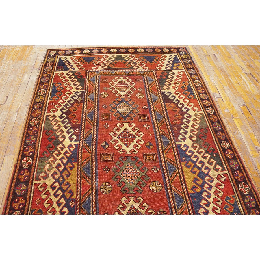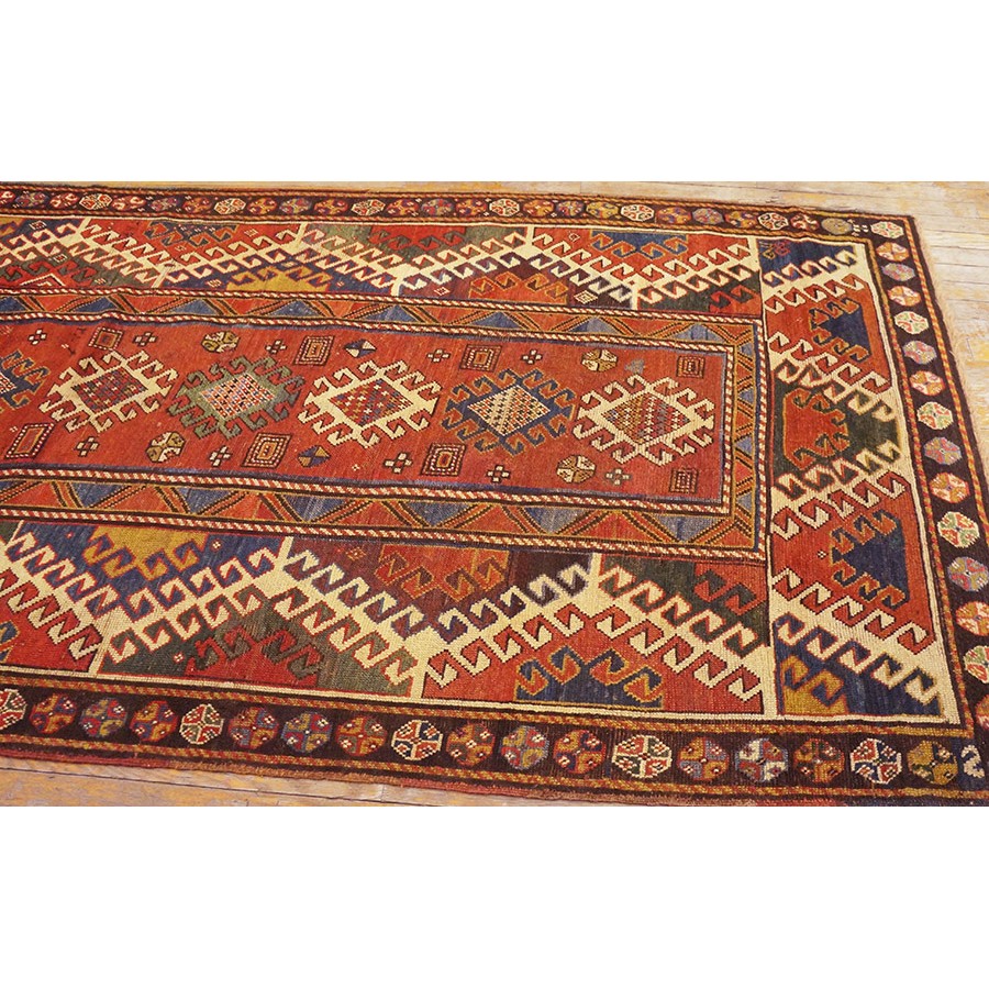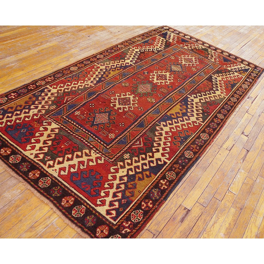 DescriptionCaucasianThis is the general heading for all rugs made in the Caucasus mountains and in the trans-Caucasus areas, north of the Arax River, and between the Black and Caspian Seas. This includes rugs from the Kazak, Karabagh, Gendje, Koghan, Talish, Akstafa, Shirvan, Baku, Kuba and hesghi districts and the variants and subtypes thereof. The rugs are usually in scatter sizes and of all wool construction, with bold colors and geometric patterns, from the 18th through 20th centuries. Prices range widely depending on rarity, color, design and condition. A strong collector market exists for the better examples. CaucasianThis is the general heading for all rugs made in the Caucasus mountains and in the trans-Caucasus areas, north of the Arax River, and between the Black and Caspian Seas. This includes rugs from the Kazak, Karabagh, Gendje, Koghan, Talish, Akstafa, Shirvan, Baku, Kuba and hesghi districts and the variants and subtypes thereof. The rugs are usually in scatter sizes and of all wool construction, with bold colors and geometric patterns, from the 18th through 20th centuries. Prices range widely depending on rarity, color, design and condition. A strong collector market exists for the better examples. | |