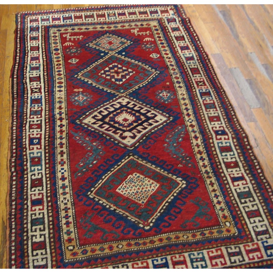 DescriptionCaucasianThis is the general heading for all rugs made in the Caucasus mountains and in the trans-Caucasus areas, north of the Arax River, and between the Black and Caspian Seas. This includes rugs from the Kazak, Karabagh, Gendje, Koghan, Talish, Akstafa, Shirvan, Baku, Kuba and hesghi districts and the variants and subtypes thereof. The rugs are usually in scatter sizes and of all wool construction, with bold colors and geometric patterns, from the 18th through 20th centuries. Prices range widely depending on rarity, color, design and condition. A strong collector market exists for the better examples. CaucasianThis is the general heading for all rugs made in the Caucasus mountains and in the trans-Caucasus areas, north of the Arax River, and between the Black and Caspian Seas. This includes rugs from the Kazak, Karabagh, Gendje, Koghan, Talish, Akstafa, Shirvan, Baku, Kuba and hesghi districts and the variants and subtypes thereof. The rugs are usually in scatter sizes and of all wool construction, with bold colors and geometric patterns, from the 18th through 20th centuries. Prices range widely depending on rarity, color, design and condition. A strong collector market exists for the better examples. | |
