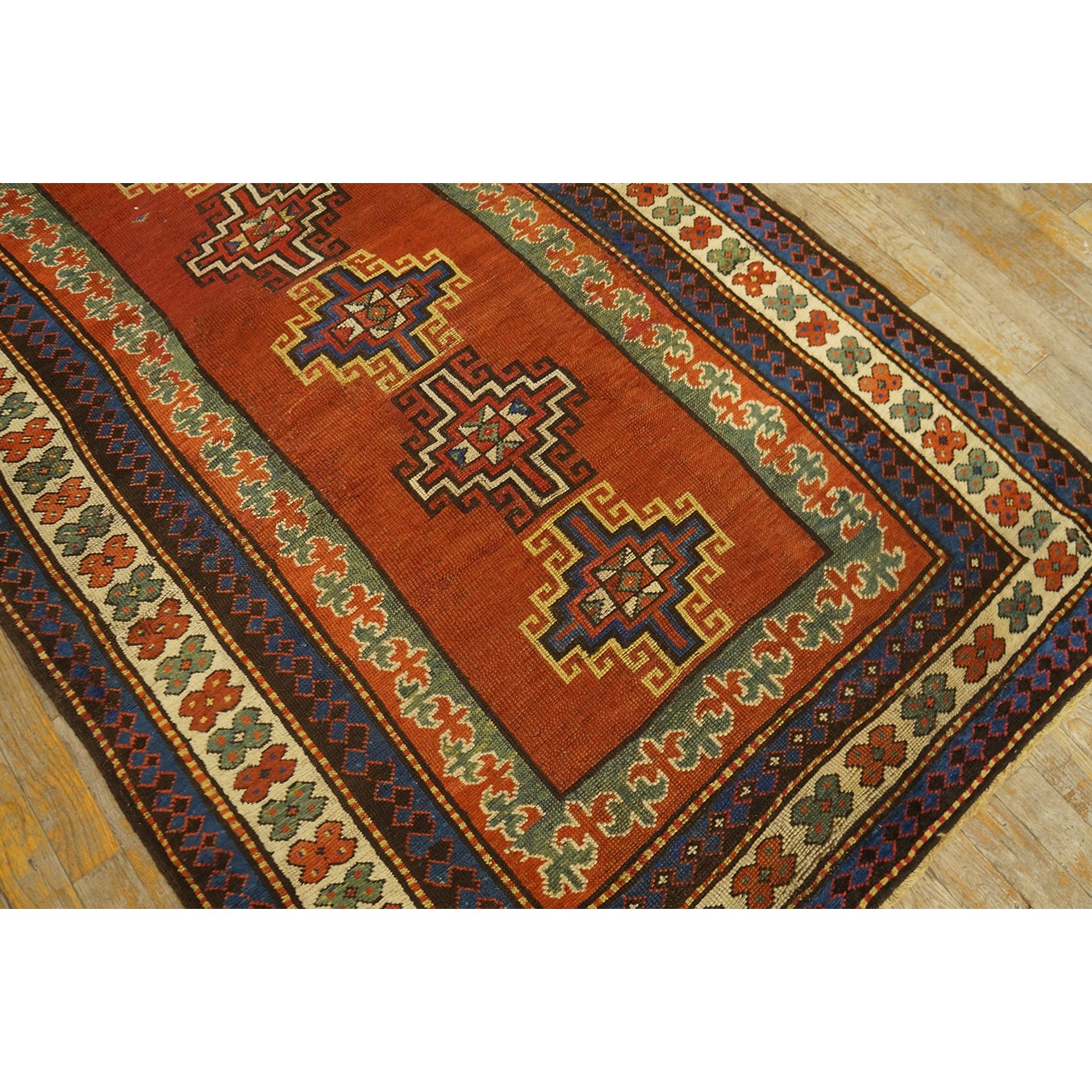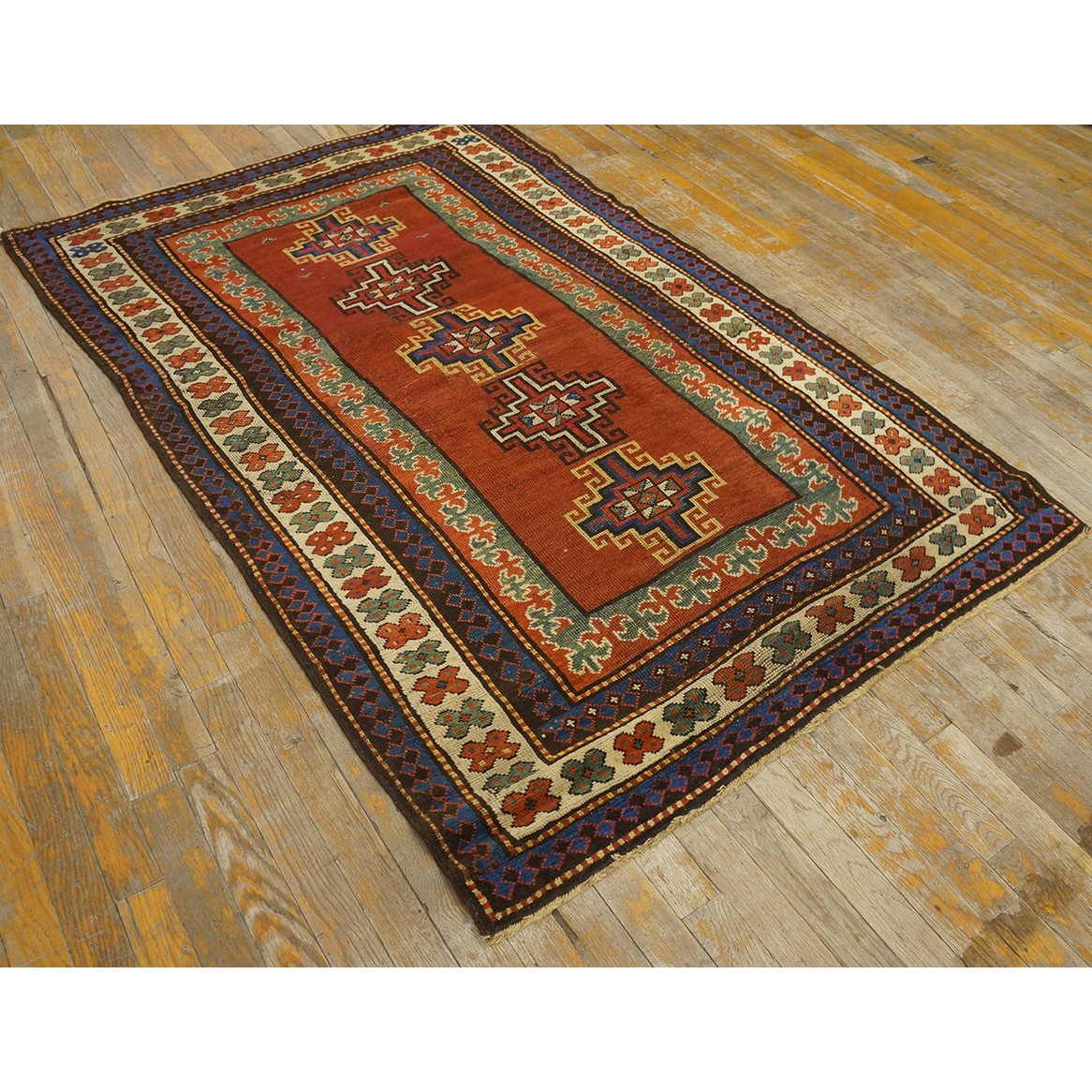 DescriptionCaucasianThis is the general heading for all rugs made in the Caucasus mountains and in the trans-Caucasus areas, north of the Arax River, and between the Black and Caspian Seas. This includes rugs from the Kazak, Karabagh, Gendje, Koghan, Talish, Akstafa, Shirvan, Baku, Kuba and hesghi districts and the variants and subtypes thereof. The rugs are usually in scatter sizes and of all wool construction, with bold colors and geometric patterns, from the 18th through 20th centuries. Prices range widely depending on rarity, color, design and condition. A strong collector market exists for the better examples. CaucasianThis is the general heading for all rugs made in the Caucasus mountains and in the trans-Caucasus areas, north of the Arax River, and between the Black and Caspian Seas. This includes rugs from the Kazak, Karabagh, Gendje, Koghan, Talish, Akstafa, Shirvan, Baku, Kuba and hesghi districts and the variants and subtypes thereof. The rugs are usually in scatter sizes and of all wool construction, with bold colors and geometric patterns, from the 18th through 20th centuries. Prices range widely depending on rarity, color, design and condition. A strong collector market exists for the better examples. | |