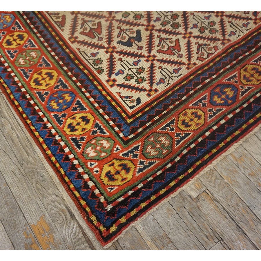 DescriptionCaucasianThis is the general heading for all rugs made in the Caucasus mountains and in the trans-Caucasus areas, north of the Arax River, and between the Black and Caspian Seas. This includes rugs from the Kazak, Karabagh, Gendje, Koghan, Talish, Akstafa, Shirvan, Baku, Kuba and hesghi districts and the variants and subtypes thereof. The rugs are usually in scatter sizes and of all wool construction, with bold colors and geometric patterns, from the 18th through 20th centuries. Prices range widely depending on rarity, color, design and condition. A strong collector market exists for the better examples. CaucasianThis is the general heading for all rugs made in the Caucasus mountains and in the trans-Caucasus areas, north of the Arax River, and between the Black and Caspian Seas. This includes rugs from the Kazak, Karabagh, Gendje, Koghan, Talish, Akstafa, Shirvan, Baku, Kuba and hesghi districts and the variants and subtypes thereof. The rugs are usually in scatter sizes and of all wool construction, with bold colors and geometric patterns, from the 18th through 20th centuries. Prices range widely depending on rarity, color, design and condition. A strong collector market exists for the better examples. | |
