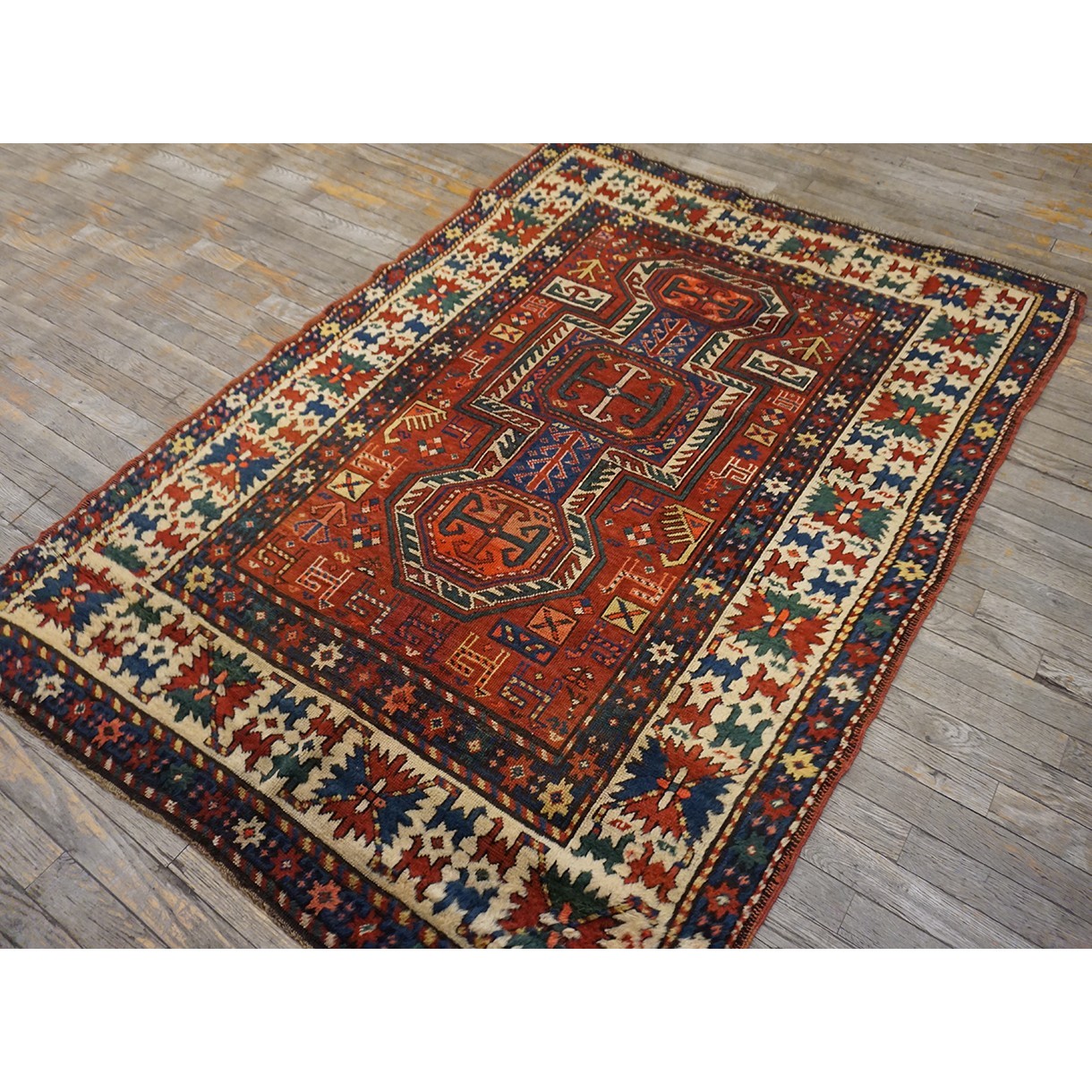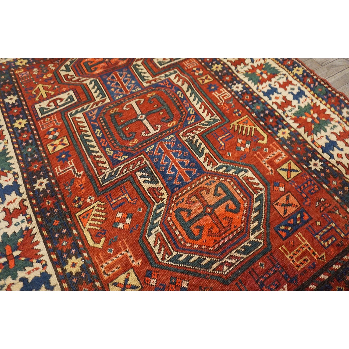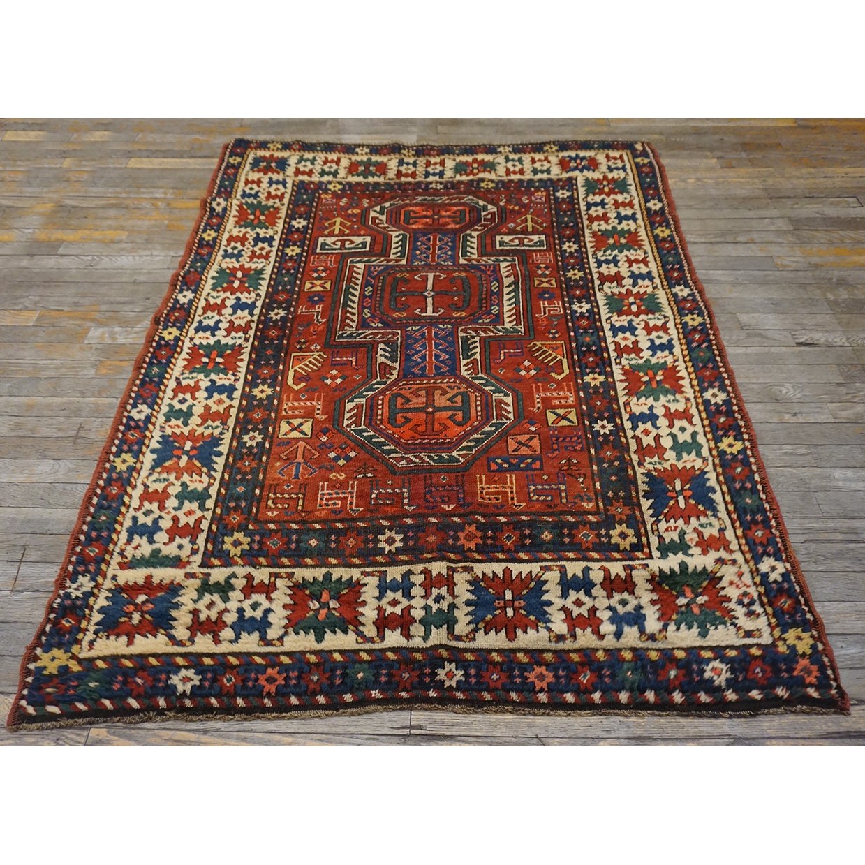 DescriptionCaucasianThis is the general heading for all rugs made in the Caucasus mountains and in the trans-Caucasus areas, north of the Arax River, and between the Black and Caspian Seas. This includes rugs from the Kazak, Karabagh, Gendje, Koghan, Talish, Akstafa, Shirvan, Baku, Kuba and hesghi districts and the variants and subtypes thereof. The rugs are usually in scatter sizes and of all wool construction, with bold colors and geometric patterns, from the 18th through 20th centuries. Prices range widely depending on rarity, color, design and condition. A strong collector market exists for the better examples. CaucasianThis is the general heading for all rugs made in the Caucasus mountains and in the trans-Caucasus areas, north of the Arax River, and between the Black and Caspian Seas. This includes rugs from the Kazak, Karabagh, Gendje, Koghan, Talish, Akstafa, Shirvan, Baku, Kuba and hesghi districts and the variants and subtypes thereof. The rugs are usually in scatter sizes and of all wool construction, with bold colors and geometric patterns, from the 18th through 20th centuries. Prices range widely depending on rarity, color, design and condition. A strong collector market exists for the better examples. | |