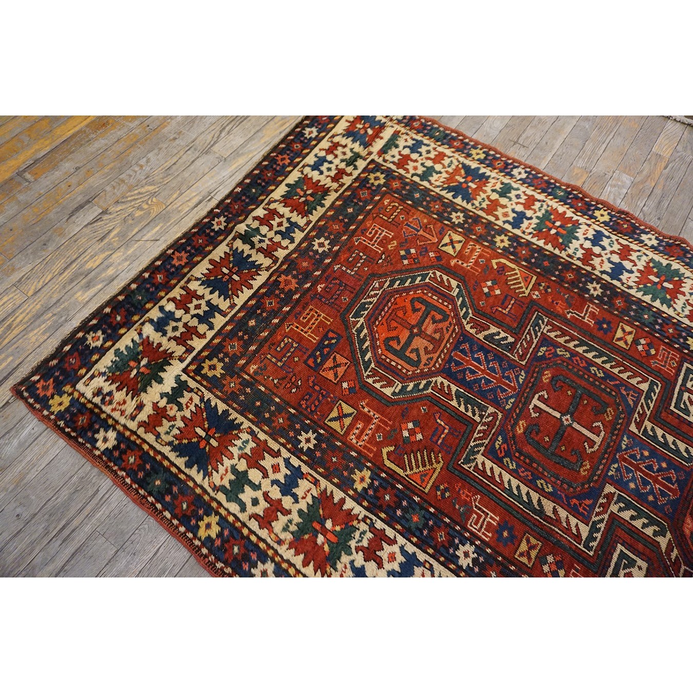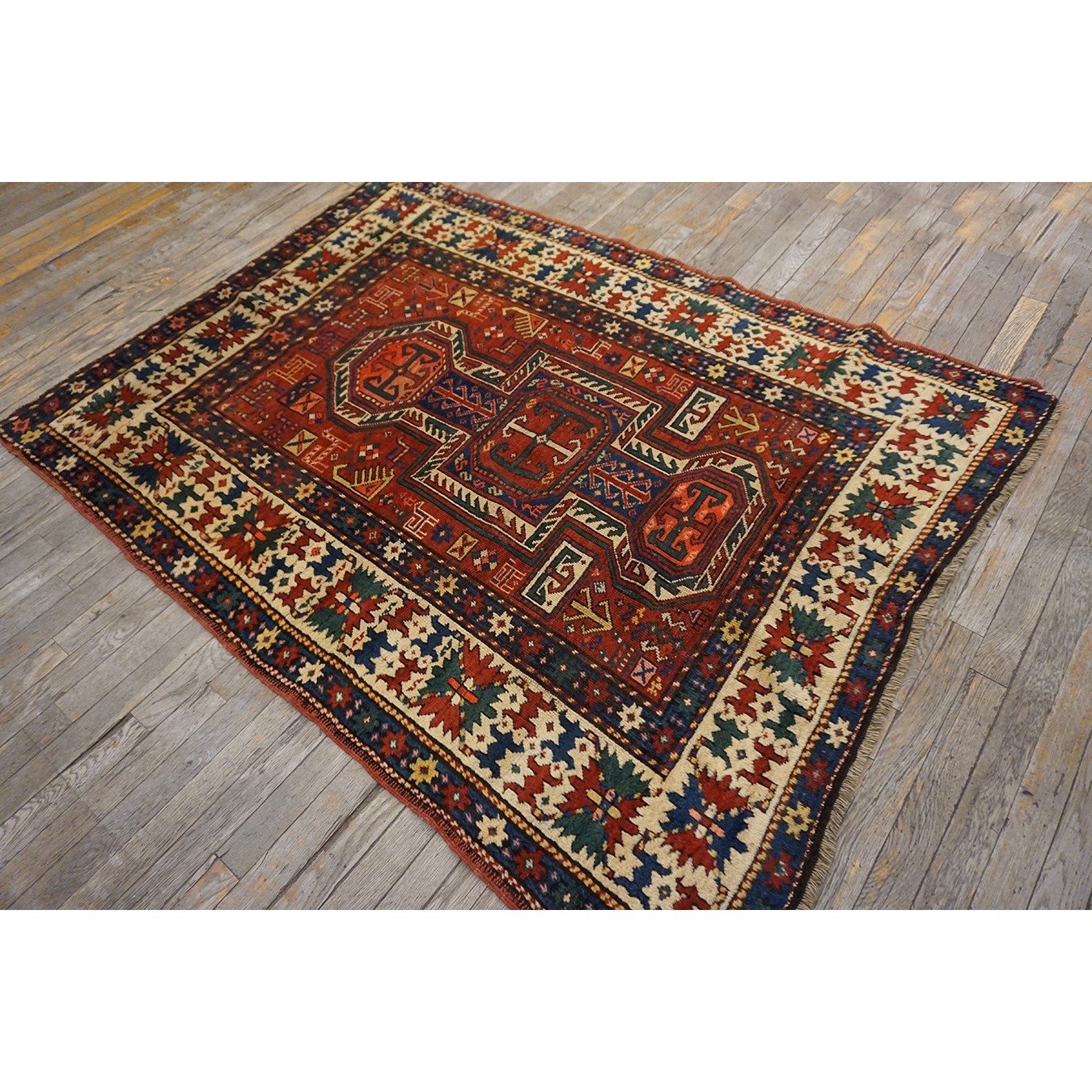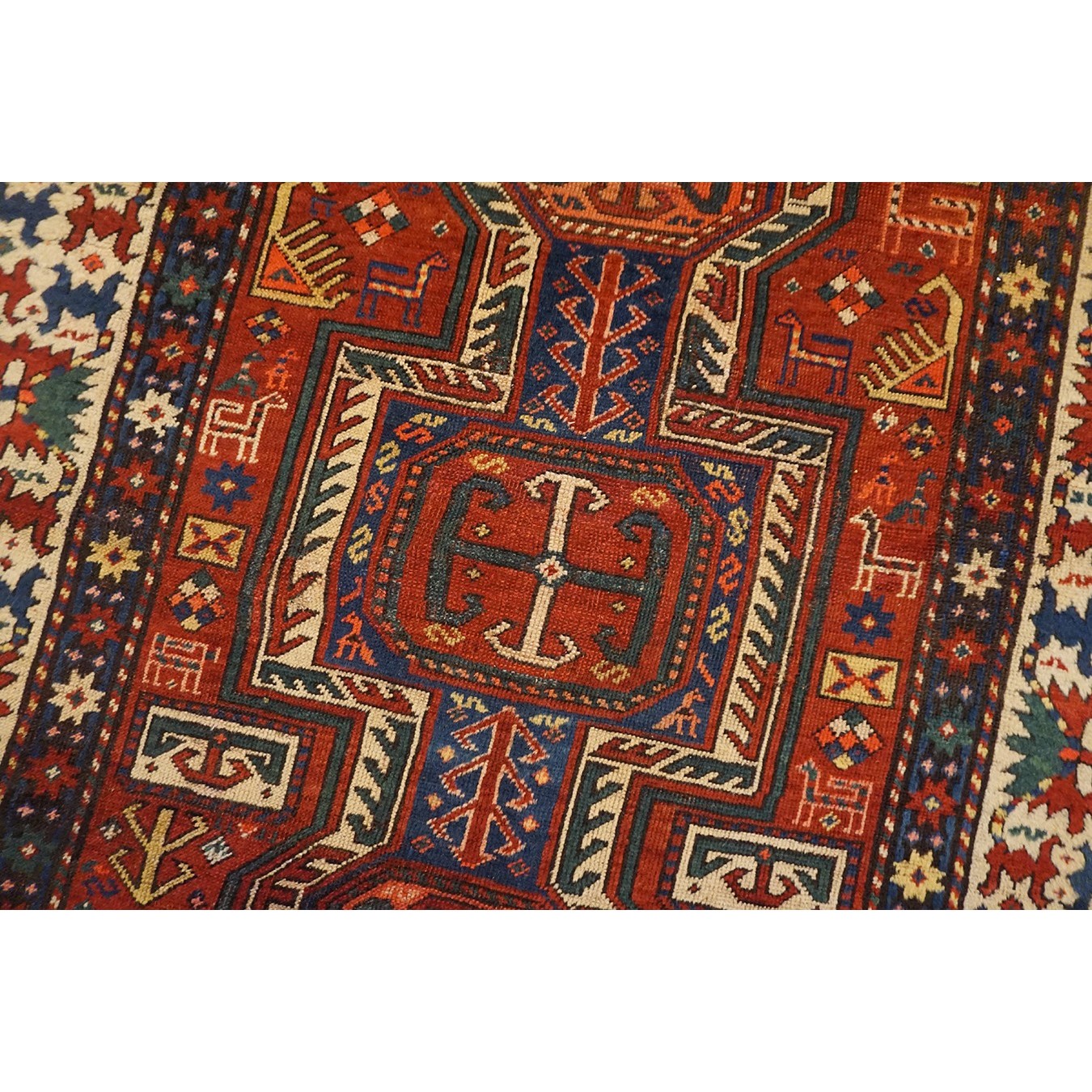 DescriptionCaucasianThis is the general heading for all rugs made in the Caucasus mountains and in the trans-Caucasus areas, north of the Arax River, and between the Black and Caspian Seas. This includes rugs from the Kazak, Karabagh, Gendje, Koghan, Talish, Akstafa, Shirvan, Baku, Kuba and hesghi districts and the variants and subtypes thereof. The rugs are usually in scatter sizes and of all wool construction, with bold colors and geometric patterns, from the 18th through 20th centuries. Prices range widely depending on rarity, color, design and condition. A strong collector market exists for the better examples. CaucasianThis is the general heading for all rugs made in the Caucasus mountains and in the trans-Caucasus areas, north of the Arax River, and between the Black and Caspian Seas. This includes rugs from the Kazak, Karabagh, Gendje, Koghan, Talish, Akstafa, Shirvan, Baku, Kuba and hesghi districts and the variants and subtypes thereof. The rugs are usually in scatter sizes and of all wool construction, with bold colors and geometric patterns, from the 18th through 20th centuries. Prices range widely depending on rarity, color, design and condition. A strong collector market exists for the better examples. | |