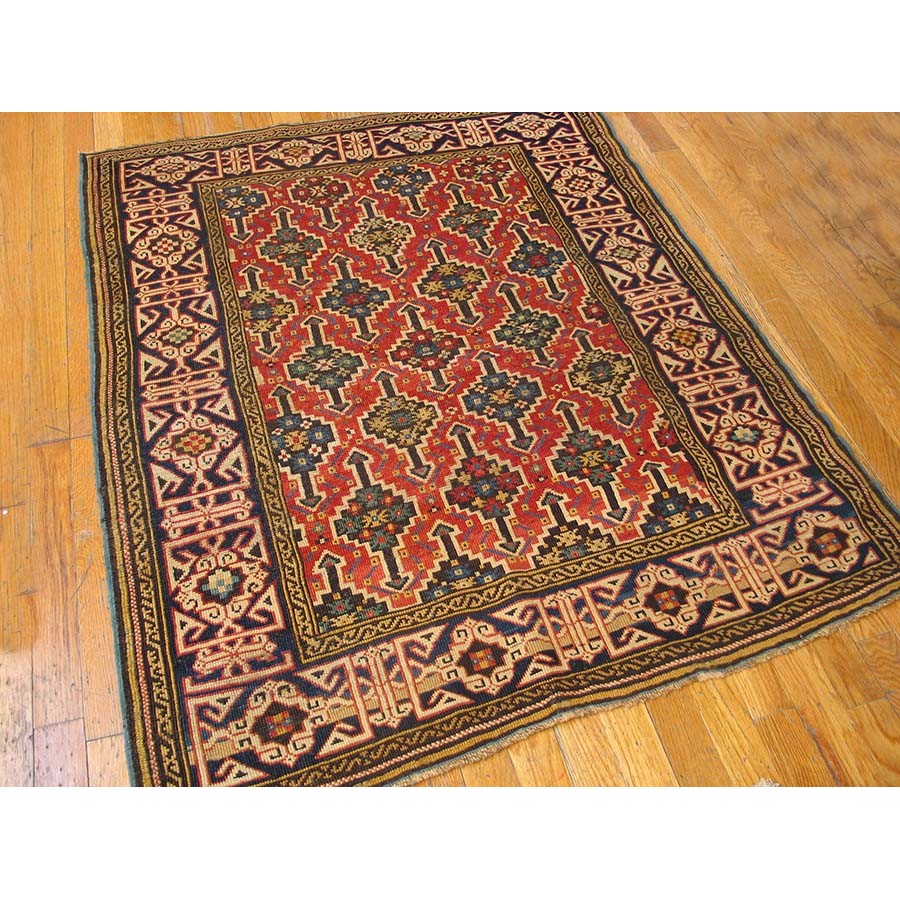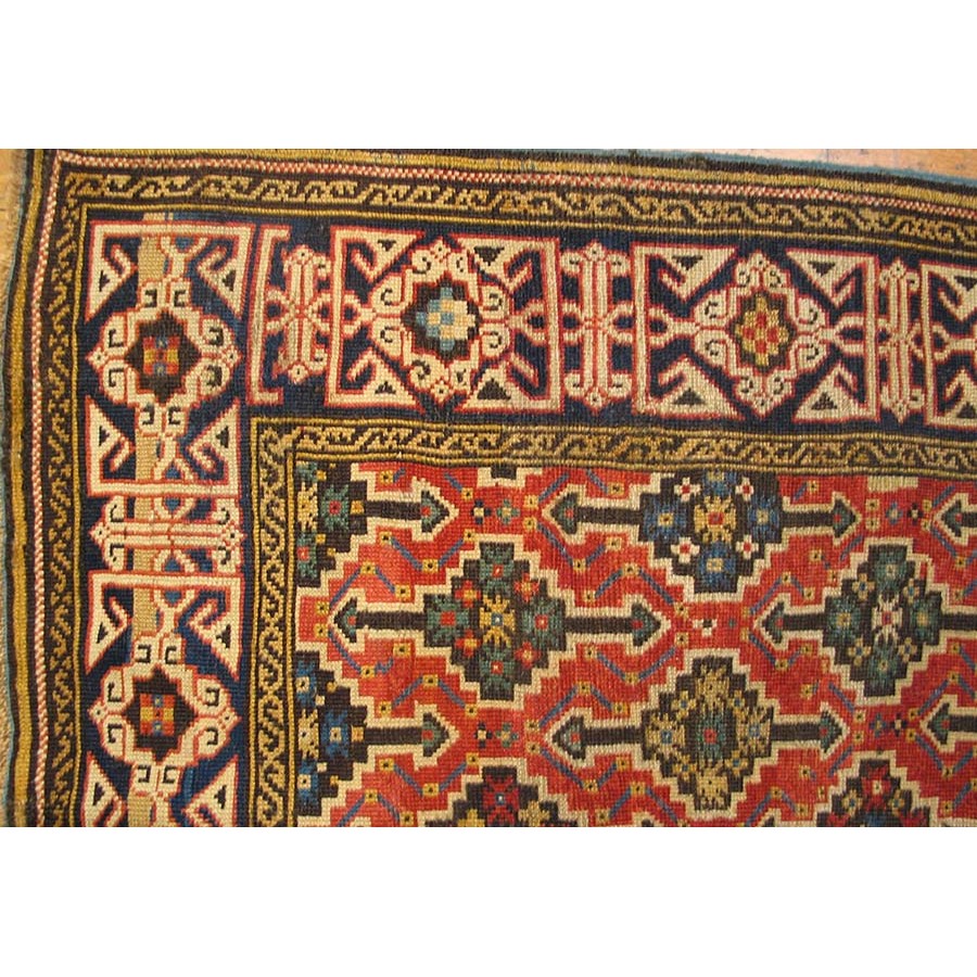 DescriptionCaucasianThis is the general heading for all rugs made in the Caucasus mountains and in the trans-Caucasus areas, north of the Arax River, and between the Black and Caspian Seas. This includes rugs from the Kazak, Karabagh, Gendje, Koghan, Talish, Akstafa, Shirvan, Baku, Kuba and hesghi districts and the variants and subtypes thereof. The rugs are usually in scatter sizes and of all wool construction, with bold colors and geometric patterns, from the 18th through 20th centuries. Prices range widely depending on rarity, color, design and condition. A strong collector market exists for the better examples. CaucasianThis is the general heading for all rugs made in the Caucasus mountains and in the trans-Caucasus areas, north of the Arax River, and between the Black and Caspian Seas. This includes rugs from the Kazak, Karabagh, Gendje, Koghan, Talish, Akstafa, Shirvan, Baku, Kuba and hesghi districts and the variants and subtypes thereof. The rugs are usually in scatter sizes and of all wool construction, with bold colors and geometric patterns, from the 18th through 20th centuries. Prices range widely depending on rarity, color, design and condition. A strong collector market exists for the better examples. | |