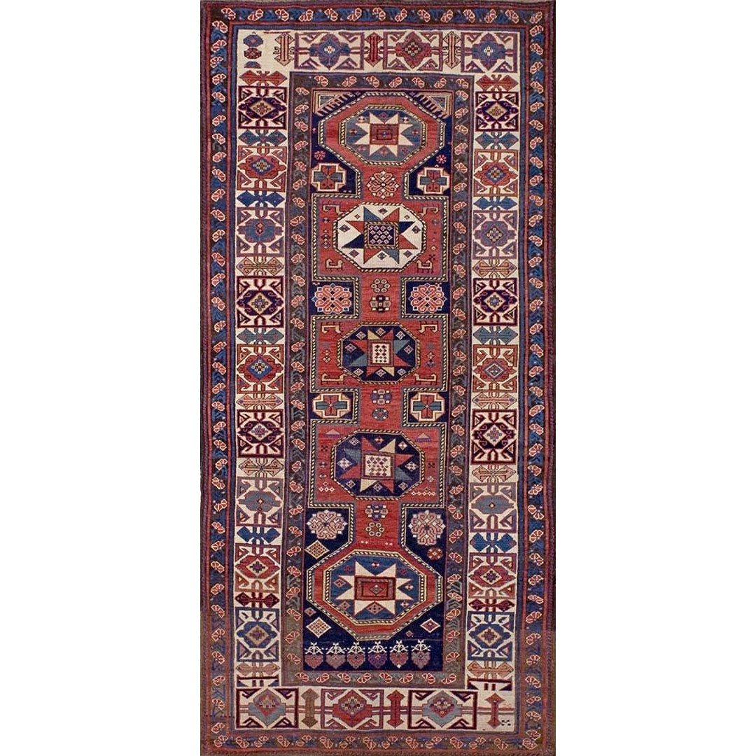 DescriptionCaucasianThis is the general heading for all rugs made in the Caucasus mountains and in the trans-Caucasus areas, north of the Arax River, and between the Black and Caspian Seas. This includes rugs from the Kazak, Karabagh, Gendje, Koghan, Talish, Akstafa, Shirvan, Baku, Kuba and hesghi districts and the variants and subtypes thereof. The rugs are usually in scatter sizes and of all wool construction, with bold colors and geometric patterns, from the 18th through 20th centuries. Prices range widely depending on rarity, color, design and condition. A strong collector market exists for the better examples. CaucasianThis is the general heading for all rugs made in the Caucasus mountains and in the trans-Caucasus areas, north of the Arax River, and between the Black and Caspian Seas. This includes rugs from the Kazak, Karabagh, Gendje, Koghan, Talish, Akstafa, Shirvan, Baku, Kuba and hesghi districts and the variants and subtypes thereof. The rugs are usually in scatter sizes and of all wool construction, with bold colors and geometric patterns, from the 18th through 20th centuries. Prices range widely depending on rarity, color, design and condition. A strong collector market exists for the better examples. | |