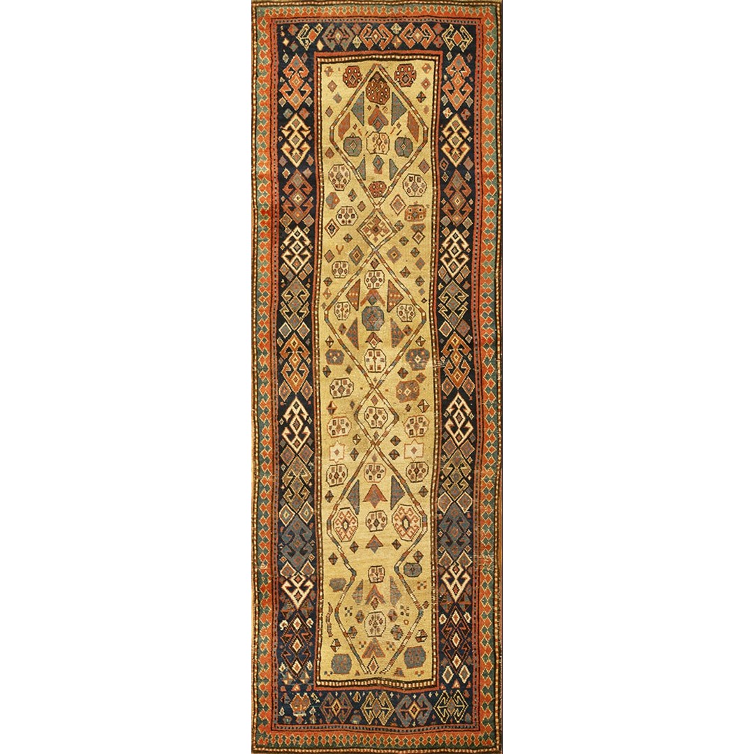 DescriptionCaucasianThis is the general heading for all rugs made in the Caucasus mountains and in the trans-Caucasus areas, north of the Arax River, and between the Black and Caspian Seas. This includes rugs from the Kazak, Karabagh, Gendje, Koghan, Talish, Akstafa, Shirvan, Baku, Kuba and hesghi districts and the variants and subtypes thereof. The rugs are usually in scatter sizes and of all wool construction, with bold colors and geometric patterns, from the 18th through 20th centuries. Prices range widely depending on rarity, color, design and condition. A strong collector market exists for the better examples. CaucasianThis is the general heading for all rugs made in the Caucasus mountains and in the trans-Caucasus areas, north of the Arax River, and between the Black and Caspian Seas. This includes rugs from the Kazak, Karabagh, Gendje, Koghan, Talish, Akstafa, Shirvan, Baku, Kuba and hesghi districts and the variants and subtypes thereof. The rugs are usually in scatter sizes and of all wool construction, with bold colors and geometric patterns, from the 18th through 20th centuries. Prices range widely depending on rarity, color, design and condition. A strong collector market exists for the better examples. | |