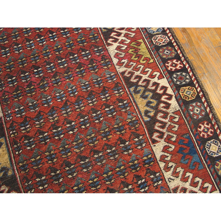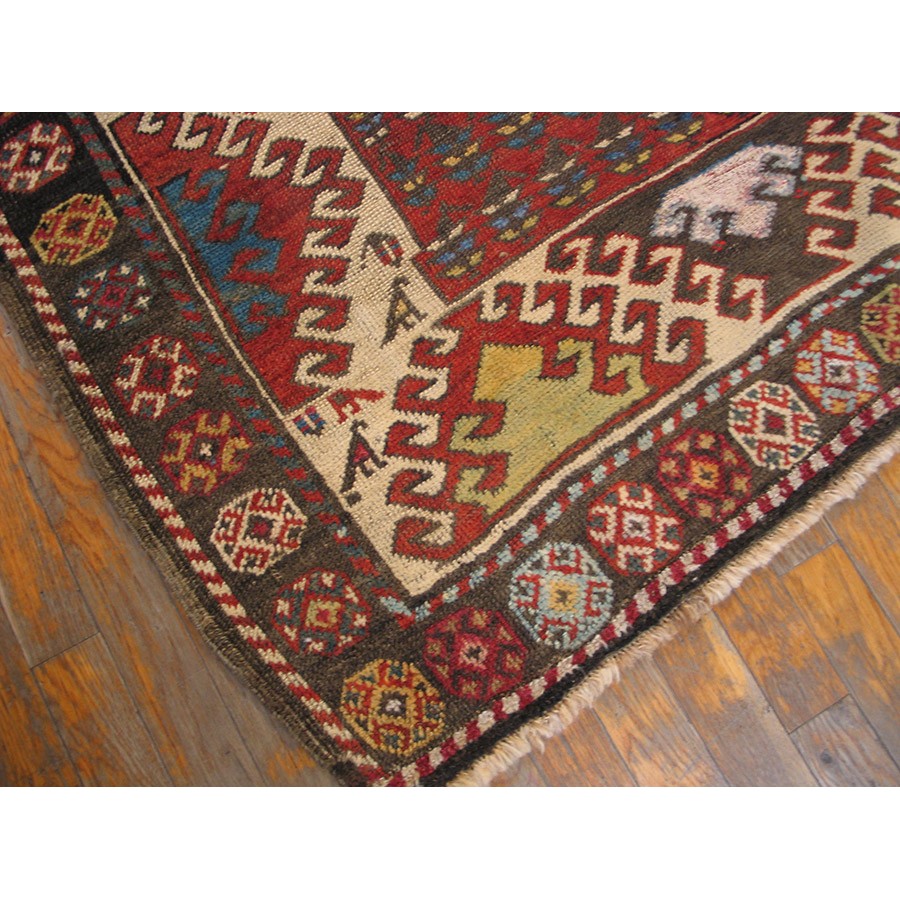 DescriptionCaucasianThis is the general heading for all rugs made in the Caucasus mountains and in the trans-Caucasus areas, north of the Arax River, and between the Black and Caspian Seas. This includes rugs from the Kazak, Karabagh, Gendje, Koghan, Talish, Akstafa, Shirvan, Baku, Kuba and hesghi districts and the variants and subtypes thereof. The rugs are usually in scatter sizes and of all wool construction, with bold colors and geometric patterns, from the 18th through 20th centuries. Prices range widely depending on rarity, color, design and condition. A strong collector market exists for the better examples. CaucasianThis is the general heading for all rugs made in the Caucasus mountains and in the trans-Caucasus areas, north of the Arax River, and between the Black and Caspian Seas. This includes rugs from the Kazak, Karabagh, Gendje, Koghan, Talish, Akstafa, Shirvan, Baku, Kuba and hesghi districts and the variants and subtypes thereof. The rugs are usually in scatter sizes and of all wool construction, with bold colors and geometric patterns, from the 18th through 20th centuries. Prices range widely depending on rarity, color, design and condition. A strong collector market exists for the better examples. | |