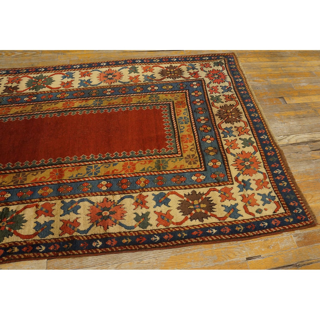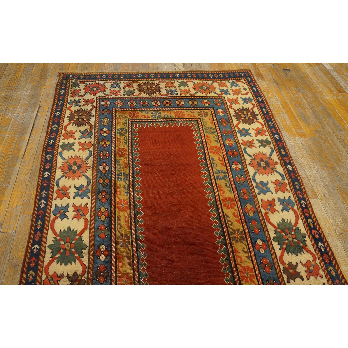 DescriptionCaucasianThis is the general heading for all rugs made in the Caucasus mountains and in the trans-Caucasus areas, north of the Arax River, and between the Black and Caspian Seas. This includes rugs from the Kazak, Karabagh, Gendje, Koghan, Talish, Akstafa, Shirvan, Baku, Kuba and hesghi districts and the variants and subtypes thereof. The rugs are usually in scatter sizes and of all wool construction, with bold colors and geometric patterns, from the 18th through 20th centuries. Prices range widely depending on rarity, color, design and condition. A strong collector market exists for the better examples. CaucasianThis is the general heading for all rugs made in the Caucasus mountains and in the trans-Caucasus areas, north of the Arax River, and between the Black and Caspian Seas. This includes rugs from the Kazak, Karabagh, Gendje, Koghan, Talish, Akstafa, Shirvan, Baku, Kuba and hesghi districts and the variants and subtypes thereof. The rugs are usually in scatter sizes and of all wool construction, with bold colors and geometric patterns, from the 18th through 20th centuries. Prices range widely depending on rarity, color, design and condition. A strong collector market exists for the better examples. | |