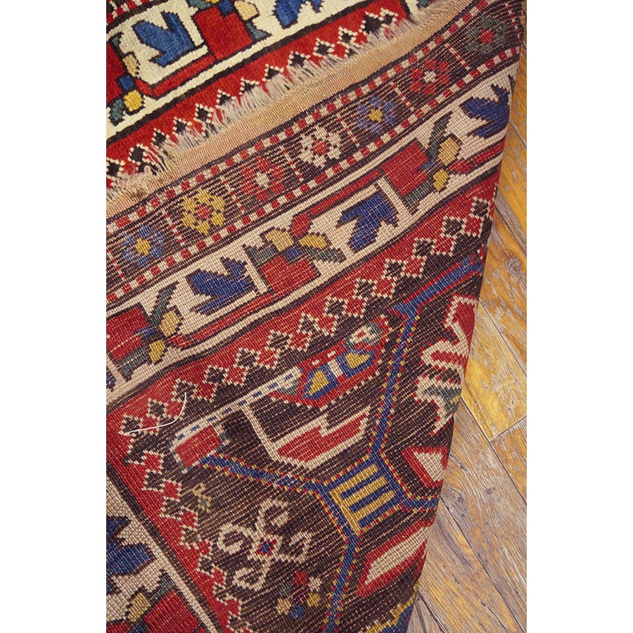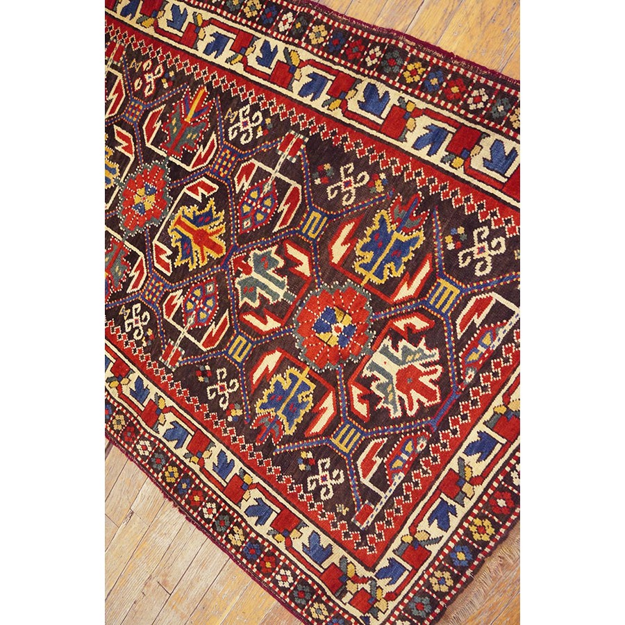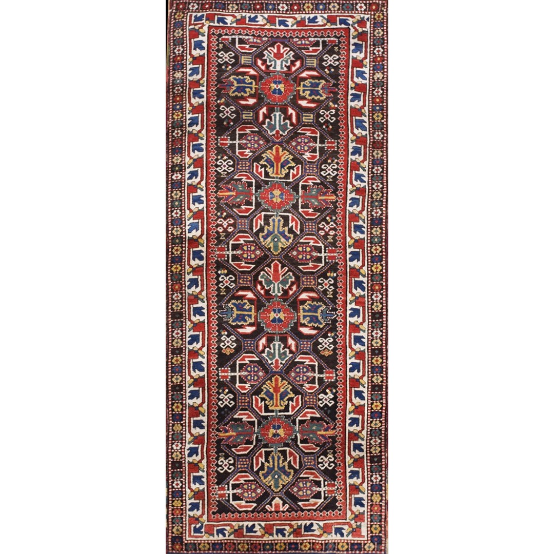 DescriptionCaucasianThis is the general heading for all rugs made in the Caucasus mountains and in the trans-Caucasus areas, north of the Arax River, and between the Black and Caspian Seas. This includes rugs from the Kazak, Karabagh, Gendje, Koghan, Talish, Akstafa, Shirvan, Baku, Kuba and hesghi districts and the variants and subtypes thereof. The rugs are usually in scatter sizes and of all wool construction, with bold colors and geometric patterns, from the 18th through 20th centuries. Prices range widely depending on rarity, color, design and condition. A strong collector market exists for the better examples. CaucasianThis is the general heading for all rugs made in the Caucasus mountains and in the trans-Caucasus areas, north of the Arax River, and between the Black and Caspian Seas. This includes rugs from the Kazak, Karabagh, Gendje, Koghan, Talish, Akstafa, Shirvan, Baku, Kuba and hesghi districts and the variants and subtypes thereof. The rugs are usually in scatter sizes and of all wool construction, with bold colors and geometric patterns, from the 18th through 20th centuries. Prices range widely depending on rarity, color, design and condition. A strong collector market exists for the better examples. | |