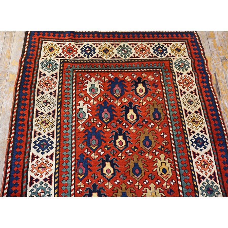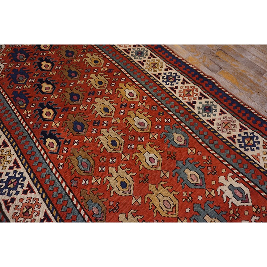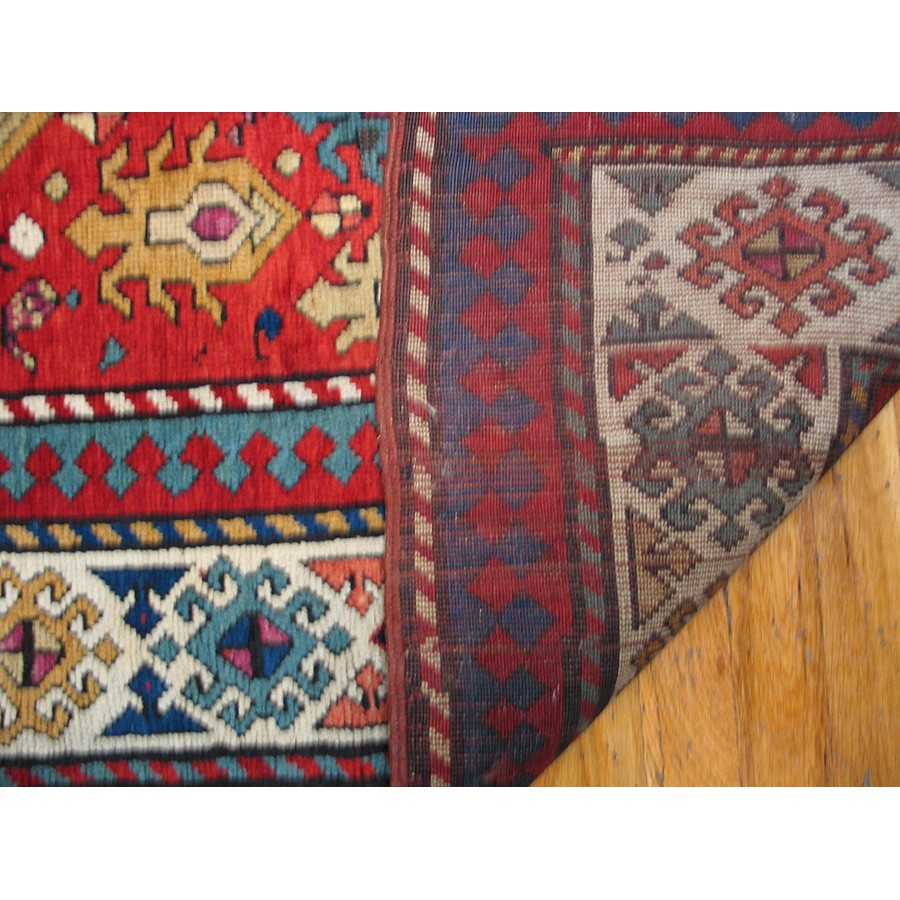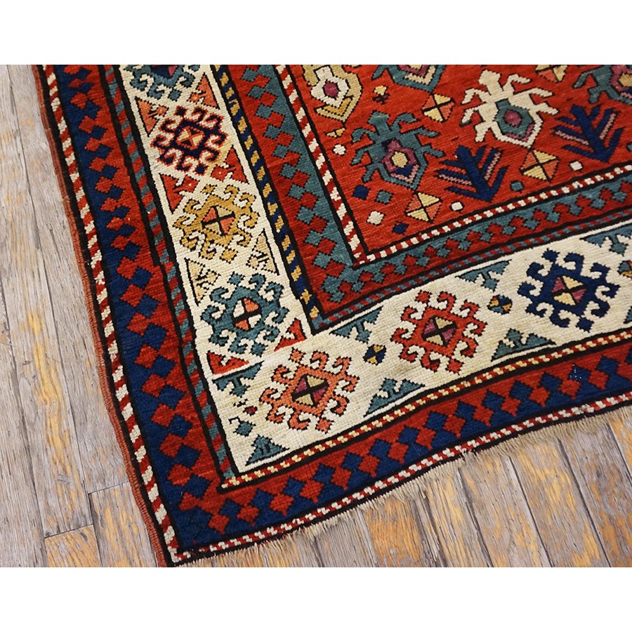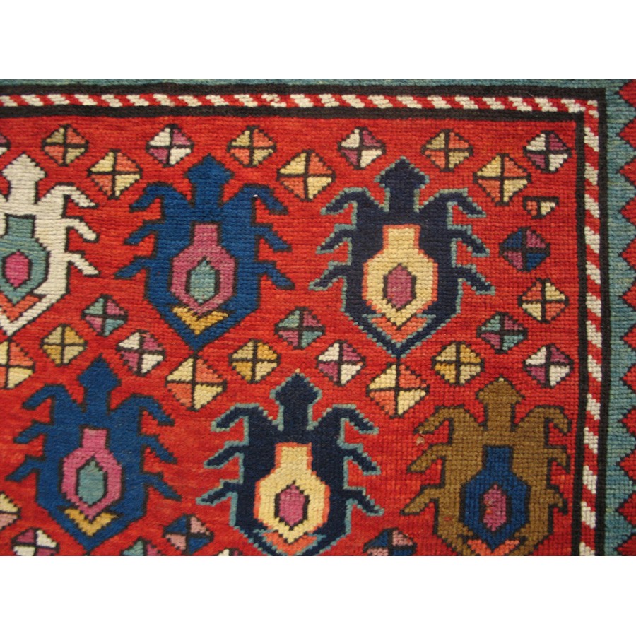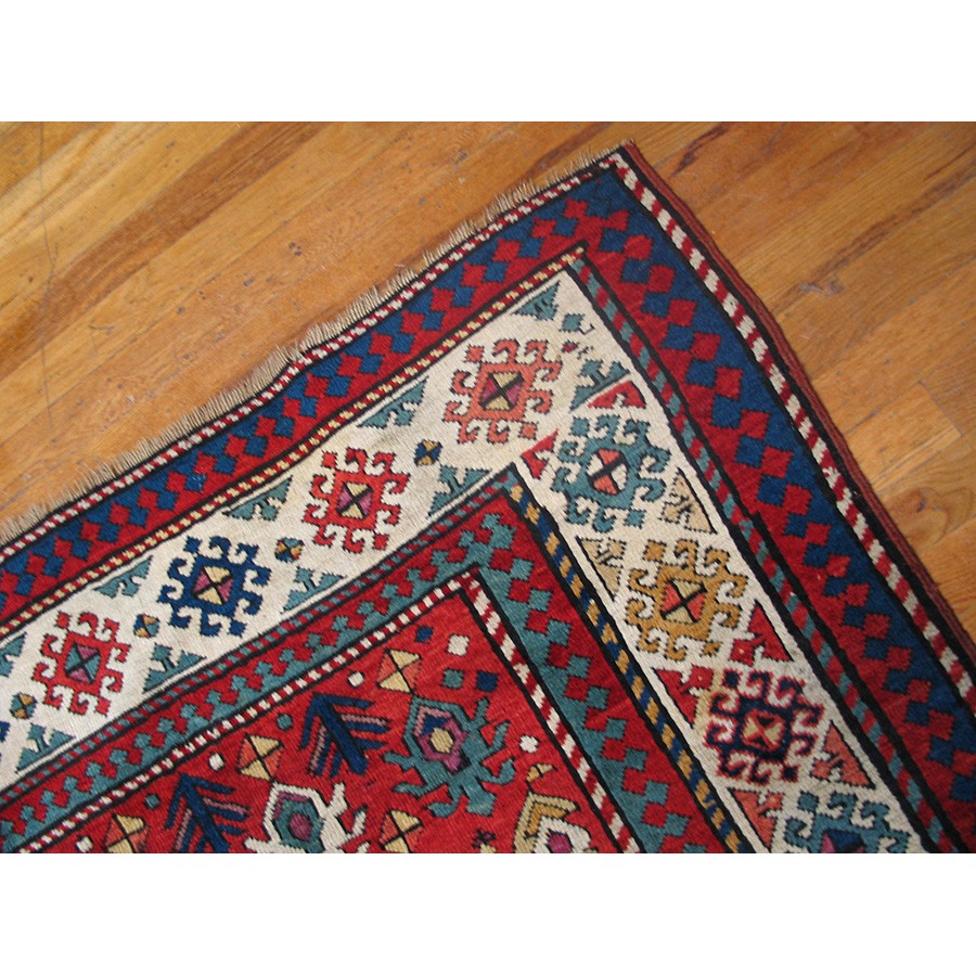 DescriptionCaucasianThis is the general heading for all rugs made in the Caucasus mountains and in the trans-Caucasus areas, north of the Arax River, and between the Black and Caspian Seas. This includes rugs from the Kazak, Karabagh, Gendje, Koghan, Talish, Akstafa, Shirvan, Baku, Kuba and hesghi districts and the variants and subtypes thereof. The rugs are usually in scatter sizes and of all wool construction, with bold colors and geometric patterns, from the 18th through 20th centuries. Prices range widely depending on rarity, color, design and condition. A strong collector market exists for the better examples. CaucasianThis is the general heading for all rugs made in the Caucasus mountains and in the trans-Caucasus areas, north of the Arax River, and between the Black and Caspian Seas. This includes rugs from the Kazak, Karabagh, Gendje, Koghan, Talish, Akstafa, Shirvan, Baku, Kuba and hesghi districts and the variants and subtypes thereof. The rugs are usually in scatter sizes and of all wool construction, with bold colors and geometric patterns, from the 18th through 20th centuries. Prices range widely depending on rarity, color, design and condition. A strong collector market exists for the better examples. | |
