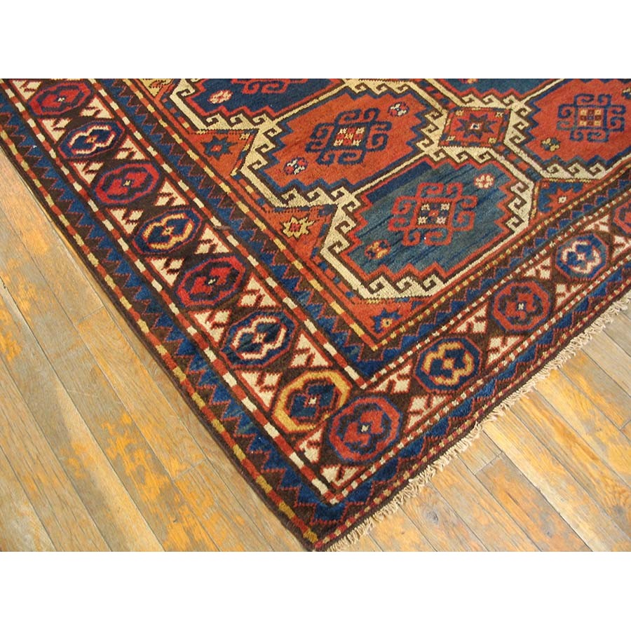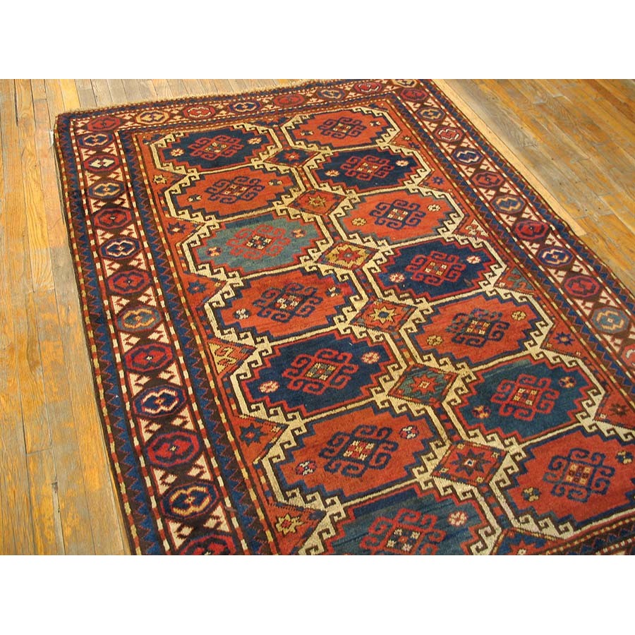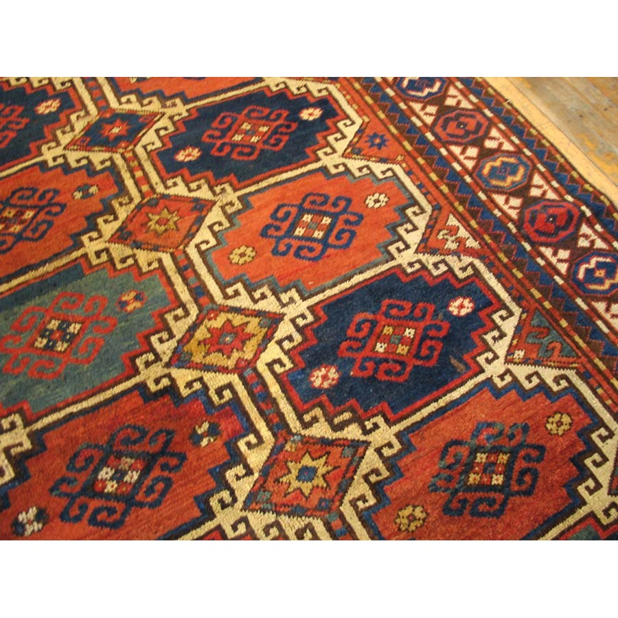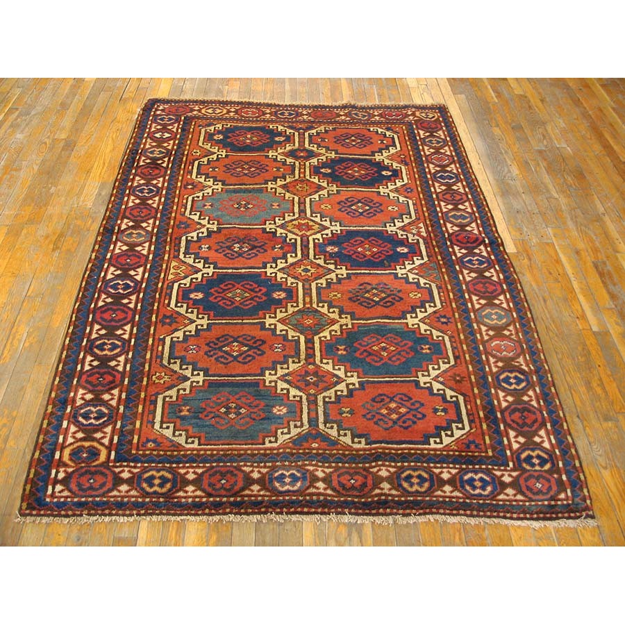 DescriptionCaucasianThis is the general heading for all rugs made in the Caucasus mountains and in the trans-Caucasus areas, north of the Arax River, and between the Black and Caspian Seas. This includes rugs from the Kazak, Karabagh, Gendje, Koghan, Talish, Akstafa, Shirvan, Baku, Kuba and hesghi districts and the variants and subtypes thereof. The rugs are usually in scatter sizes and of all wool construction, with bold colors and geometric patterns, from the 18th through 20th centuries. Prices range widely depending on rarity, color, design and condition. A strong collector market exists for the better examples. CaucasianThis is the general heading for all rugs made in the Caucasus mountains and in the trans-Caucasus areas, north of the Arax River, and between the Black and Caspian Seas. This includes rugs from the Kazak, Karabagh, Gendje, Koghan, Talish, Akstafa, Shirvan, Baku, Kuba and hesghi districts and the variants and subtypes thereof. The rugs are usually in scatter sizes and of all wool construction, with bold colors and geometric patterns, from the 18th through 20th centuries. Prices range widely depending on rarity, color, design and condition. A strong collector market exists for the better examples. | |