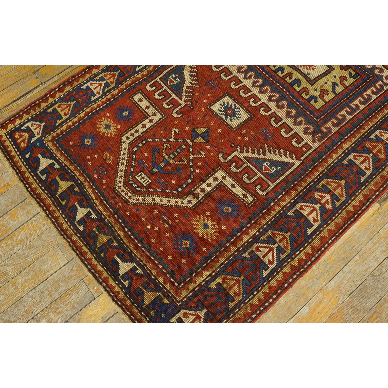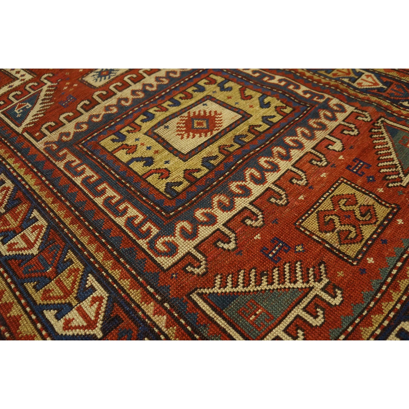DescriptionCaucasianThis is the general heading for all rugs made in the Caucasus mountains and in the trans-Caucasus areas, north of the Arax River, and between the Black and Caspian Seas. This includes rugs from the Kazak, Karabagh, Gendje, Koghan, Talish, Akstafa, Shirvan, Baku, Kuba and hesghi districts and the variants and subtypes thereof. The rugs are usually in scatter sizes and of all wool construction, with bold colors and geometric patterns, from the 18th through 20th centuries. Prices range widely depending on rarity, color, design and condition. A strong collector market exists for the better examples. CaucasianThis is the general heading for all rugs made in the Caucasus mountains and in the trans-Caucasus areas, north of the Arax River, and between the Black and Caspian Seas. This includes rugs from the Kazak, Karabagh, Gendje, Koghan, Talish, Akstafa, Shirvan, Baku, Kuba and hesghi districts and the variants and subtypes thereof. The rugs are usually in scatter sizes and of all wool construction, with bold colors and geometric patterns, from the 18th through 20th centuries. Prices range widely depending on rarity, color, design and condition. A strong collector market exists for the better examples. | |