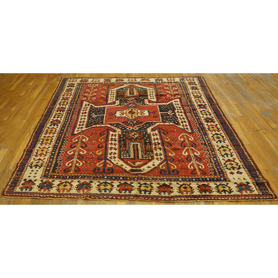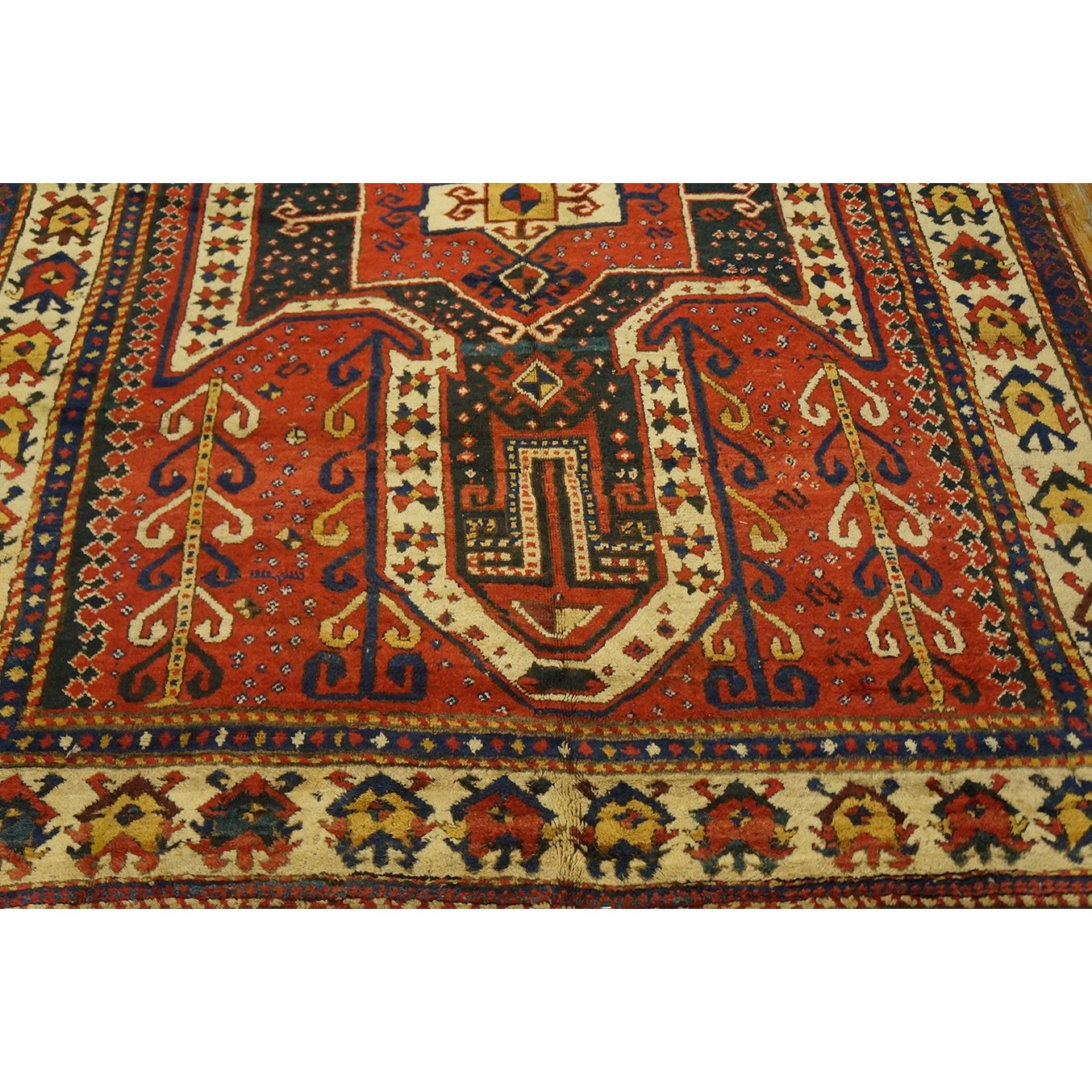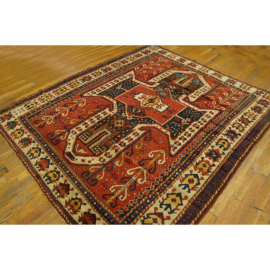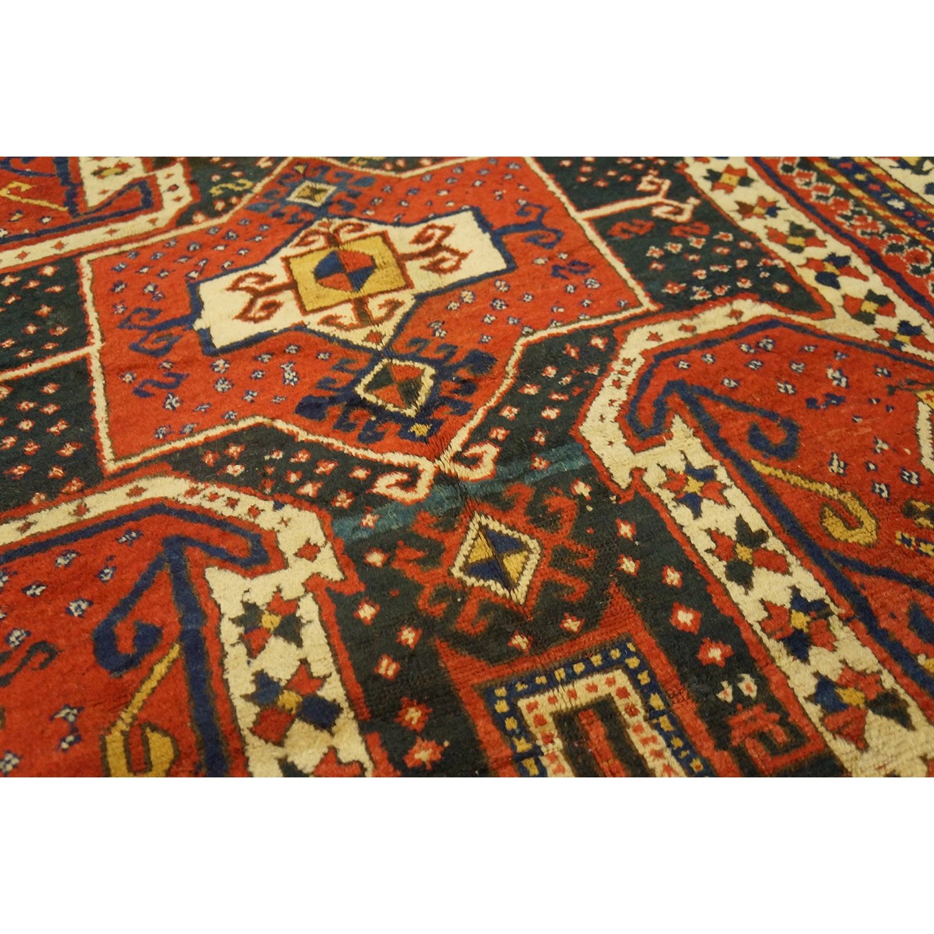 DescriptionCaucasianThis is the general heading for all rugs made in the Caucasus mountains and in the trans-Caucasus areas, north of the Arax River, and between the Black and Caspian Seas. This includes rugs from the Kazak, Karabagh, Gendje, Koghan, Talish, Akstafa, Shirvan, Baku, Kuba and hesghi districts and the variants and subtypes thereof. The rugs are usually in scatter sizes and of all wool construction, with bold colors and geometric patterns, from the 18th through 20th centuries. Prices range widely depending on rarity, color, design and condition. A strong collector market exists for the better examples. CaucasianThis is the general heading for all rugs made in the Caucasus mountains and in the trans-Caucasus areas, north of the Arax River, and between the Black and Caspian Seas. This includes rugs from the Kazak, Karabagh, Gendje, Koghan, Talish, Akstafa, Shirvan, Baku, Kuba and hesghi districts and the variants and subtypes thereof. The rugs are usually in scatter sizes and of all wool construction, with bold colors and geometric patterns, from the 18th through 20th centuries. Prices range widely depending on rarity, color, design and condition. A strong collector market exists for the better examples. | |