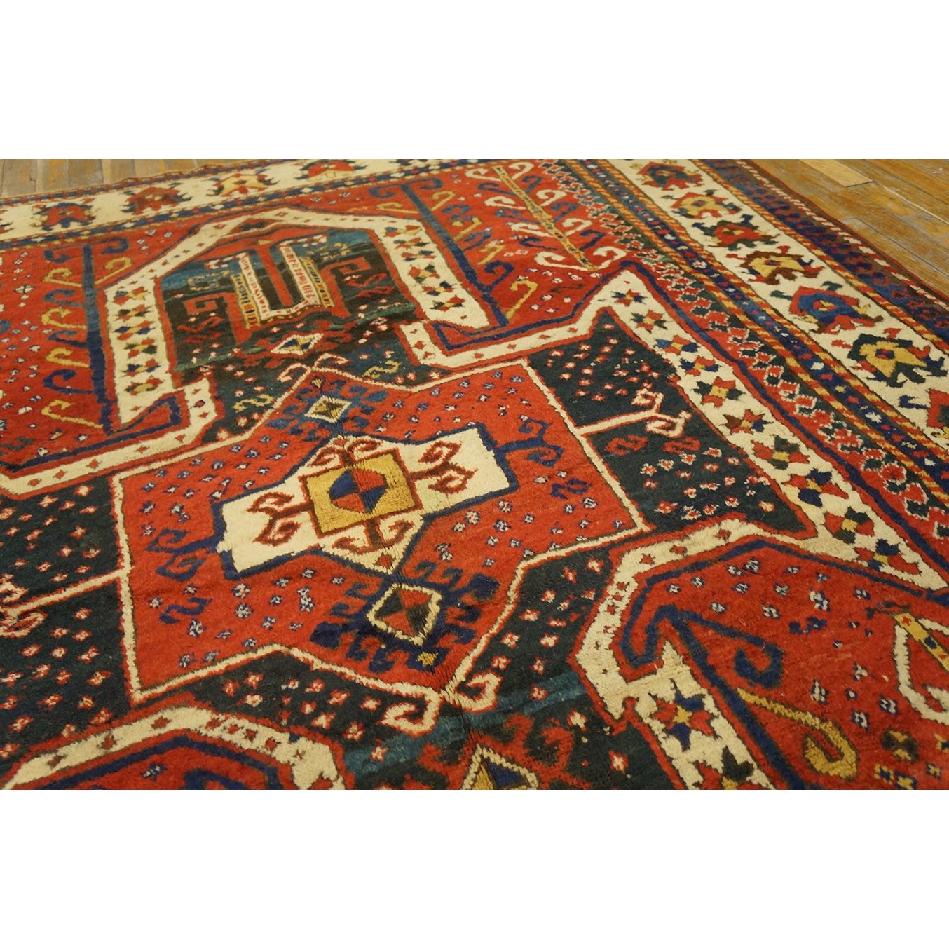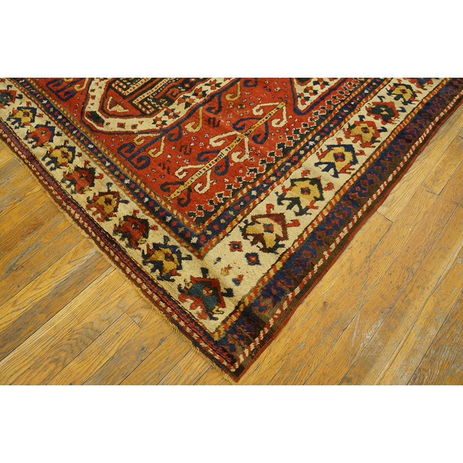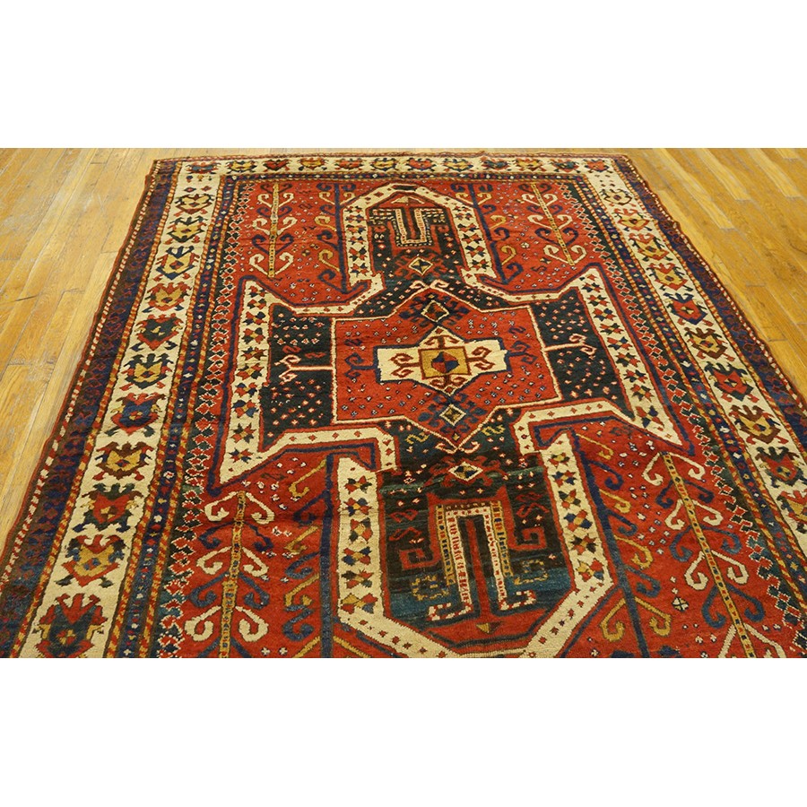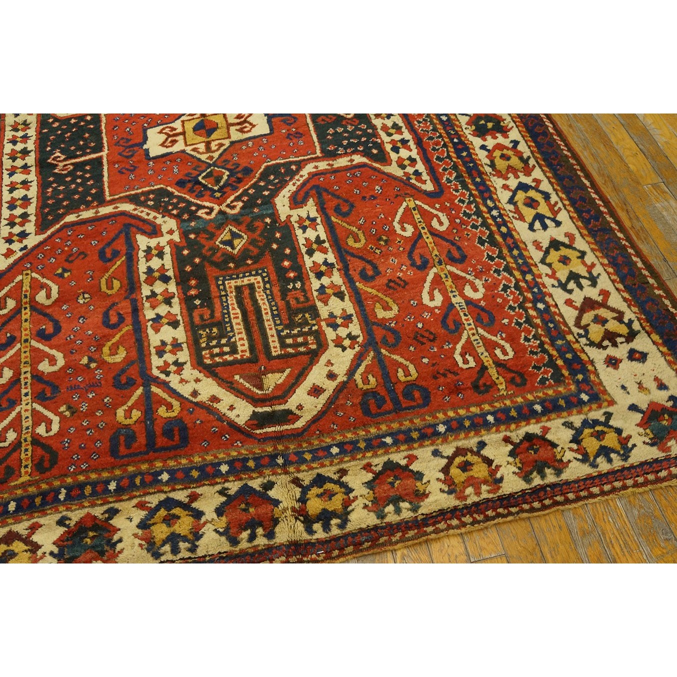 DescriptionCaucasianThis is the general heading for all rugs made in the Caucasus mountains and in the trans-Caucasus areas, north of the Arax River, and between the Black and Caspian Seas. This includes rugs from the Kazak, Karabagh, Gendje, Koghan, Talish, Akstafa, Shirvan, Baku, Kuba and hesghi districts and the variants and subtypes thereof. The rugs are usually in scatter sizes and of all wool construction, with bold colors and geometric patterns, from the 18th through 20th centuries. Prices range widely depending on rarity, color, design and condition. A strong collector market exists for the better examples. CaucasianThis is the general heading for all rugs made in the Caucasus mountains and in the trans-Caucasus areas, north of the Arax River, and between the Black and Caspian Seas. This includes rugs from the Kazak, Karabagh, Gendje, Koghan, Talish, Akstafa, Shirvan, Baku, Kuba and hesghi districts and the variants and subtypes thereof. The rugs are usually in scatter sizes and of all wool construction, with bold colors and geometric patterns, from the 18th through 20th centuries. Prices range widely depending on rarity, color, design and condition. A strong collector market exists for the better examples. | |