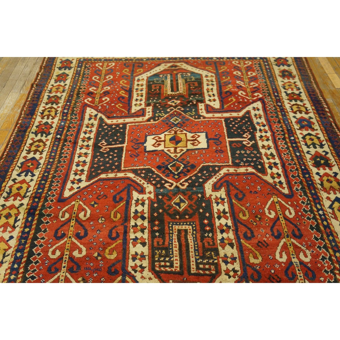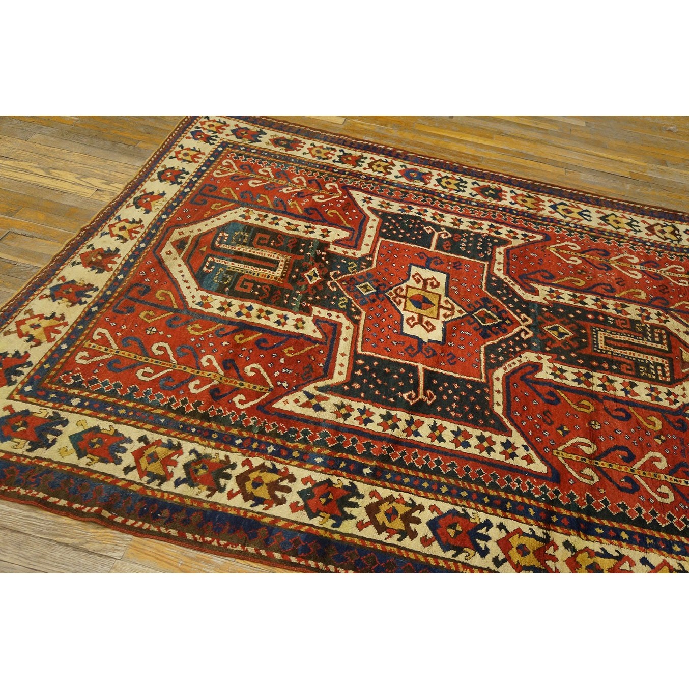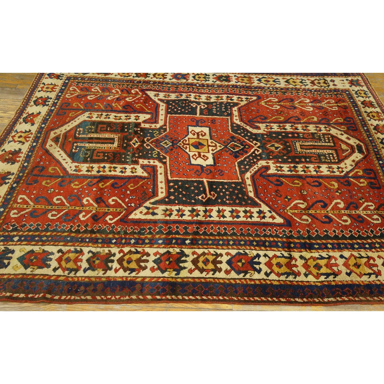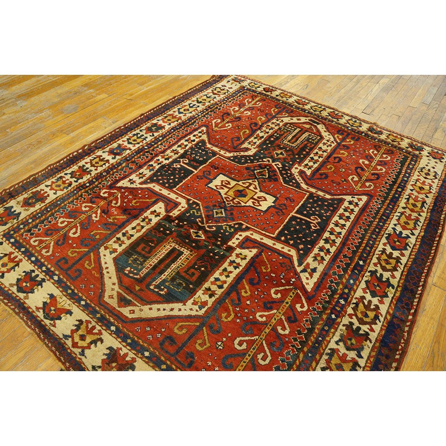DescriptionCaucasianThis is the general heading for all rugs made in the Caucasus mountains and in the trans-Caucasus areas, north of the Arax River, and between the Black and Caspian Seas. This includes rugs from the Kazak, Karabagh, Gendje, Koghan, Talish, Akstafa, Shirvan, Baku, Kuba and hesghi districts and the variants and subtypes thereof. The rugs are usually in scatter sizes and of all wool construction, with bold colors and geometric patterns, from the 18th through 20th centuries. Prices range widely depending on rarity, color, design and condition. A strong collector market exists for the better examples. CaucasianThis is the general heading for all rugs made in the Caucasus mountains and in the trans-Caucasus areas, north of the Arax River, and between the Black and Caspian Seas. This includes rugs from the Kazak, Karabagh, Gendje, Koghan, Talish, Akstafa, Shirvan, Baku, Kuba and hesghi districts and the variants and subtypes thereof. The rugs are usually in scatter sizes and of all wool construction, with bold colors and geometric patterns, from the 18th through 20th centuries. Prices range widely depending on rarity, color, design and condition. A strong collector market exists for the better examples. | |