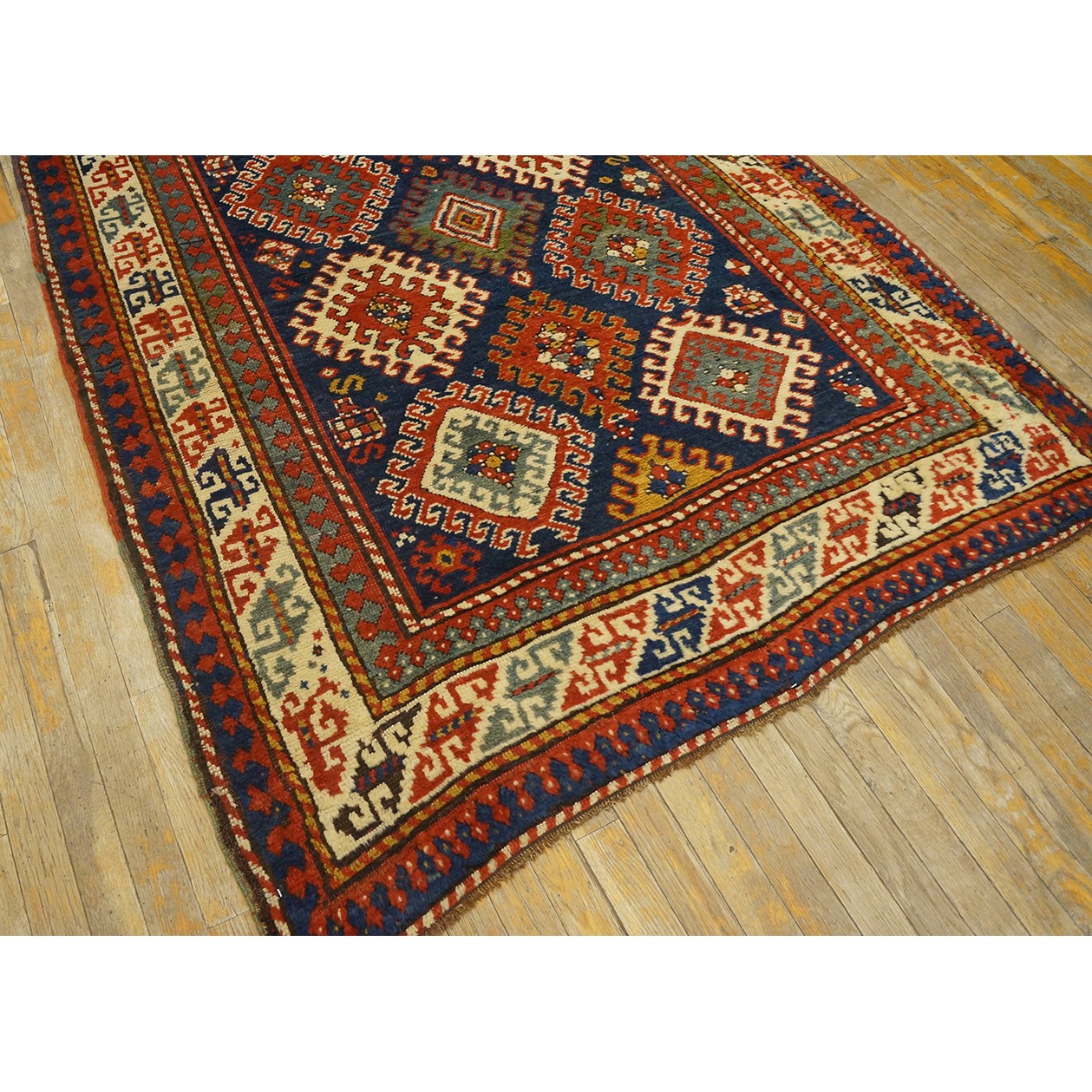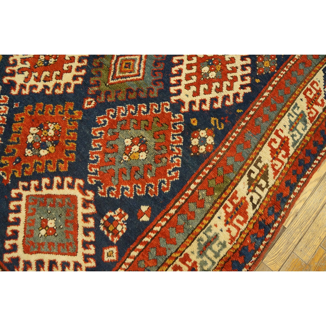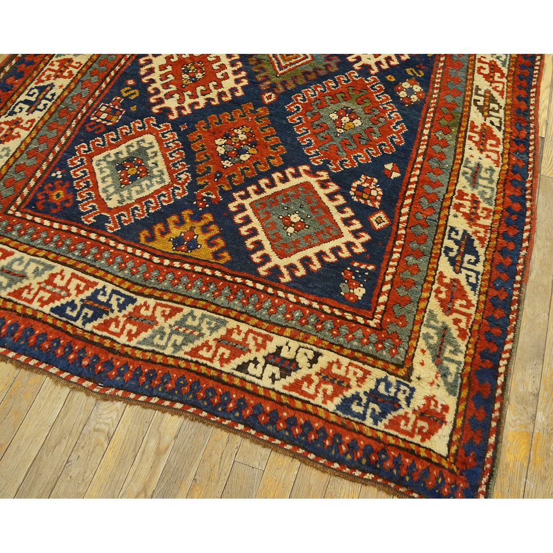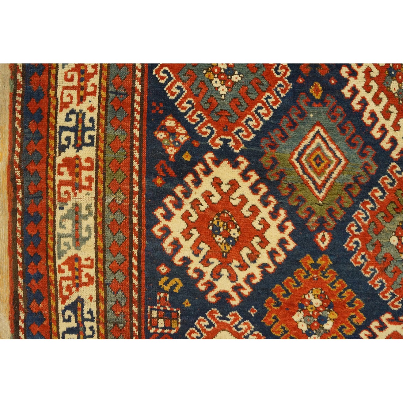 DescriptionCaucasianThis is the general heading for all rugs made in the Caucasus mountains and in the trans-Caucasus areas, north of the Arax River, and between the Black and Caspian Seas. This includes rugs from the Kazak, Karabagh, Gendje, Koghan, Talish, Akstafa, Shirvan, Baku, Kuba and hesghi districts and the variants and subtypes thereof. The rugs are usually in scatter sizes and of all wool construction, with bold colors and geometric patterns, from the 18th through 20th centuries. Prices range widely depending on rarity, color, design and condition. A strong collector market exists for the better examples. CaucasianThis is the general heading for all rugs made in the Caucasus mountains and in the trans-Caucasus areas, north of the Arax River, and between the Black and Caspian Seas. This includes rugs from the Kazak, Karabagh, Gendje, Koghan, Talish, Akstafa, Shirvan, Baku, Kuba and hesghi districts and the variants and subtypes thereof. The rugs are usually in scatter sizes and of all wool construction, with bold colors and geometric patterns, from the 18th through 20th centuries. Prices range widely depending on rarity, color, design and condition. A strong collector market exists for the better examples. | |