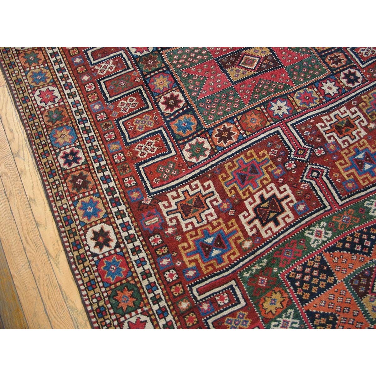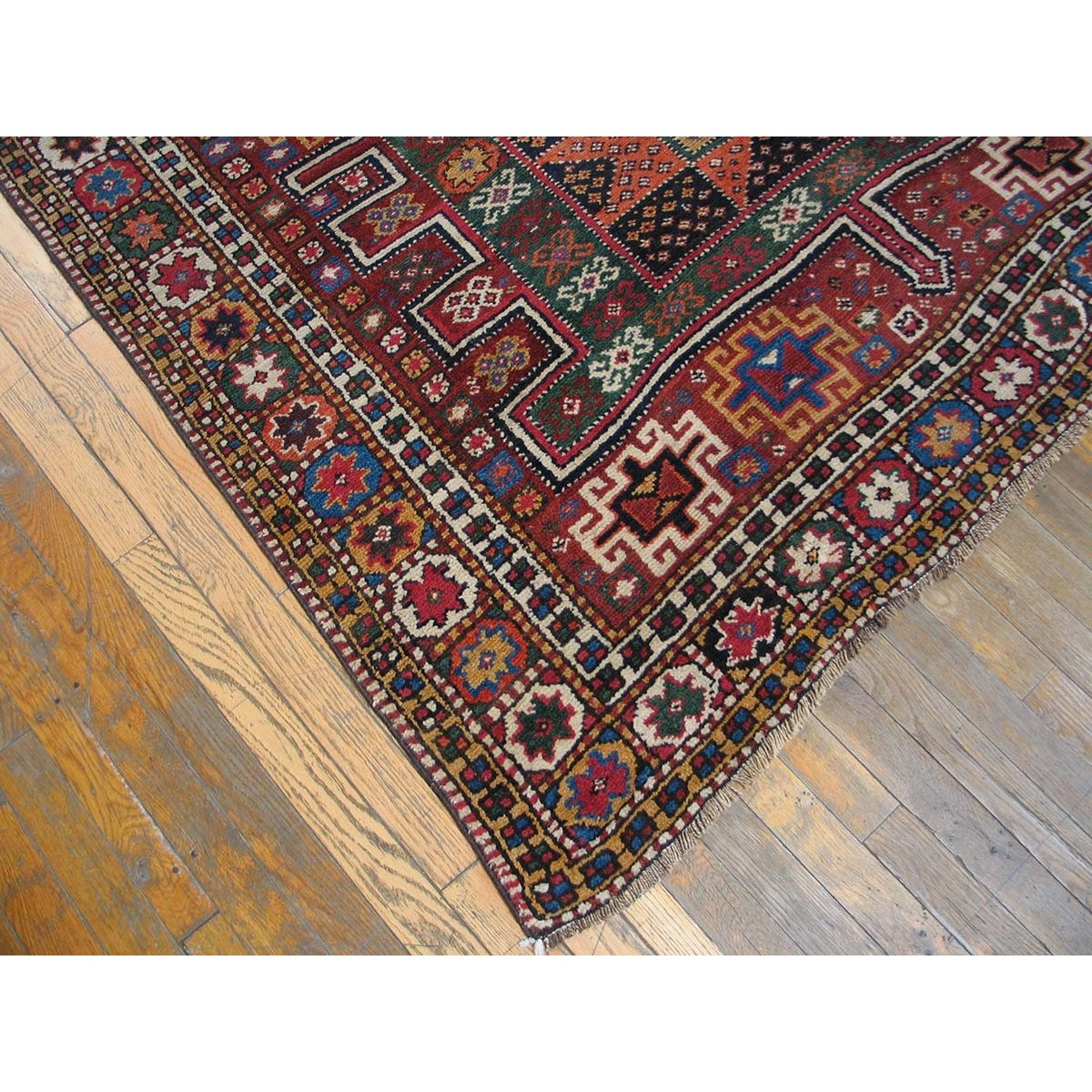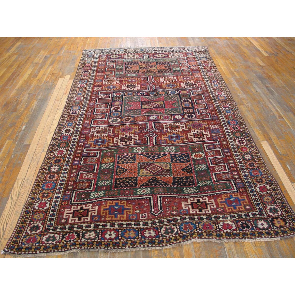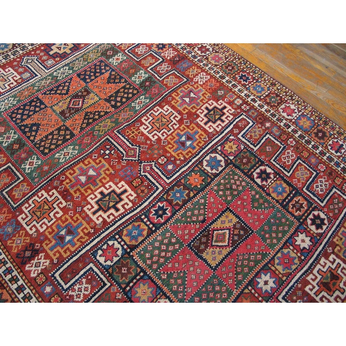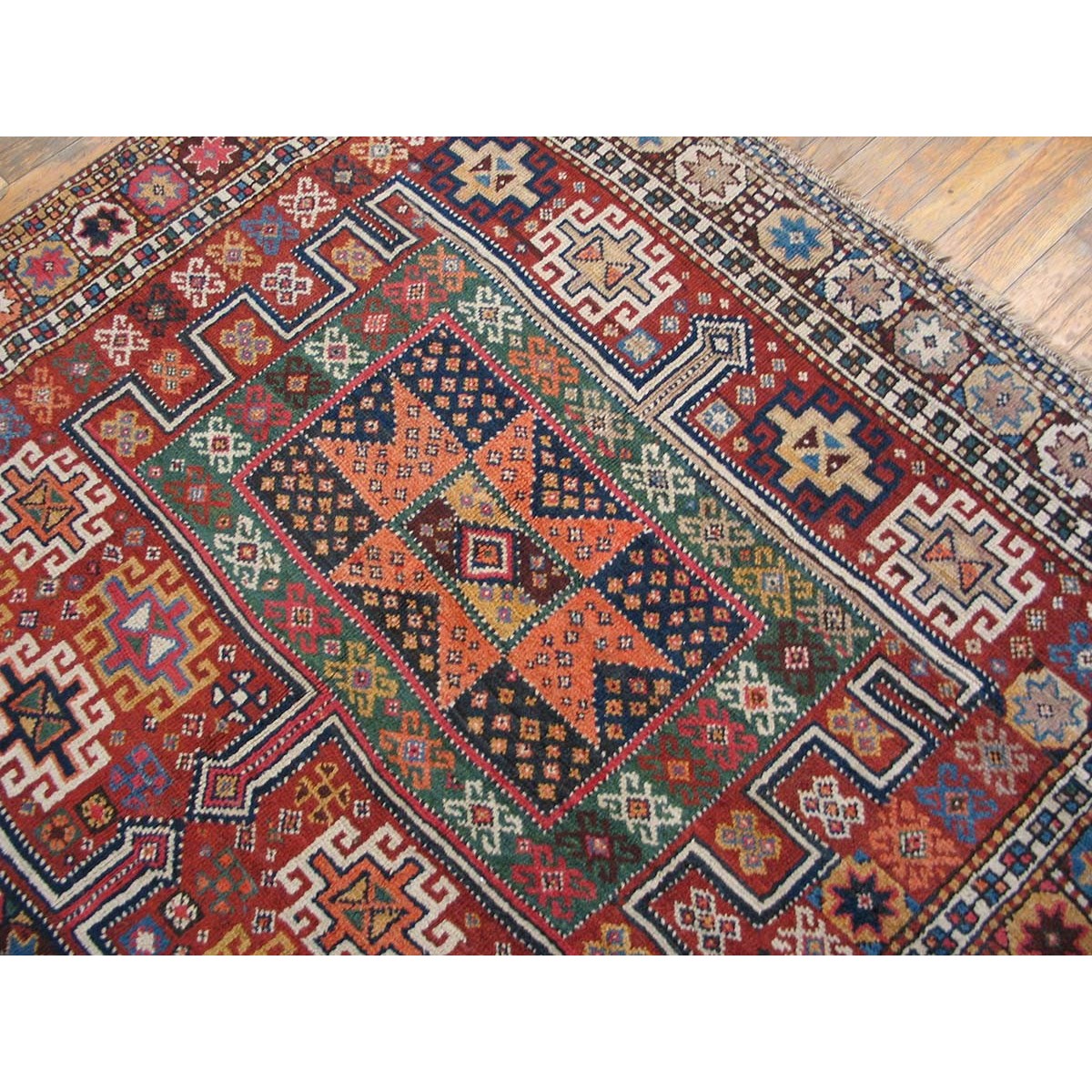 DescriptionCaucasianThis is the general heading for all rugs made in the Caucasus mountains and in the trans-Caucasus areas, north of the Arax River, and between the Black and Caspian Seas. This includes rugs from the Kazak, Karabagh, Gendje, Koghan, Talish, Akstafa, Shirvan, Baku, Kuba and hesghi districts and the variants and subtypes thereof. The rugs are usually in scatter sizes and of all wool construction, with bold colors and geometric patterns, from the 18th through 20th centuries. Prices range widely depending on rarity, color, design and condition. A strong collector market exists for the better examples. CaucasianThis is the general heading for all rugs made in the Caucasus mountains and in the trans-Caucasus areas, north of the Arax River, and between the Black and Caspian Seas. This includes rugs from the Kazak, Karabagh, Gendje, Koghan, Talish, Akstafa, Shirvan, Baku, Kuba and hesghi districts and the variants and subtypes thereof. The rugs are usually in scatter sizes and of all wool construction, with bold colors and geometric patterns, from the 18th through 20th centuries. Prices range widely depending on rarity, color, design and condition. A strong collector market exists for the better examples. | |