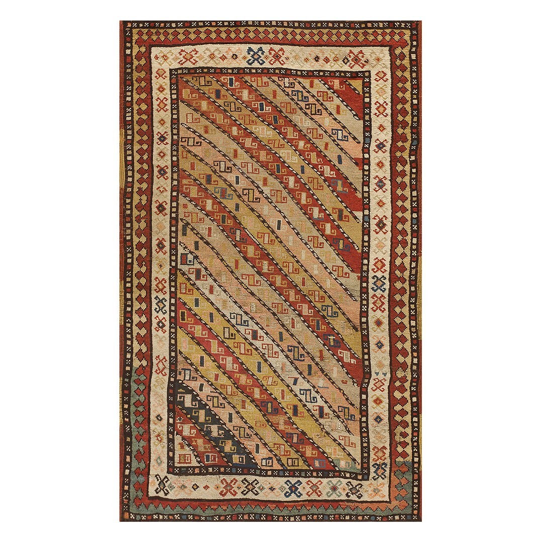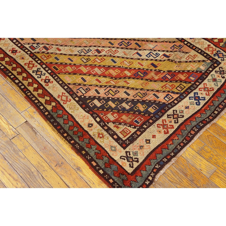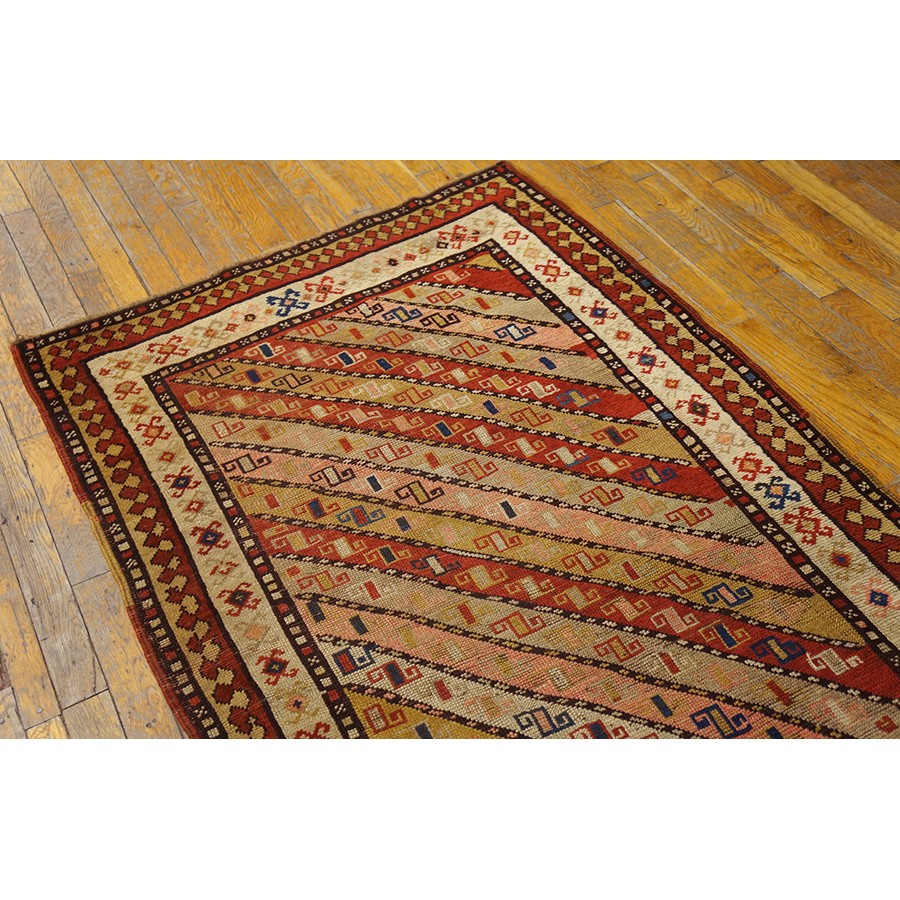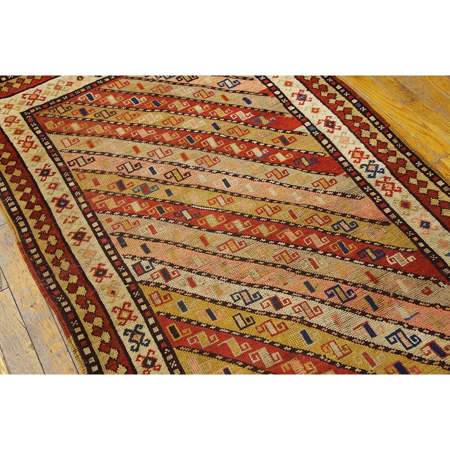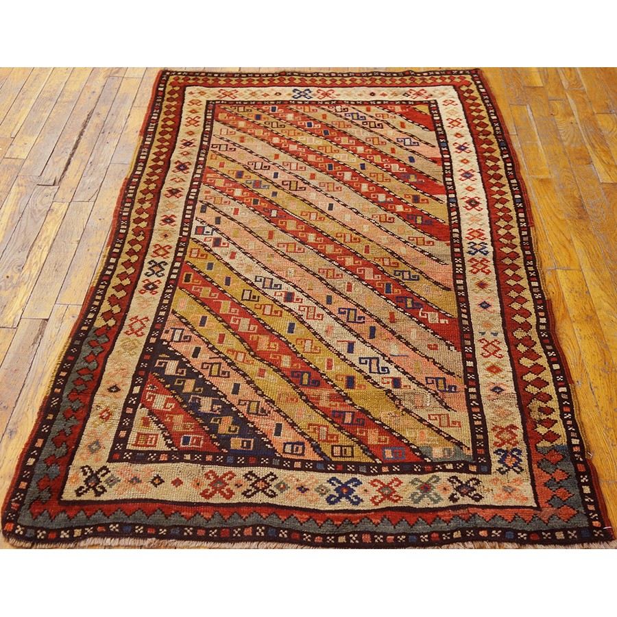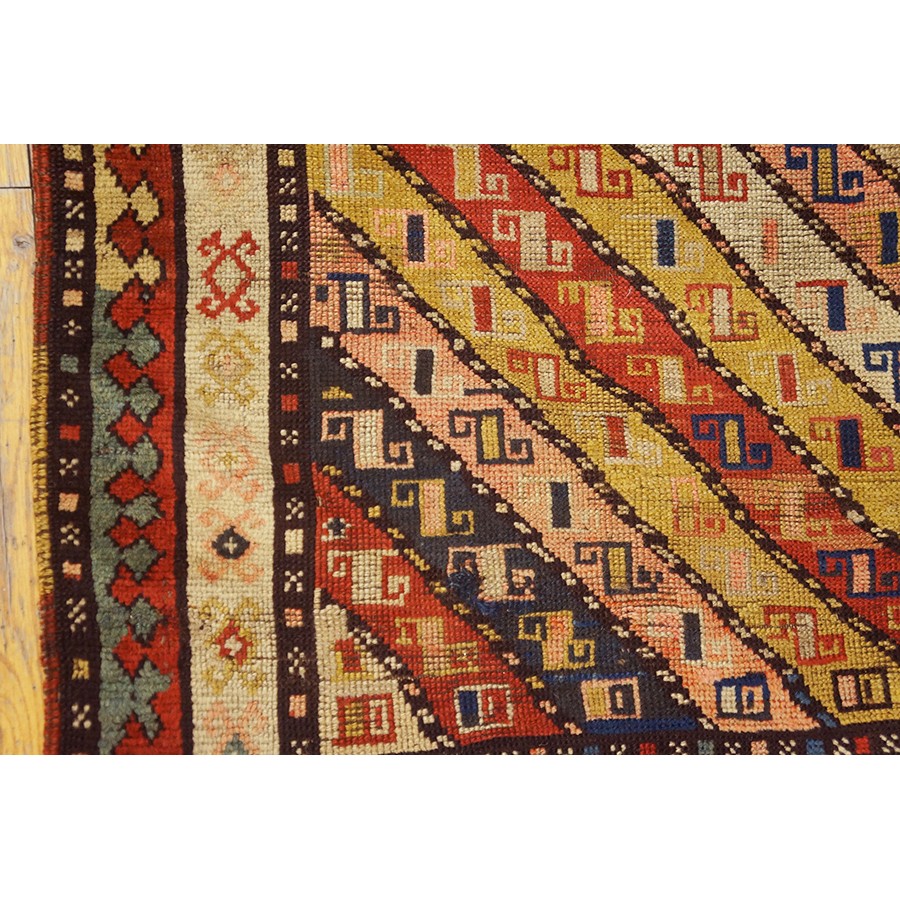 DescriptionCaucasianThis is the general heading for all rugs made in the Caucasus mountains and in the trans-Caucasus areas, north of the Arax River, and between the Black and Caspian Seas. This includes rugs from the Kazak, Karabagh, Gendje, Koghan, Talish, Akstafa, Shirvan, Baku, Kuba and hesghi districts and the variants and subtypes thereof. The rugs are usually in scatter sizes and of all wool construction, with bold colors and geometric patterns, from the 18th through 20th centuries. Prices range widely depending on rarity, color, design and condition. A strong collector market exists for the better examples. CaucasianThis is the general heading for all rugs made in the Caucasus mountains and in the trans-Caucasus areas, north of the Arax River, and between the Black and Caspian Seas. This includes rugs from the Kazak, Karabagh, Gendje, Koghan, Talish, Akstafa, Shirvan, Baku, Kuba and hesghi districts and the variants and subtypes thereof. The rugs are usually in scatter sizes and of all wool construction, with bold colors and geometric patterns, from the 18th through 20th centuries. Prices range widely depending on rarity, color, design and condition. A strong collector market exists for the better examples. | |