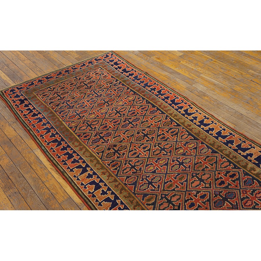 DescriptionCaucasianThis is the general heading for all rugs made in the Caucasus mountains and in the trans-Caucasus areas, north of the Arax River, and between the Black and Caspian Seas. This includes rugs from the Kazak, Karabagh, Gendje, Koghan, Talish, Akstafa, Shirvan, Baku, Kuba and hesghi districts and the variants and subtypes thereof. The rugs are usually in scatter sizes and of all wool construction, with bold colors and geometric patterns, from the 18th through 20th centuries. Prices range widely depending on rarity, color, design and condition. A strong collector market exists for the better examples. CaucasianThis is the general heading for all rugs made in the Caucasus mountains and in the trans-Caucasus areas, north of the Arax River, and between the Black and Caspian Seas. This includes rugs from the Kazak, Karabagh, Gendje, Koghan, Talish, Akstafa, Shirvan, Baku, Kuba and hesghi districts and the variants and subtypes thereof. The rugs are usually in scatter sizes and of all wool construction, with bold colors and geometric patterns, from the 18th through 20th centuries. Prices range widely depending on rarity, color, design and condition. A strong collector market exists for the better examples. | |