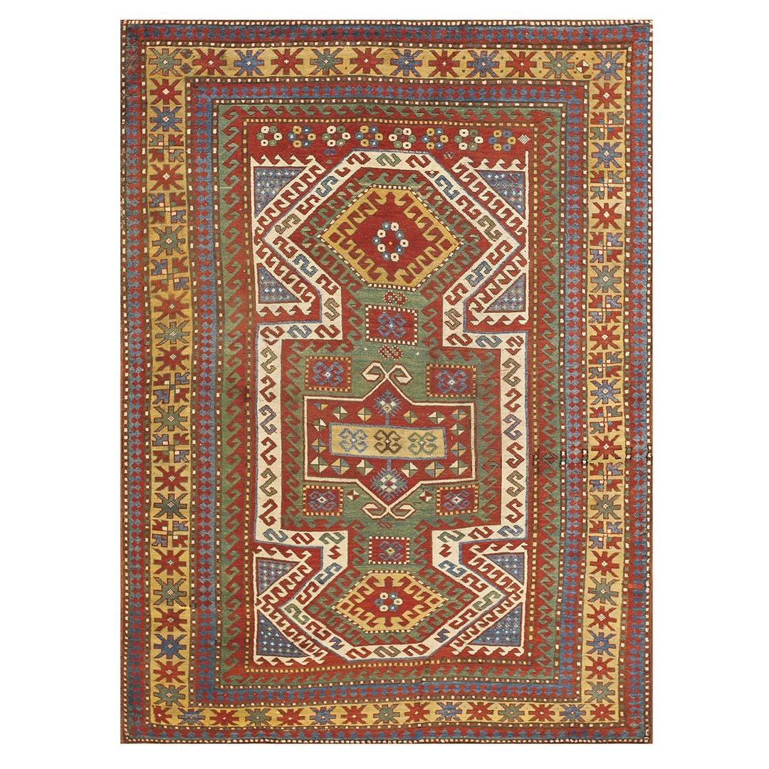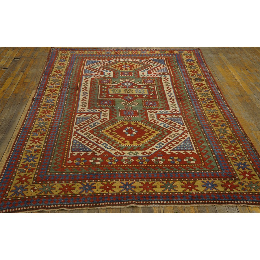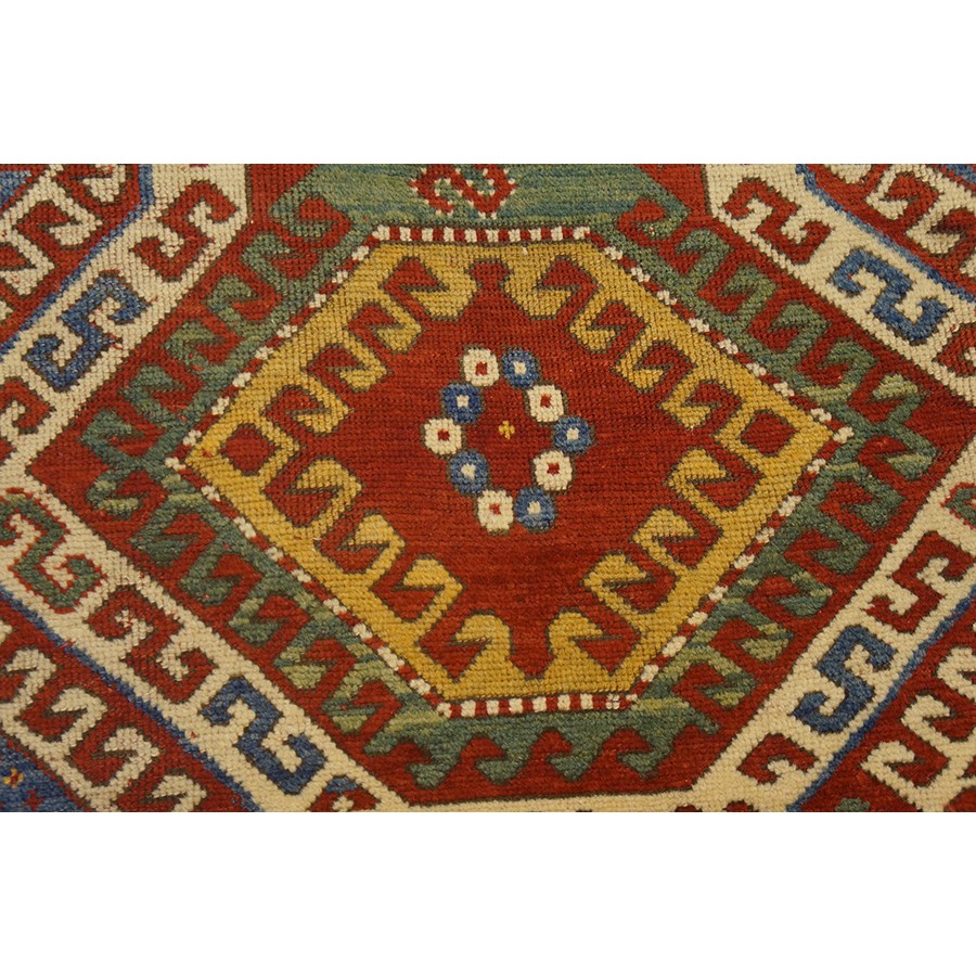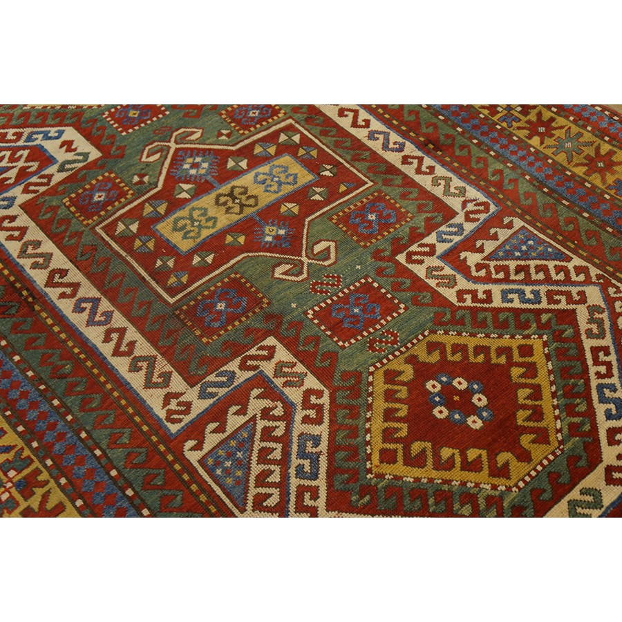 DescriptionCaucasianThis is the general heading for all rugs made in the Caucasus mountains and in the trans-Caucasus areas, north of the Arax River, and between the Black and Caspian Seas. This includes rugs from the Kazak, Karabagh, Gendje, Koghan, Talish, Akstafa, Shirvan, Baku, Kuba and hesghi districts and the variants and subtypes thereof. The rugs are usually in scatter sizes and of all wool construction, with bold colors and geometric patterns, from the 18th through 20th centuries. Prices range widely depending on rarity, color, design and condition. A strong collector market exists for the better examples. CaucasianThis is the general heading for all rugs made in the Caucasus mountains and in the trans-Caucasus areas, north of the Arax River, and between the Black and Caspian Seas. This includes rugs from the Kazak, Karabagh, Gendje, Koghan, Talish, Akstafa, Shirvan, Baku, Kuba and hesghi districts and the variants and subtypes thereof. The rugs are usually in scatter sizes and of all wool construction, with bold colors and geometric patterns, from the 18th through 20th centuries. Prices range widely depending on rarity, color, design and condition. A strong collector market exists for the better examples. | |