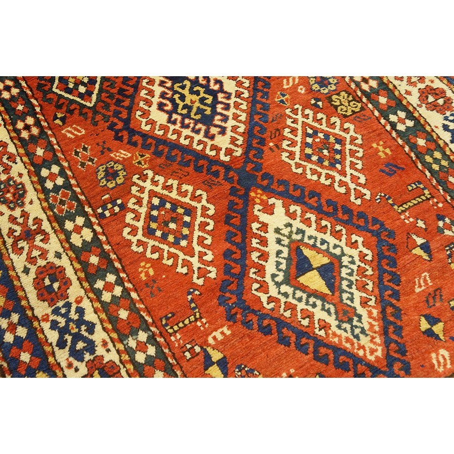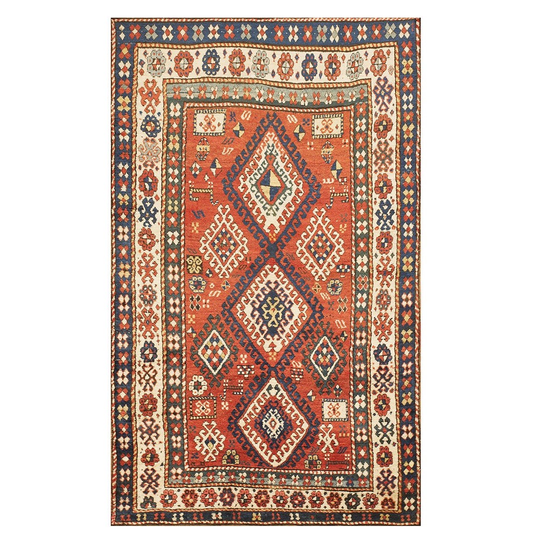 DescriptionCaucasianThis is the general heading for all rugs made in the Caucasus mountains and in the trans-Caucasus areas, north of the Arax River, and between the Black and Caspian Seas. This includes rugs from the Kazak, Karabagh, Gendje, Koghan, Talish, Akstafa, Shirvan, Baku, Kuba and hesghi districts and the variants and subtypes thereof. The rugs are usually in scatter sizes and of all wool construction, with bold colors and geometric patterns, from the 18th through 20th centuries. Prices range widely depending on rarity, color, design and condition. A strong collector market exists for the better examples. CaucasianThis is the general heading for all rugs made in the Caucasus mountains and in the trans-Caucasus areas, north of the Arax River, and between the Black and Caspian Seas. This includes rugs from the Kazak, Karabagh, Gendje, Koghan, Talish, Akstafa, Shirvan, Baku, Kuba and hesghi districts and the variants and subtypes thereof. The rugs are usually in scatter sizes and of all wool construction, with bold colors and geometric patterns, from the 18th through 20th centuries. Prices range widely depending on rarity, color, design and condition. A strong collector market exists for the better examples. | |