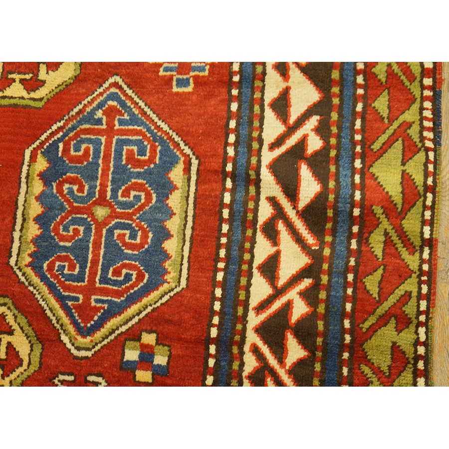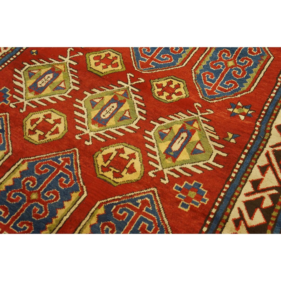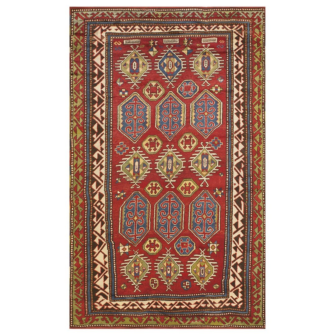 DescriptionCaucasianThis is the general heading for all rugs made in the Caucasus mountains and in the trans-Caucasus areas, north of the Arax River, and between the Black and Caspian Seas. This includes rugs from the Kazak, Karabagh, Gendje, Koghan, Talish, Akstafa, Shirvan, Baku, Kuba and hesghi districts and the variants and subtypes thereof. The rugs are usually in scatter sizes and of all wool construction, with bold colors and geometric patterns, from the 18th through 20th centuries. Prices range widely depending on rarity, color, design and condition. A strong collector market exists for the better examples. CaucasianThis is the general heading for all rugs made in the Caucasus mountains and in the trans-Caucasus areas, north of the Arax River, and between the Black and Caspian Seas. This includes rugs from the Kazak, Karabagh, Gendje, Koghan, Talish, Akstafa, Shirvan, Baku, Kuba and hesghi districts and the variants and subtypes thereof. The rugs are usually in scatter sizes and of all wool construction, with bold colors and geometric patterns, from the 18th through 20th centuries. Prices range widely depending on rarity, color, design and condition. A strong collector market exists for the better examples. | |
