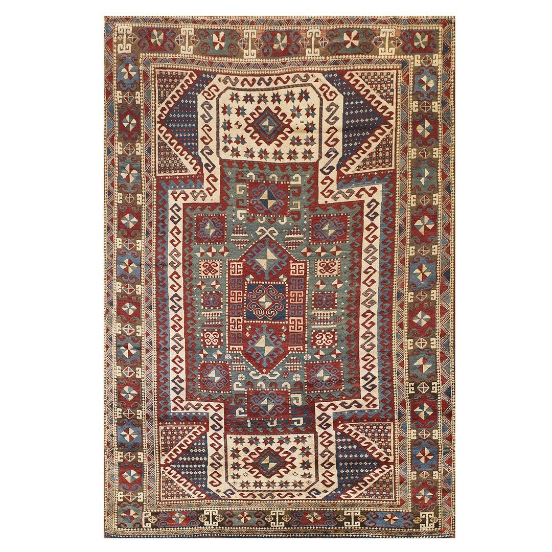 DescriptionCaucasianThis is the general heading for all rugs made in the Caucasus mountains and in the trans-Caucasus areas, north of the Arax River, and between the Black and Caspian Seas. This includes rugs from the Kazak, Karabagh, Gendje, Koghan, Talish, Akstafa, Shirvan, Baku, Kuba and hesghi districts and the variants and subtypes thereof. The rugs are usually in scatter sizes and of all wool construction, with bold colors and geometric patterns, from the 18th through 20th centuries. Prices range widely depending on rarity, color, design and condition. A strong collector market exists for the better examples. CaucasianThis is the general heading for all rugs made in the Caucasus mountains and in the trans-Caucasus areas, north of the Arax River, and between the Black and Caspian Seas. This includes rugs from the Kazak, Karabagh, Gendje, Koghan, Talish, Akstafa, Shirvan, Baku, Kuba and hesghi districts and the variants and subtypes thereof. The rugs are usually in scatter sizes and of all wool construction, with bold colors and geometric patterns, from the 18th through 20th centuries. Prices range widely depending on rarity, color, design and condition. A strong collector market exists for the better examples. | |