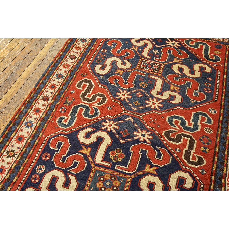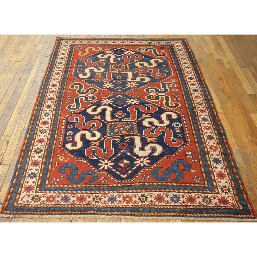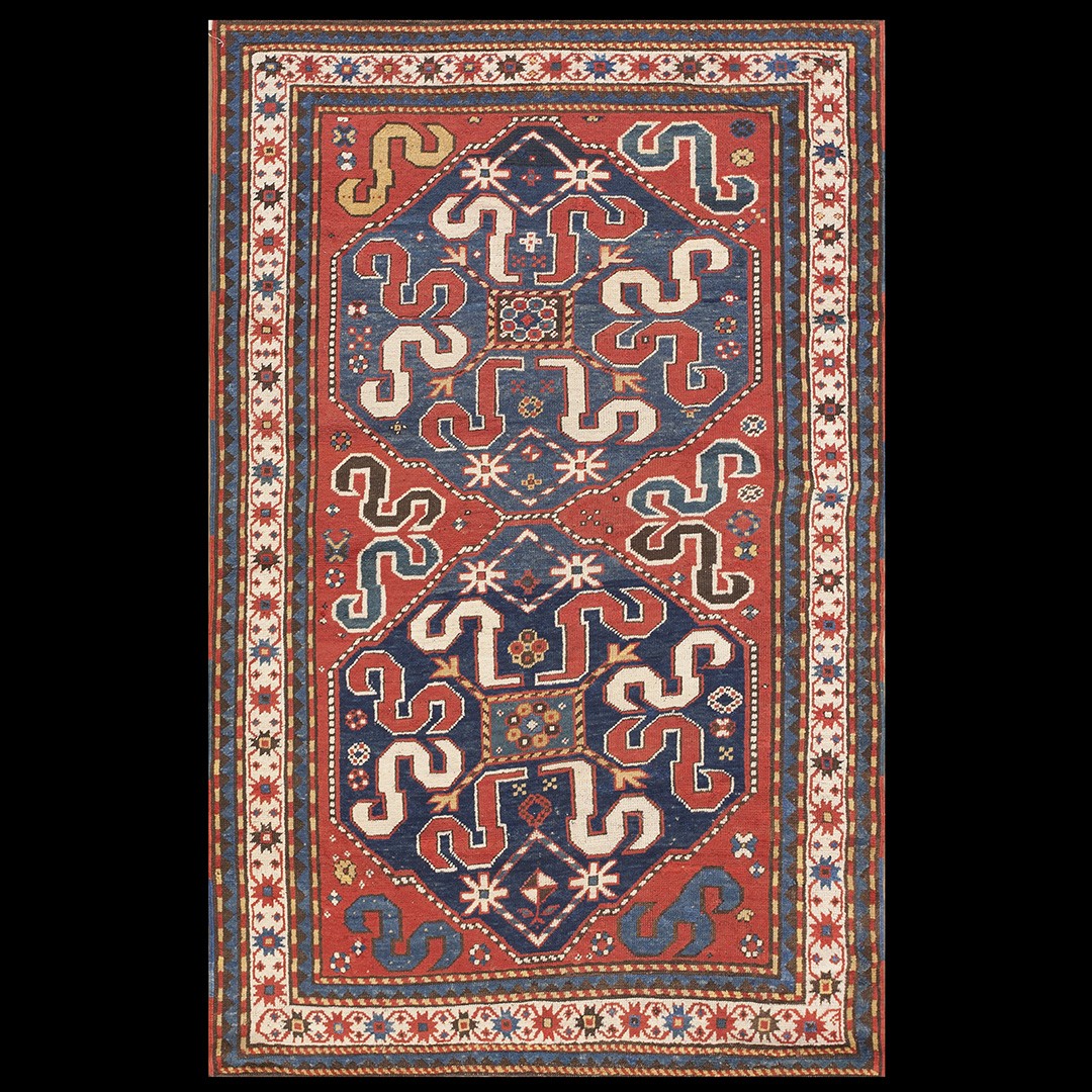 DescriptionCaucasianThis is the general heading for all rugs made in the Caucasus mountains and in the trans-Caucasus areas, north of the Arax River, and between the Black and Caspian Seas. This includes rugs from the Kazak, Karabagh, Gendje, Koghan, Talish, Akstafa, Shirvan, Baku, Kuba and hesghi districts and the variants and subtypes thereof. The rugs are usually in scatter sizes and of all wool construction, with bold colors and geometric patterns, from the 18th through 20th centuries. Prices range widely depending on rarity, color, design and condition. A strong collector market exists for the better examples. CaucasianThis is the general heading for all rugs made in the Caucasus mountains and in the trans-Caucasus areas, north of the Arax River, and between the Black and Caspian Seas. This includes rugs from the Kazak, Karabagh, Gendje, Koghan, Talish, Akstafa, Shirvan, Baku, Kuba and hesghi districts and the variants and subtypes thereof. The rugs are usually in scatter sizes and of all wool construction, with bold colors and geometric patterns, from the 18th through 20th centuries. Prices range widely depending on rarity, color, design and condition. A strong collector market exists for the better examples. | |