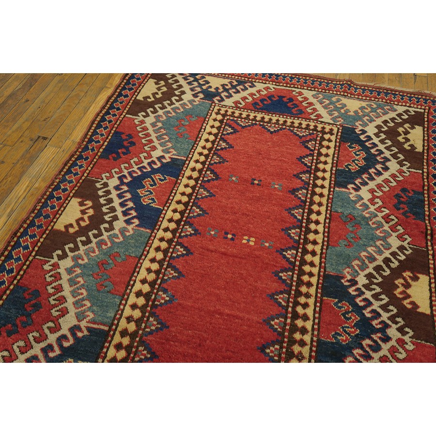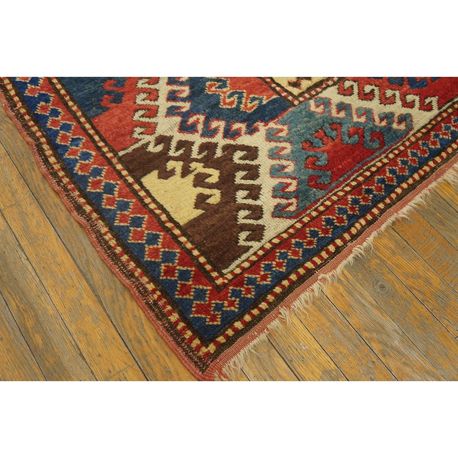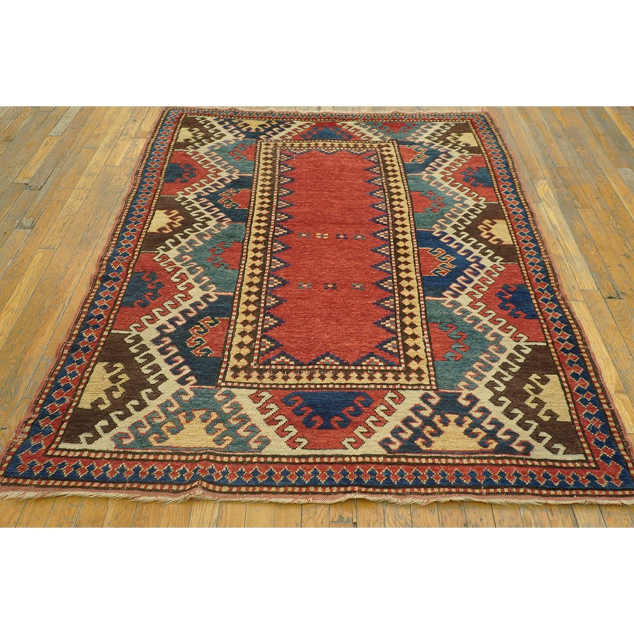 DescriptionCaucasianThis is the general heading for all rugs made in the Caucasus mountains and in the trans-Caucasus areas, north of the Arax River, and between the Black and Caspian Seas. This includes rugs from the Kazak, Karabagh, Gendje, Koghan, Talish, Akstafa, Shirvan, Baku, Kuba and hesghi districts and the variants and subtypes thereof. The rugs are usually in scatter sizes and of all wool construction, with bold colors and geometric patterns, from the 18th through 20th centuries. Prices range widely depending on rarity, color, design and condition. A strong collector market exists for the better examples. CaucasianThis is the general heading for all rugs made in the Caucasus mountains and in the trans-Caucasus areas, north of the Arax River, and between the Black and Caspian Seas. This includes rugs from the Kazak, Karabagh, Gendje, Koghan, Talish, Akstafa, Shirvan, Baku, Kuba and hesghi districts and the variants and subtypes thereof. The rugs are usually in scatter sizes and of all wool construction, with bold colors and geometric patterns, from the 18th through 20th centuries. Prices range widely depending on rarity, color, design and condition. A strong collector market exists for the better examples. | |
