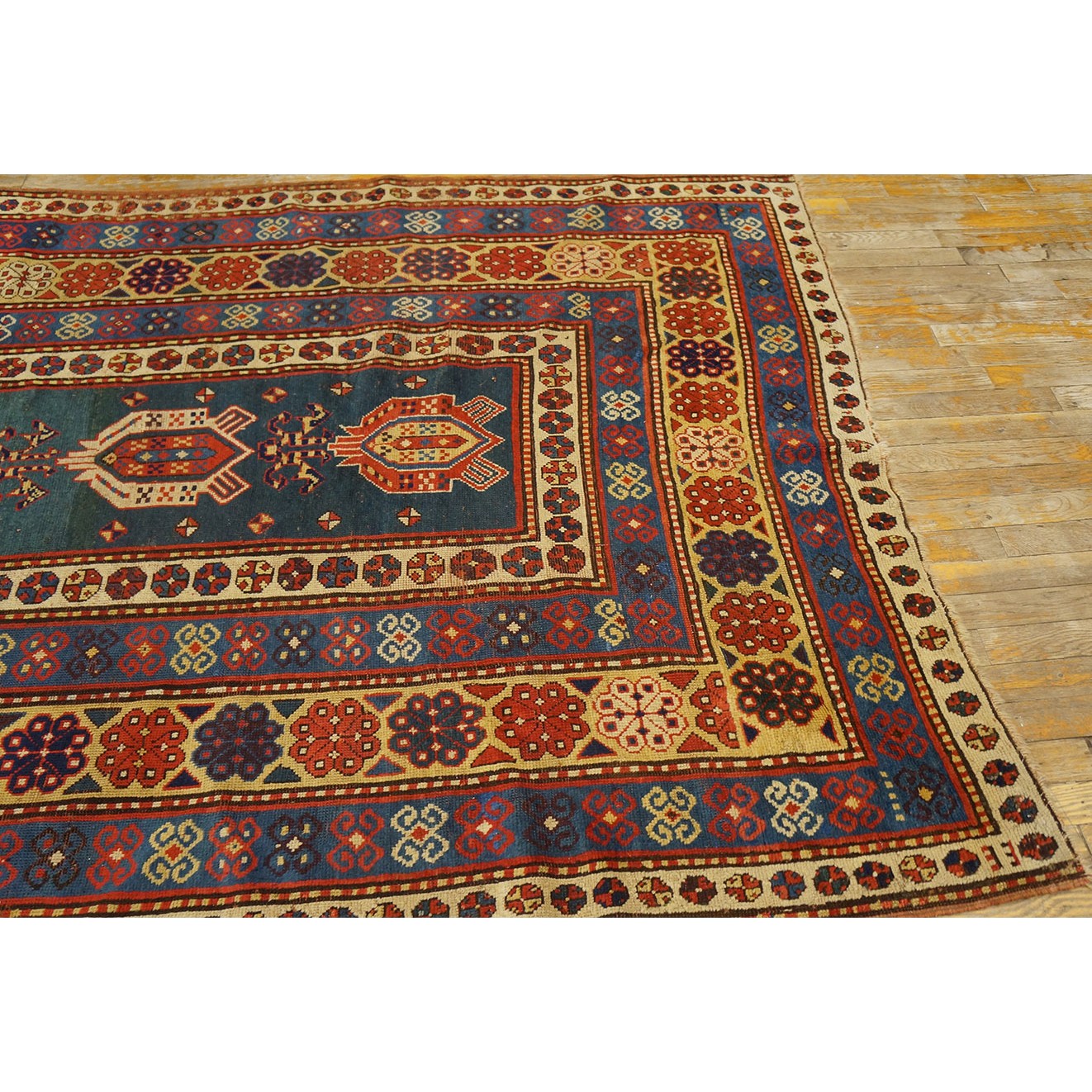 DescriptionCaucasianThis is the general heading for all rugs made in the Caucasus mountains and in the trans-Caucasus areas, north of the Arax River, and between the Black and Caspian Seas. This includes rugs from the Kazak, Karabagh, Gendje, Koghan, Talish, Akstafa, Shirvan, Baku, Kuba and hesghi districts and the variants and subtypes thereof. The rugs are usually in scatter sizes and of all wool construction, with bold colors and geometric patterns, from the 18th through 20th centuries. Prices range widely depending on rarity, color, design and condition. A strong collector market exists for the better examples. CaucasianThis is the general heading for all rugs made in the Caucasus mountains and in the trans-Caucasus areas, north of the Arax River, and between the Black and Caspian Seas. This includes rugs from the Kazak, Karabagh, Gendje, Koghan, Talish, Akstafa, Shirvan, Baku, Kuba and hesghi districts and the variants and subtypes thereof. The rugs are usually in scatter sizes and of all wool construction, with bold colors and geometric patterns, from the 18th through 20th centuries. Prices range widely depending on rarity, color, design and condition. A strong collector market exists for the better examples. | |