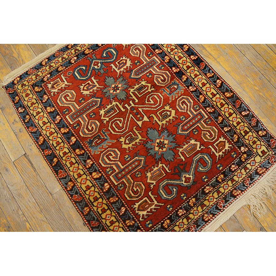DescriptionCaucasianThis is the general heading for all rugs made in the Caucasus mountains and in the trans-Caucasus areas, north of the Arax River, and between the Black and Caspian Seas. This includes rugs from the Kazak, Karabagh, Gendje, Koghan, Talish, Akstafa, Shirvan, Baku, Kuba and hesghi districts and the variants and subtypes thereof. The rugs are usually in scatter sizes and of all wool construction, with bold colors and geometric patterns, from the 18th through 20th centuries. Prices range widely depending on rarity, color, design and condition. A strong collector market exists for the better examples. CaucasianThis is the general heading for all rugs made in the Caucasus mountains and in the trans-Caucasus areas, north of the Arax River, and between the Black and Caspian Seas. This includes rugs from the Kazak, Karabagh, Gendje, Koghan, Talish, Akstafa, Shirvan, Baku, Kuba and hesghi districts and the variants and subtypes thereof. The rugs are usually in scatter sizes and of all wool construction, with bold colors and geometric patterns, from the 18th through 20th centuries. Prices range widely depending on rarity, color, design and condition. A strong collector market exists for the better examples. | |