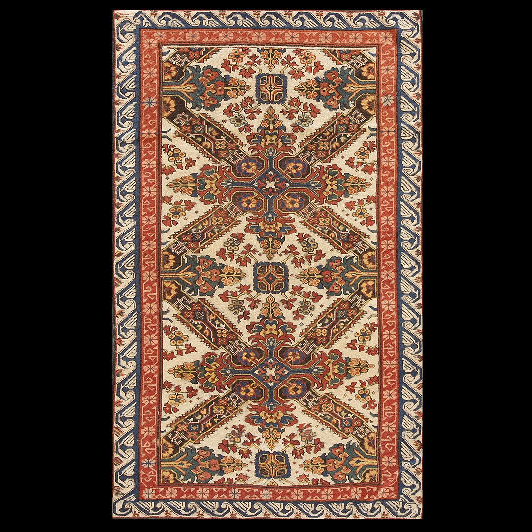 DescriptionCaucasianThis is the general heading for all rugs made in the Caucasus mountains and in the trans-Caucasus areas, north of the Arax River, and between the Black and Caspian Seas. This includes rugs from the Kazak, Karabagh, Gendje, Koghan, Talish, Akstafa, Shirvan, Baku, Kuba and hesghi districts and the variants and subtypes thereof. The rugs are usually in scatter sizes and of all wool construction, with bold colors and geometric patterns, from the 18th through 20th centuries. Prices range widely depending on rarity, color, design and condition. A strong collector market exists for the better examples. CaucasianThis is the general heading for all rugs made in the Caucasus mountains and in the trans-Caucasus areas, north of the Arax River, and between the Black and Caspian Seas. This includes rugs from the Kazak, Karabagh, Gendje, Koghan, Talish, Akstafa, Shirvan, Baku, Kuba and hesghi districts and the variants and subtypes thereof. The rugs are usually in scatter sizes and of all wool construction, with bold colors and geometric patterns, from the 18th through 20th centuries. Prices range widely depending on rarity, color, design and condition. A strong collector market exists for the better examples. | |