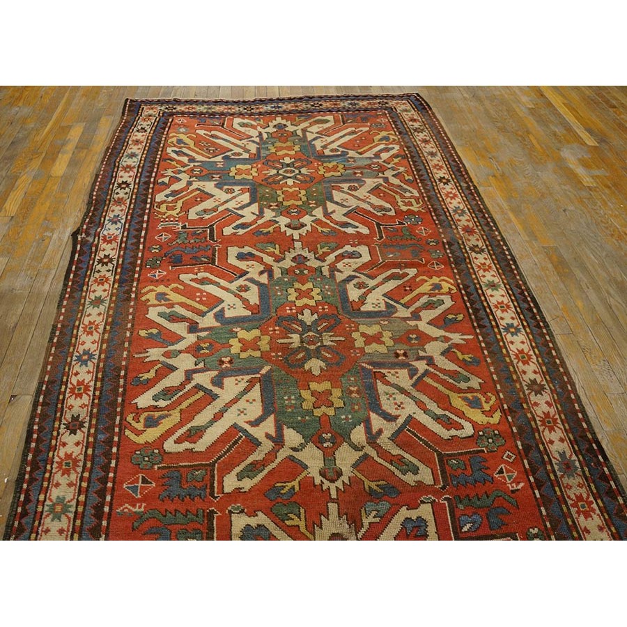 DescriptionCaucasianThis is the general heading for all rugs made in the Caucasus mountains and in the trans-Caucasus areas, north of the Arax River, and between the Black and Caspian Seas. This includes rugs from the Kazak, Karabagh, Gendje, Koghan, Talish, Akstafa, Shirvan, Baku, Kuba and hesghi districts and the variants and subtypes thereof. The rugs are usually in scatter sizes and of all wool construction, with bold colors and geometric patterns, from the 18th through 20th centuries. Prices range widely depending on rarity, color, design and condition. A strong collector market exists for the better examples. CaucasianThis is the general heading for all rugs made in the Caucasus mountains and in the trans-Caucasus areas, north of the Arax River, and between the Black and Caspian Seas. This includes rugs from the Kazak, Karabagh, Gendje, Koghan, Talish, Akstafa, Shirvan, Baku, Kuba and hesghi districts and the variants and subtypes thereof. The rugs are usually in scatter sizes and of all wool construction, with bold colors and geometric patterns, from the 18th through 20th centuries. Prices range widely depending on rarity, color, design and condition. A strong collector market exists for the better examples. | |