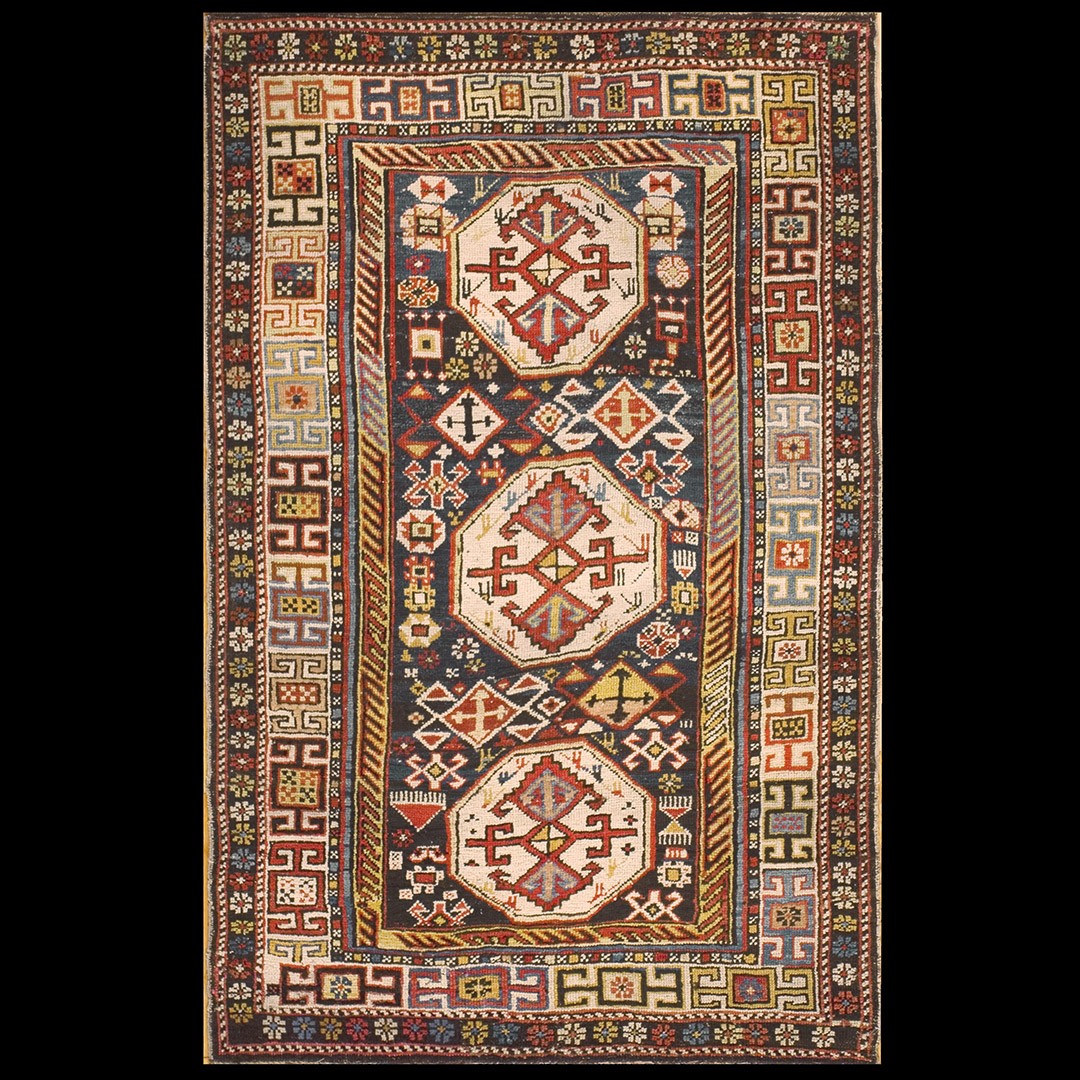 DescriptionCaucasianThis is the general heading for all rugs made in the Caucasus mountains and in the trans-Caucasus areas, north of the Arax River, and between the Black and Caspian Seas. This includes rugs from the Kazak, Karabagh, Gendje, Koghan, Talish, Akstafa, Shirvan, Baku, Kuba and hesghi districts and the variants and subtypes thereof. The rugs are usually in scatter sizes and of all wool construction, with bold colors and geometric patterns, from the 18th through 20th centuries. Prices range widely depending on rarity, color, design and condition. A strong collector market exists for the better examples. CaucasianThis is the general heading for all rugs made in the Caucasus mountains and in the trans-Caucasus areas, north of the Arax River, and between the Black and Caspian Seas. This includes rugs from the Kazak, Karabagh, Gendje, Koghan, Talish, Akstafa, Shirvan, Baku, Kuba and hesghi districts and the variants and subtypes thereof. The rugs are usually in scatter sizes and of all wool construction, with bold colors and geometric patterns, from the 18th through 20th centuries. Prices range widely depending on rarity, color, design and condition. A strong collector market exists for the better examples. | |