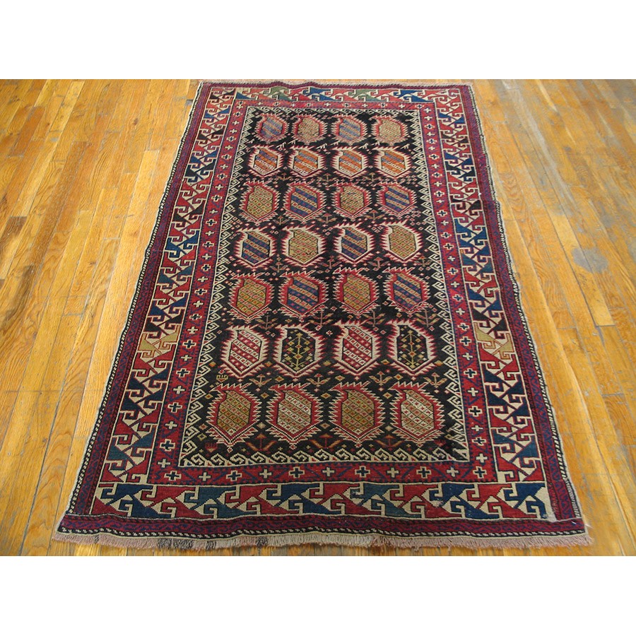 DescriptionCaucasianThis is the general heading for all rugs made in the Caucasus mountains and in the trans-Caucasus areas, north of the Arax River, and between the Black and Caspian Seas. This includes rugs from the Kazak, Karabagh, Gendje, Koghan, Talish, Akstafa, Shirvan, Baku, Kuba and hesghi districts and the variants and subtypes thereof. The rugs are usually in scatter sizes and of all wool construction, with bold colors and geometric patterns, from the 18th through 20th centuries. Prices range widely depending on rarity, color, design and condition. A strong collector market exists for the better examples. CaucasianThis is the general heading for all rugs made in the Caucasus mountains and in the trans-Caucasus areas, north of the Arax River, and between the Black and Caspian Seas. This includes rugs from the Kazak, Karabagh, Gendje, Koghan, Talish, Akstafa, Shirvan, Baku, Kuba and hesghi districts and the variants and subtypes thereof. The rugs are usually in scatter sizes and of all wool construction, with bold colors and geometric patterns, from the 18th through 20th centuries. Prices range widely depending on rarity, color, design and condition. A strong collector market exists for the better examples. | |