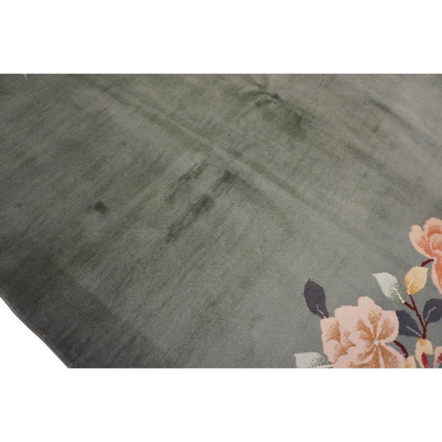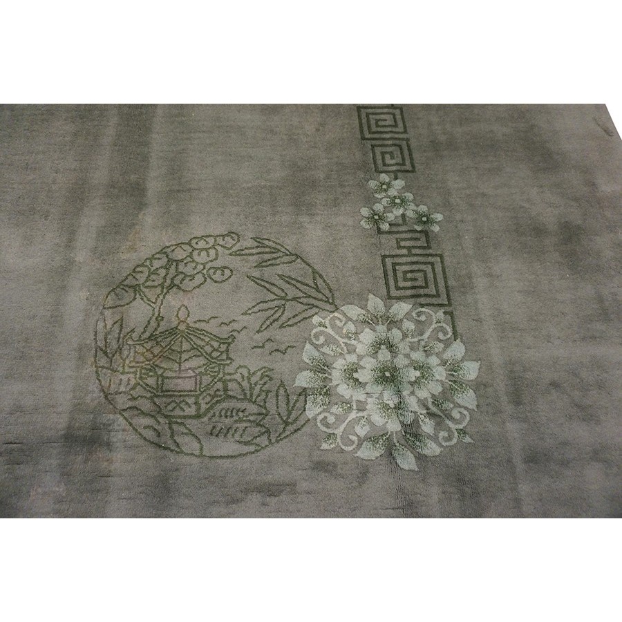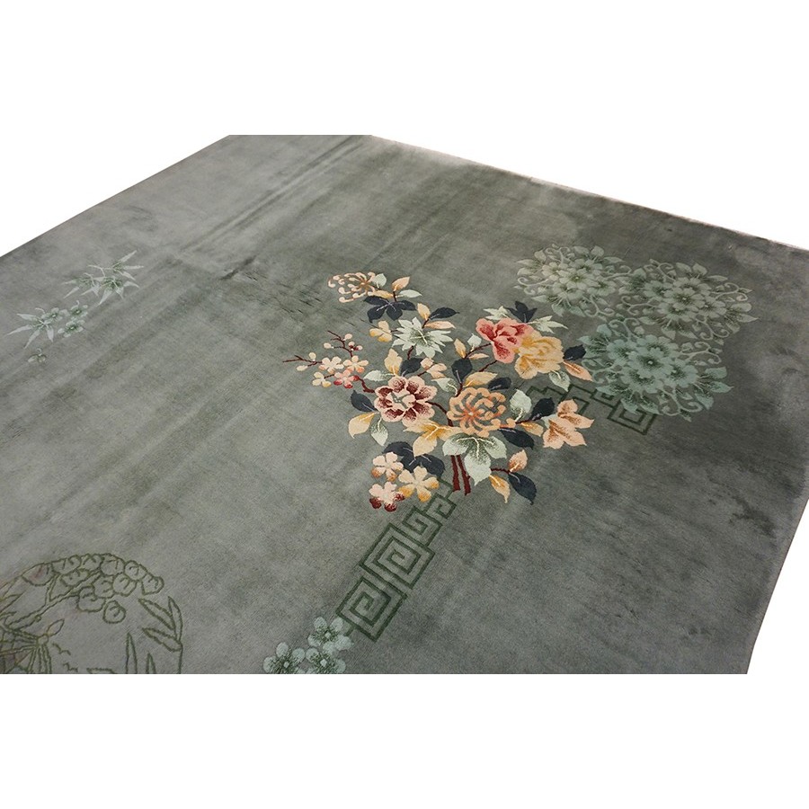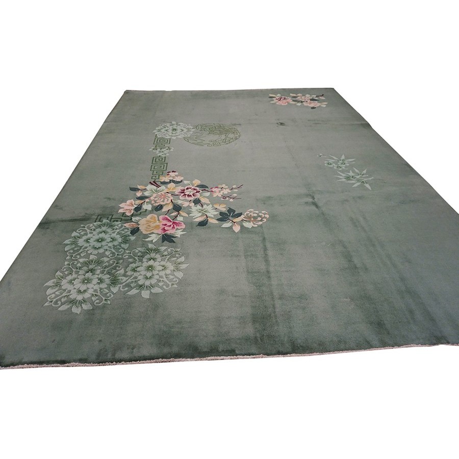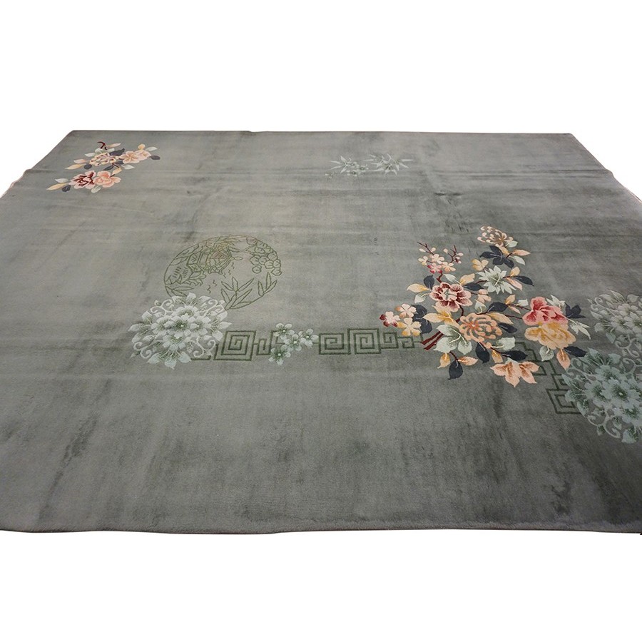 DescriptionChineseCarpets made in China proper. See entries Ningshia, Peking, Art Deco. Chinese - Art DecoAs the name implies, pieces woven between the wars for the Western market by mostly American owned firms especially Nichols and Fette, in thick heavy weaves using strong colors, asymmetric patterns and downplaying the Chinese-ness of the carpet. Nichols rugs are more strong toned than the pastel Fette. Most were woven in the coastal port city of Tientsin. Other lesser known workshops were also active. Some pieces are ultra-geometric and haute-Deco moderne in character: these are very rare. More frequent are pieces with bits of Chinese ornament: vases or other precious objects, paeonies, vines, fences, etc. Most common is the 9 x 12 size, in colors never found in mainstream Chinese rugs: backgrounds in black, mauve, purple, hot pink, orange, olive, employing the best synthetic chrome dyes of the period. Prices are still reasonable and carpets in top condition are available. | |