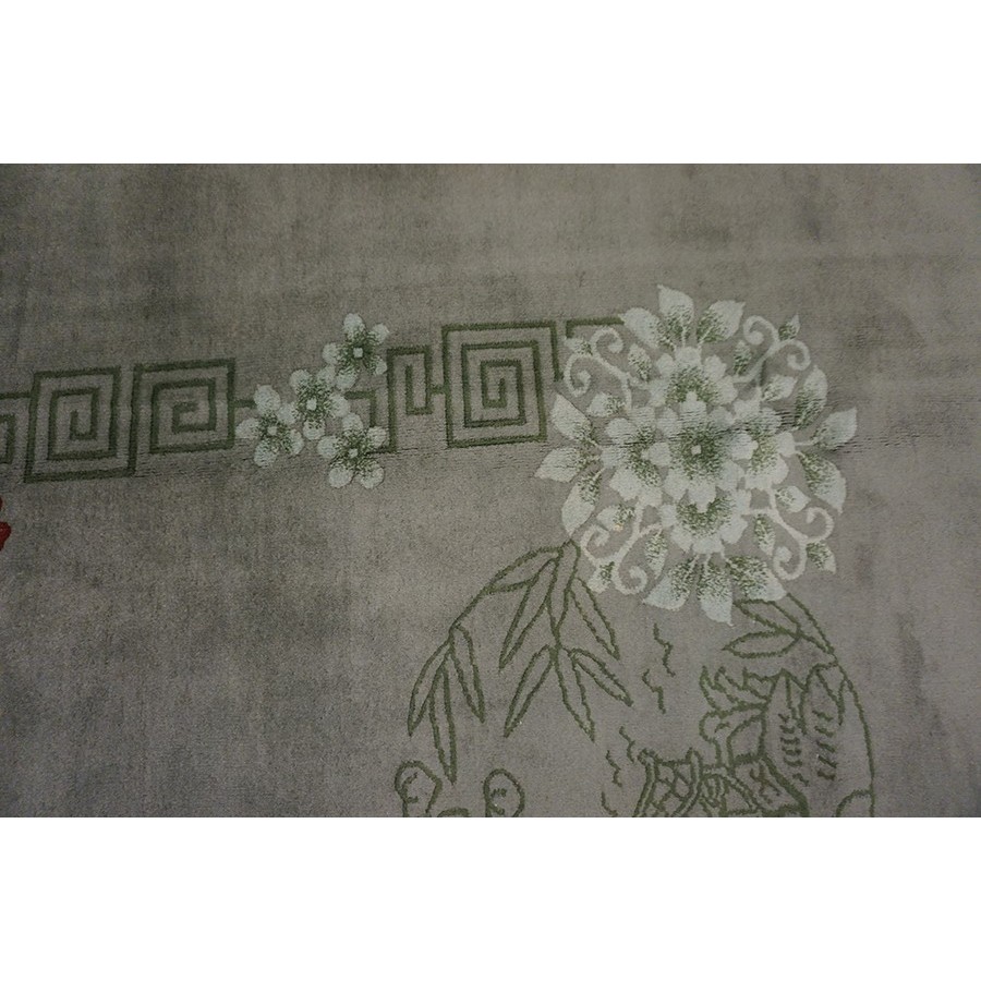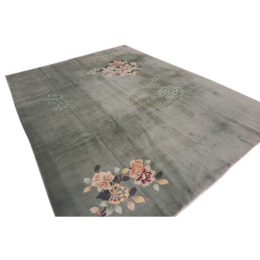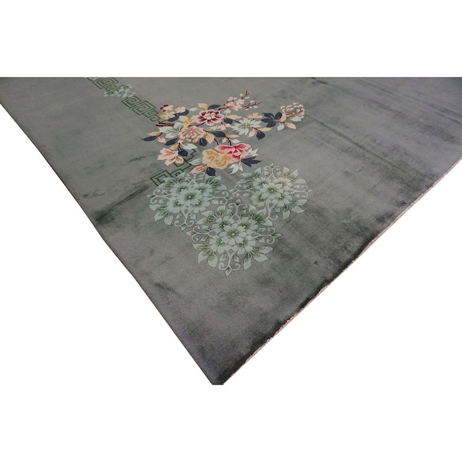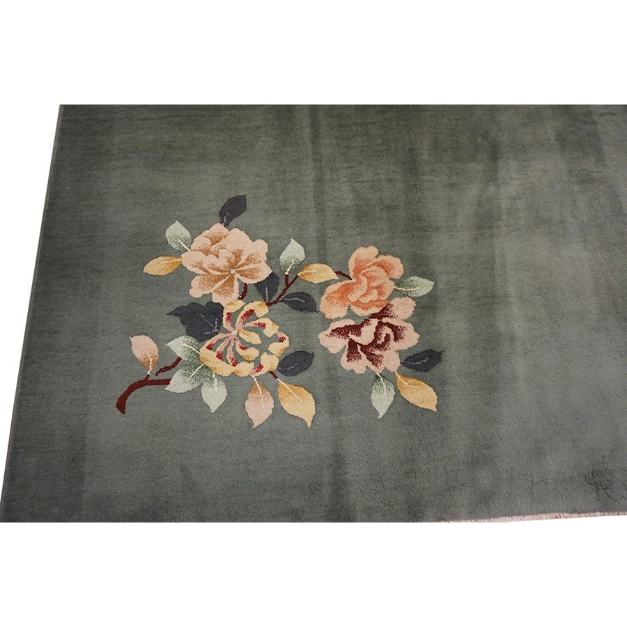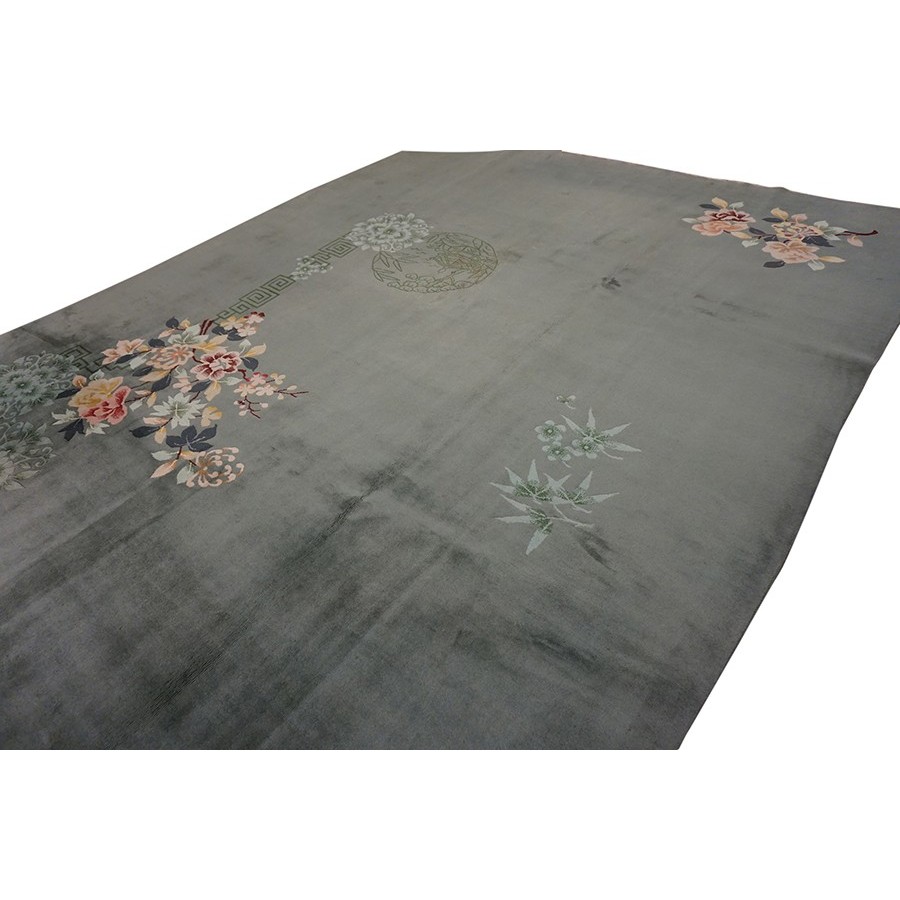 DescriptionChineseCarpets made in China proper. See entries Ningshia, Peking, Art Deco. Chinese - Art DecoAs the name implies, pieces woven between the wars for the Western market by mostly American owned firms especially Nichols and Fette, in thick heavy weaves using strong colors, asymmetric patterns and downplaying the Chinese-ness of the carpet. Nichols rugs are more strong toned than the pastel Fette. Most were woven in the coastal port city of Tientsin. Other lesser known workshops were also active. Some pieces are ultra-geometric and haute-Deco moderne in character: these are very rare. More frequent are pieces with bits of Chinese ornament: vases or other precious objects, paeonies, vines, fences, etc. Most common is the 9 x 12 size, in colors never found in mainstream Chinese rugs: backgrounds in black, mauve, purple, hot pink, orange, olive, employing the best synthetic chrome dyes of the period. Prices are still reasonable and carpets in top condition are available. | |
