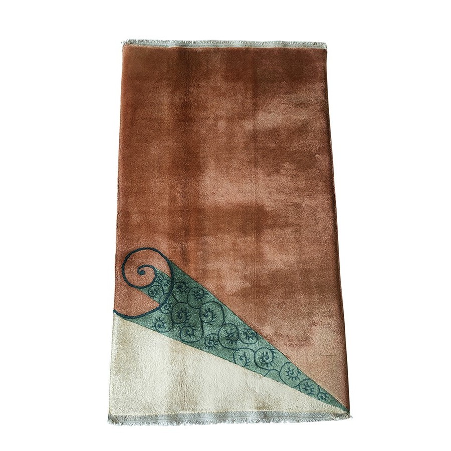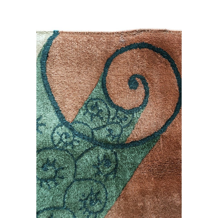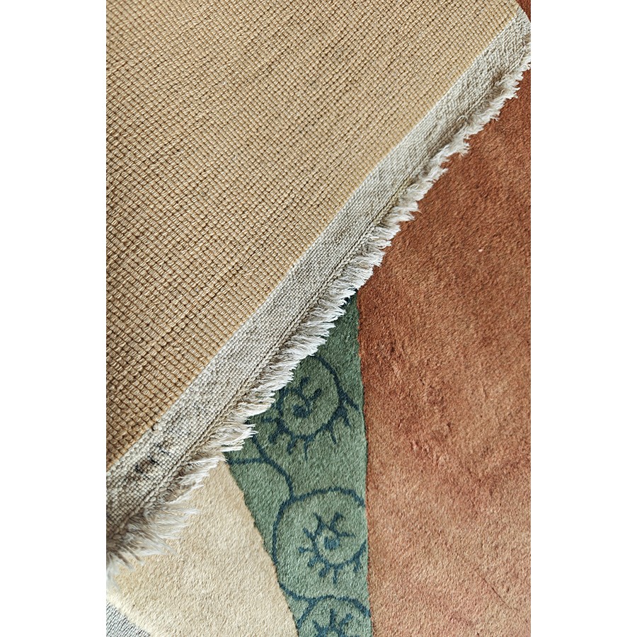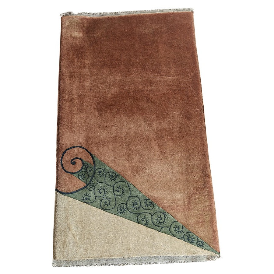 DescriptionChineseCarpets made in China proper. See entries Ningshia, Peking, Art Deco. Chinese - Art DecoAs the name implies, pieces woven between the wars for the Western market by mostly American owned firms especially Nichols and Fette, in thick heavy weaves using strong colors, asymmetric patterns and downplaying the Chinese-ness of the carpet. Nichols rugs are more strong toned than the pastel Fette. Most were woven in the coastal port city of Tientsin. Other lesser known workshops were also active. Some pieces are ultra-geometric and haute-Deco moderne in character: these are very rare. More frequent are pieces with bits of Chinese ornament: vases or other precious objects, paeonies, vines, fences, etc. Most common is the 9 x 12 size, in colors never found in mainstream Chinese rugs: backgrounds in black, mauve, purple, hot pink, orange, olive, employing the best synthetic chrome dyes of the period. Prices are still reasonable and carpets in top condition are available. | |