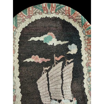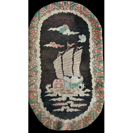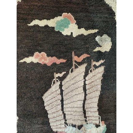 DescriptionChineseCarpets made in China proper. See entries Ningshia, Peking, Art Deco. Chinese - Art DecoAs the name implies, pieces woven between the wars for the Western market by mostly American owned firms especially Nichols and Fette, in thick heavy weaves using strong colors, asymmetric patterns and downplaying the Chinese-ness of the carpet. Nichols rugs are more strong toned than the pastel Fette. Most were woven in the coastal port city of Tientsin. Other lesser known workshops were also active. Some pieces are ultra-geometric and haute-Deco moderne in character: these are very rare. More frequent are pieces with bits of Chinese ornament: vases or other precious objects, paeonies, vines, fences, etc. Most common is the 9 x 12 size, in colors never found in mainstream Chinese rugs: backgrounds in black, mauve, purple, hot pink, orange, olive, employing the best synthetic chrome dyes of the period. Prices are still reasonable and carpets in top condition are available. | |