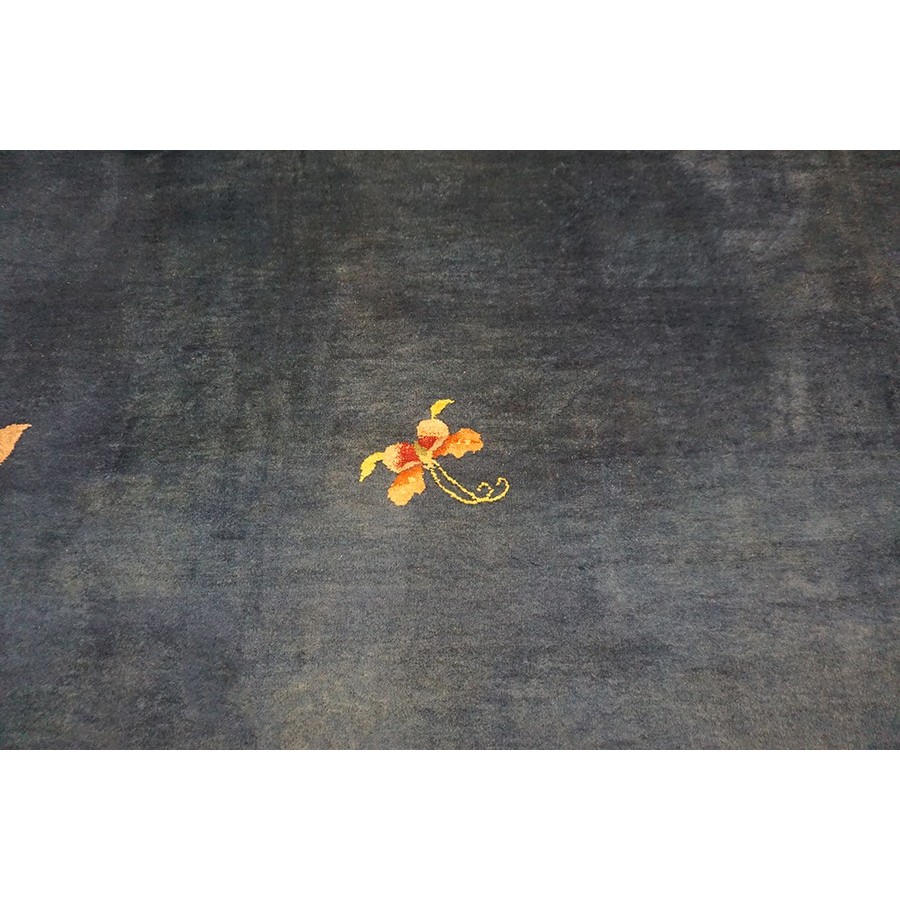 DescriptionChineseCarpets made in China proper. See entries Ningshia, Peking, Art Deco. Chinese - Art DecoAs the name implies, pieces woven between the wars for the Western market by mostly American owned firms especially Nichols and Fette, in thick heavy weaves using strong colors, asymmetric patterns and downplaying the Chinese-ness of the carpet. Nichols rugs are more strong toned than the pastel Fette. Most were woven in the coastal port city of Tientsin. Other lesser known workshops were also active. Some pieces are ultra-geometric and haute-Deco moderne in character: these are very rare. More frequent are pieces with bits of Chinese ornament: vases or other precious objects, paeonies, vines, fences, etc. Most common is the 9 x 12 size, in colors never found in mainstream Chinese rugs: backgrounds in black, mauve, purple, hot pink, orange, olive, employing the best synthetic chrome dyes of the period. Prices are still reasonable and carpets in top condition are available. | |