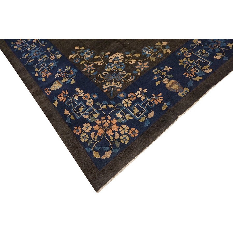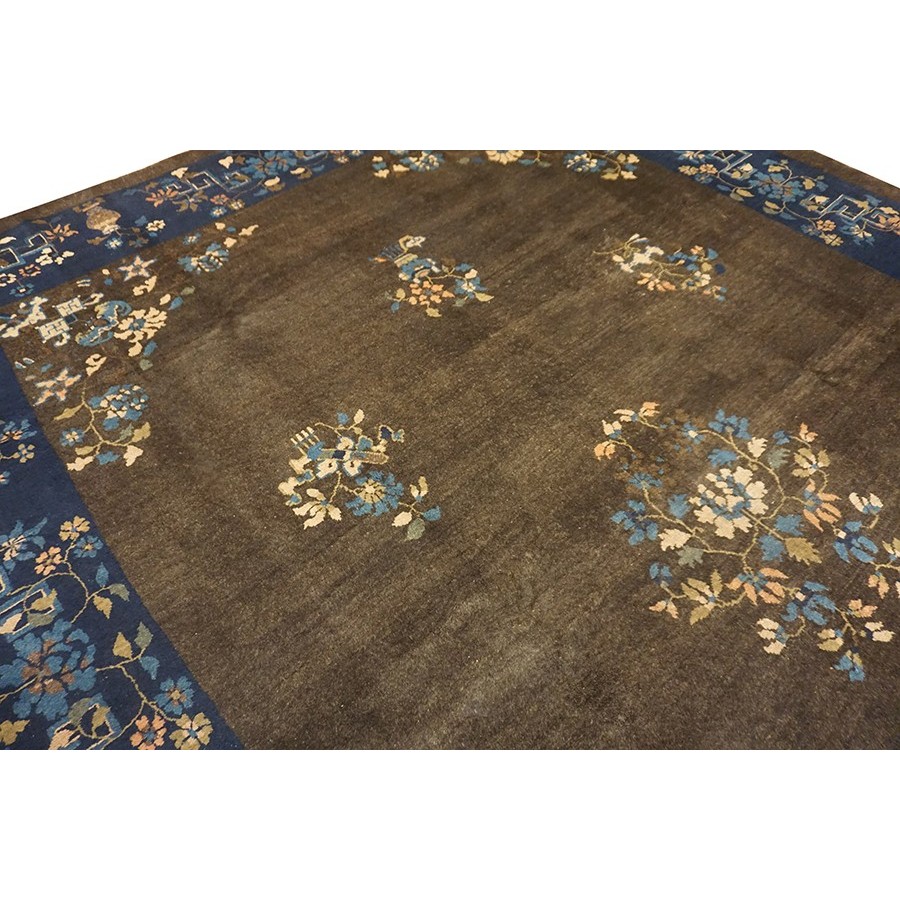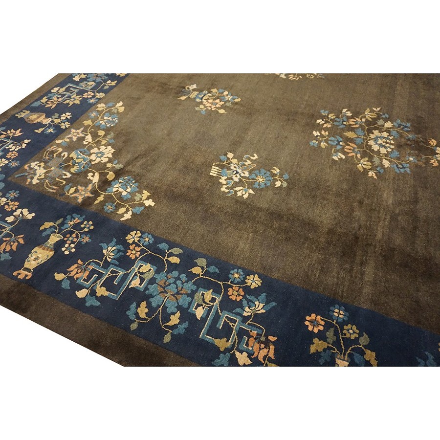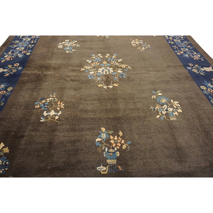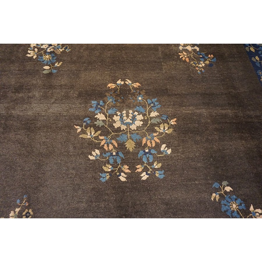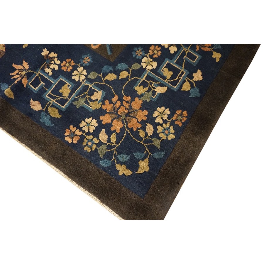 DescriptionChineseCarpets made in China proper. See entries Ningshia, Peking, Art Deco. Chinese - Art DecoAs the name implies, pieces woven between the wars for the Western market by mostly American owned firms especially Nichols and Fette, in thick heavy weaves using strong colors, asymmetric patterns and downplaying the Chinese-ness of the carpet. Nichols rugs are more strong toned than the pastel Fette. Most were woven in the coastal port city of Tientsin. Other lesser known workshops were also active. Some pieces are ultra-geometric and haute-Deco moderne in character: these are very rare. More frequent are pieces with bits of Chinese ornament: vases or other precious objects, paeonies, vines, fences, etc. Most common is the 9 x 12 size, in colors never found in mainstream Chinese rugs: backgrounds in black, mauve, purple, hot pink, orange, olive, employing the best synthetic chrome dyes of the period. Prices are still reasonable and carpets in top condition are available. | |