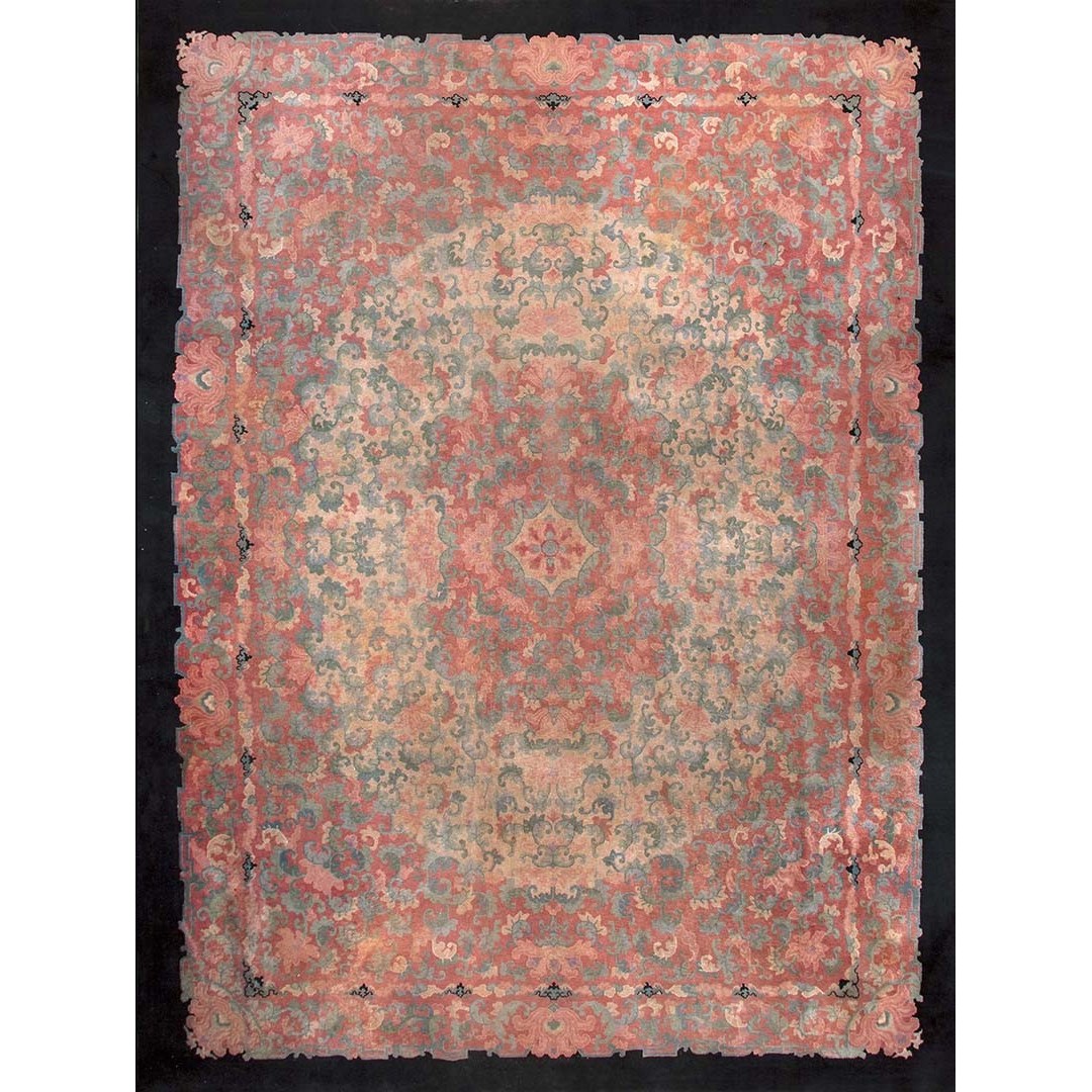 DescriptionChineseCarpets made in China proper. See entries Ningshia, Peking, Art Deco. Chinese - Art DecoAs the name implies, pieces woven between the wars for the Western market by mostly American owned firms especially Nichols and Fette, in thick heavy weaves using strong colors, asymmetric patterns and downplaying the Chinese-ness of the carpet. Nichols rugs are more strong toned than the pastel Fette. Most were woven in the coastal port city of Tientsin. Other lesser known workshops were also active. Some pieces are ultra-geometric and haute-Deco moderne in character: these are very rare. More frequent are pieces with bits of Chinese ornament: vases or other precious objects, paeonies, vines, fences, etc. Most common is the 9 x 12 size, in colors never found in mainstream Chinese rugs: backgrounds in black, mauve, purple, hot pink, orange, olive, employing the best synthetic chrome dyes of the period. Prices are still reasonable and carpets in top condition are available. | |