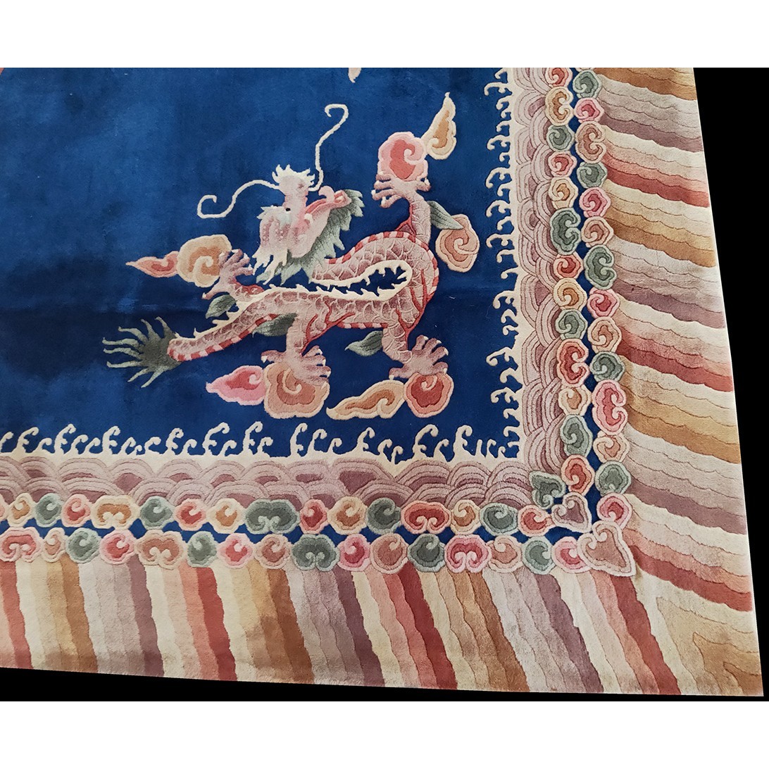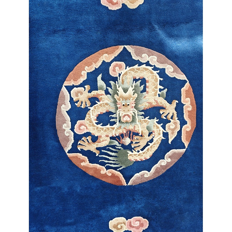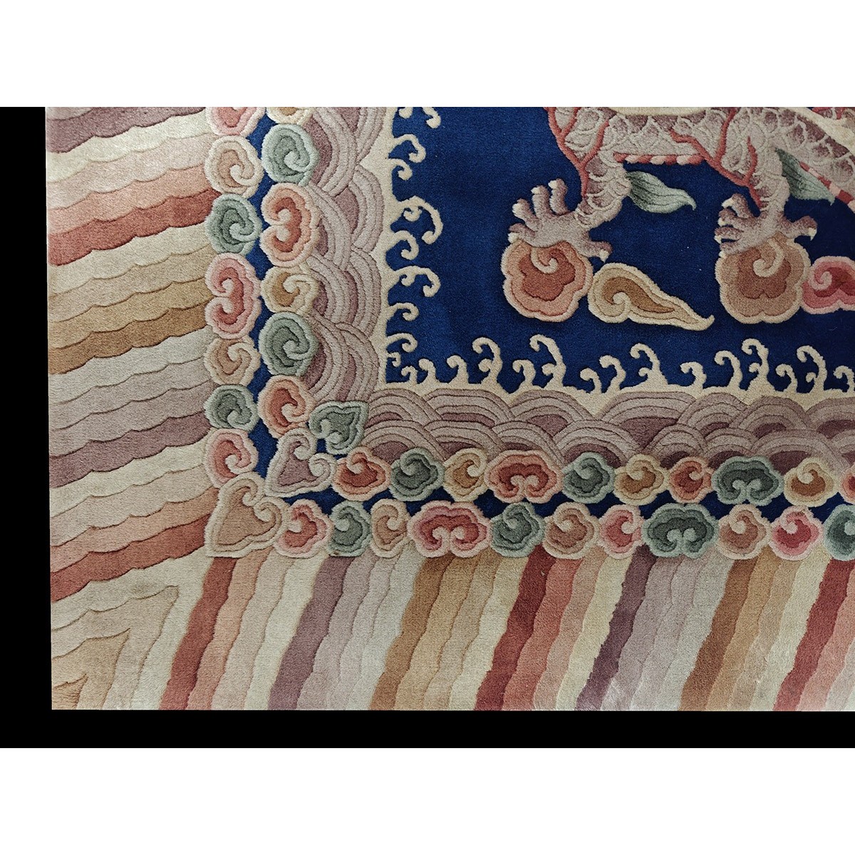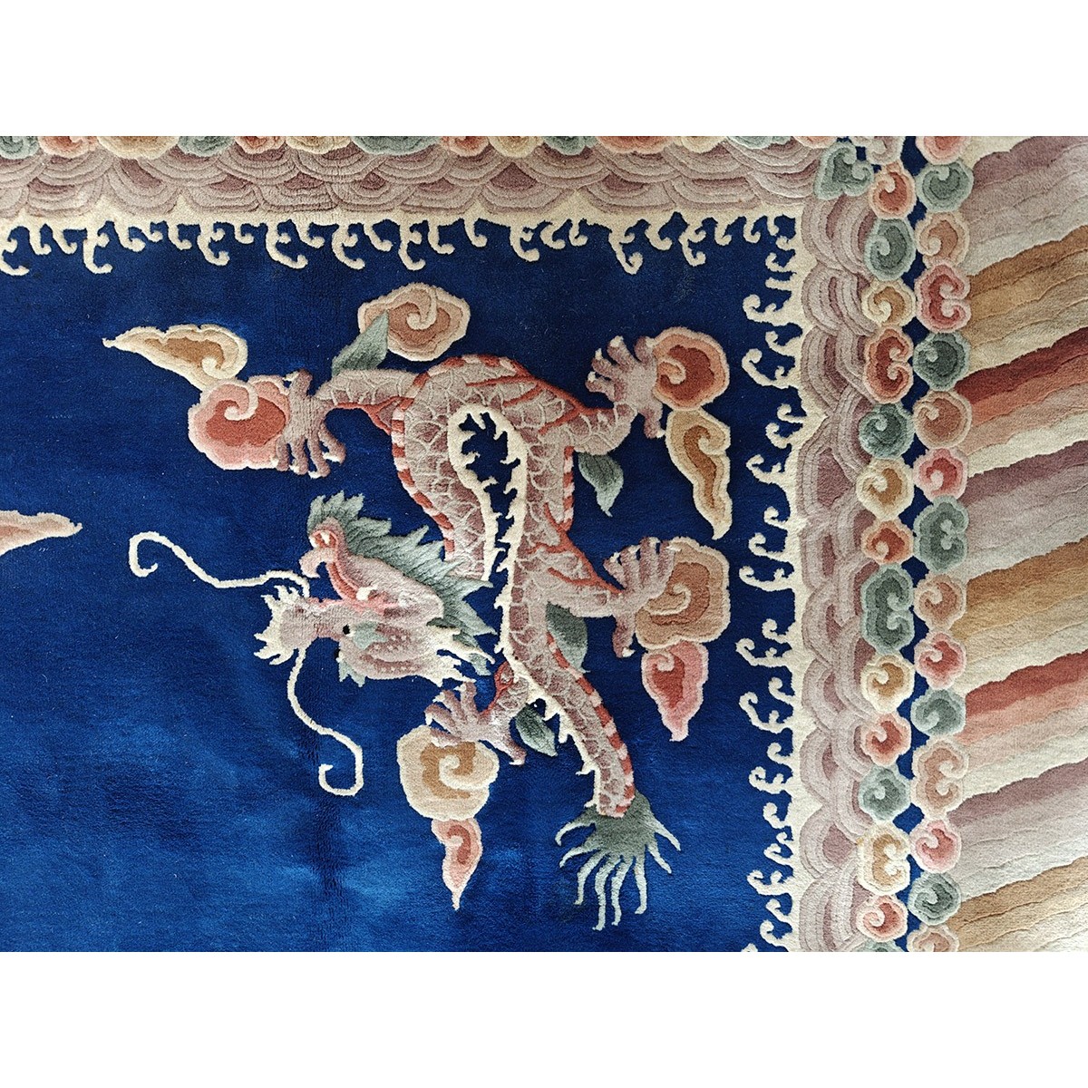 Vintage 1980s Chinese Art Deco Dragon Carpet