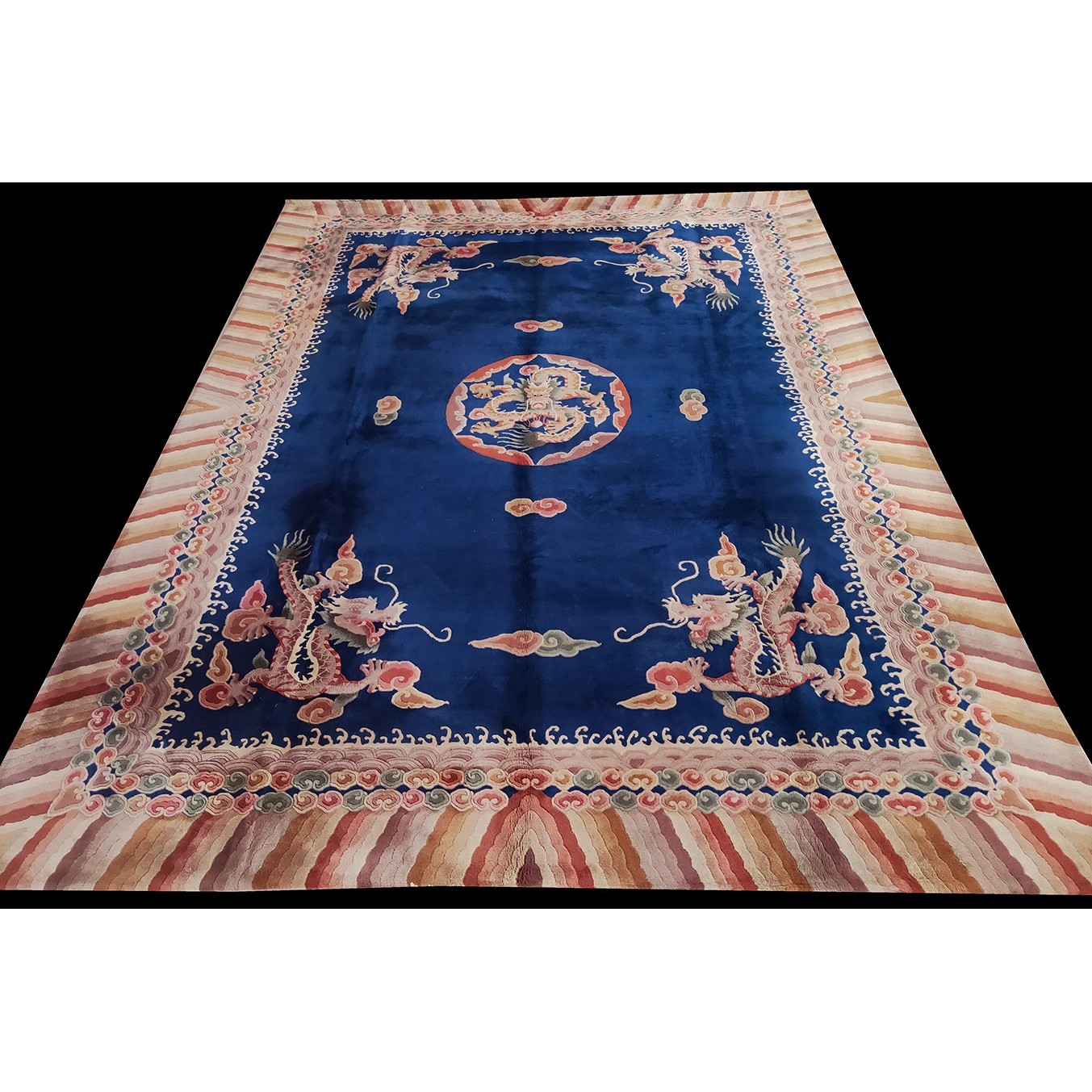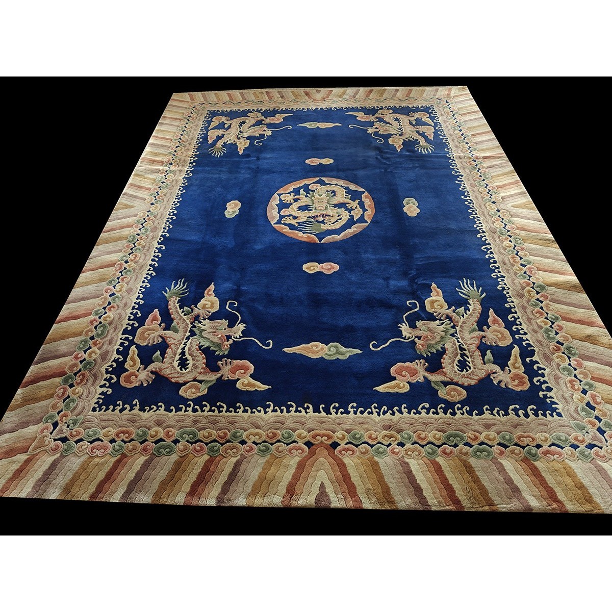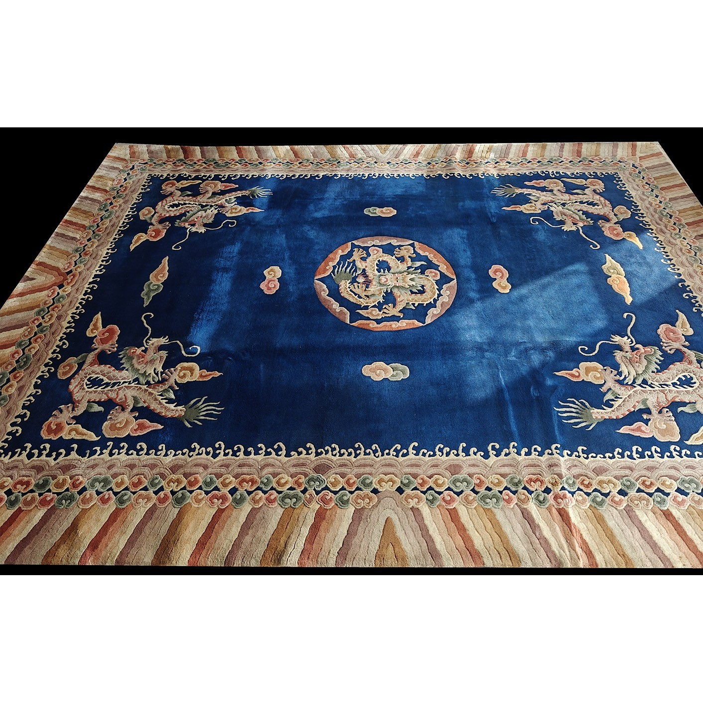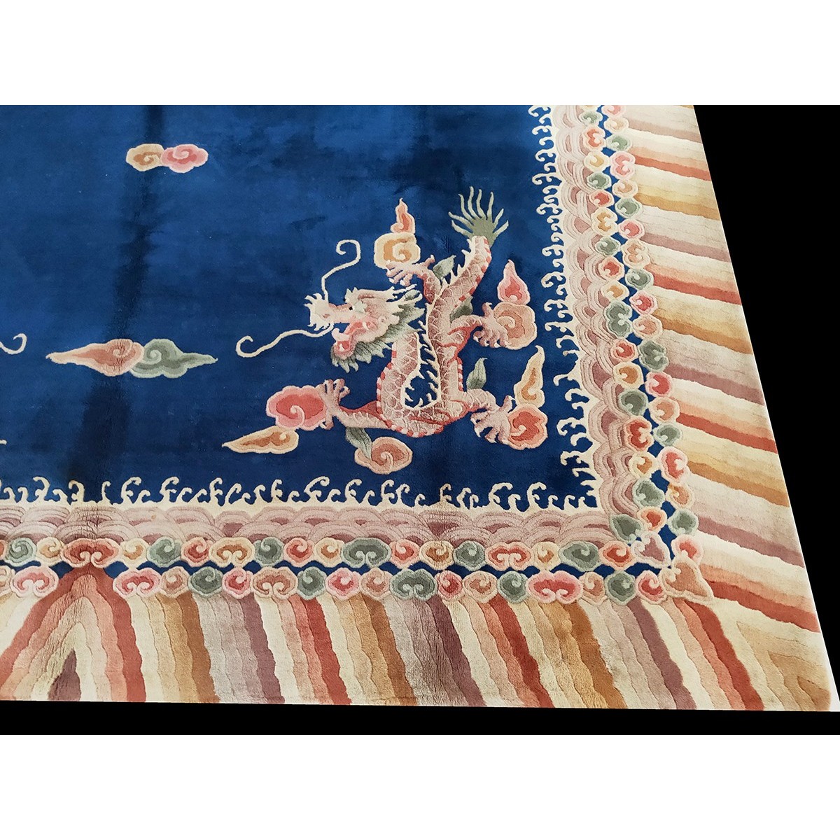 Vintage 1980s Chinese Art Deco Dragon Carpet