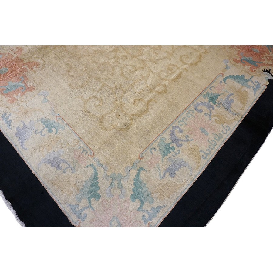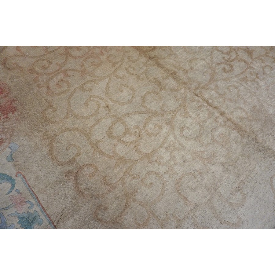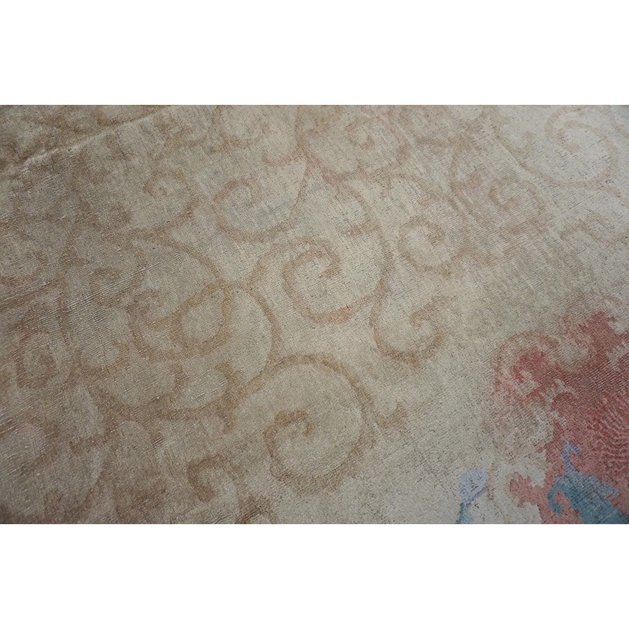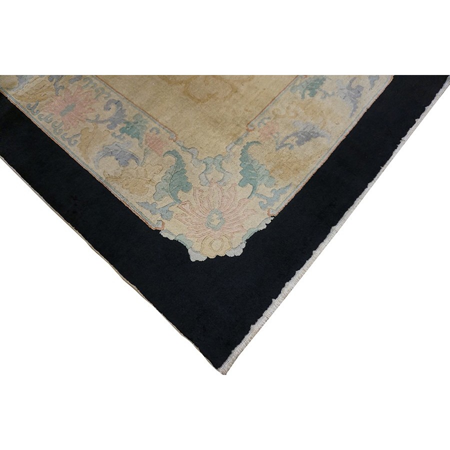 DescriptionChineseCarpets made in China proper. See entries Ningshia, Peking, Art Deco. Chinese - Art DecoAs the name implies, pieces woven between the wars for the Western market by mostly American owned firms especially Nichols and Fette, in thick heavy weaves using strong colors, asymmetric patterns and downplaying the Chinese-ness of the carpet. Nichols rugs are more strong toned than the pastel Fette. Most were woven in the coastal port city of Tientsin. Other lesser known workshops were also active. Some pieces are ultra-geometric and haute-Deco moderne in character: these are very rare. More frequent are pieces with bits of Chinese ornament: vases or other precious objects, paeonies, vines, fences, etc. Most common is the 9 x 12 size, in colors never found in mainstream Chinese rugs: backgrounds in black, mauve, purple, hot pink, orange, olive, employing the best synthetic chrome dyes of the period. Prices are still reasonable and carpets in top condition are available. | |